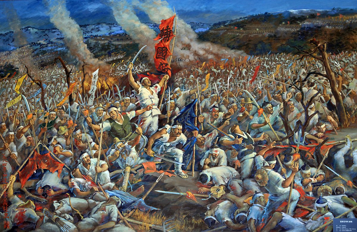 - 조선 고종 31년(1894)에 전라도 고부의 동학 접주(接主) 전봉준 등을 지도자로 동학도와 농민들이 합세하여 일으킨 농민 운동으로 고부 군수 조병갑의 횡포와 착취에 대한 항거에서 발단하여 한때는 관군을 무찌르고 삼남 지방을 휩쓸었으나, 결국 중국 청나라와 일본의 개입으로 실패로 끝났다. 후에 항일 의병 투쟁과 3ㆍ1 운동으로 계승되었다.