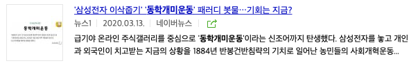 동아일보도 동학개미운동이라는 단어가 기사에 들어가 있습니다.