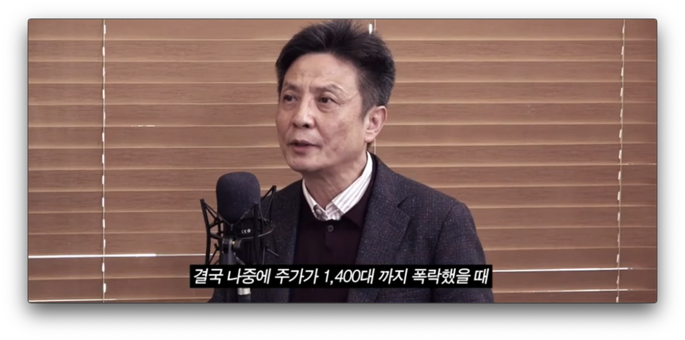 결국 나중에 주가가 1,400대 까지 폭락했을 때