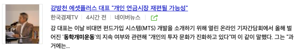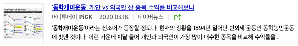 마지막으로 동학개미운동이라는 기사제목을 사용한 언론사를 찾아봤습니다.