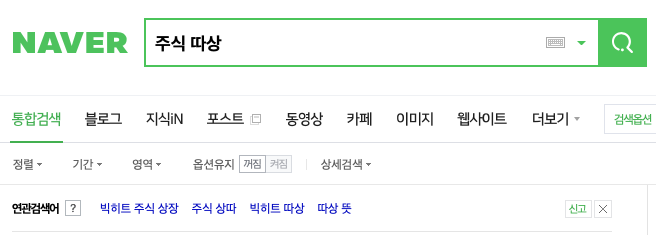 먼저 주식 따상으로 검색을 해보았더니 관련 검색어가 따상 뜻 , 주식 상장이란, 신규상장 주식, 주식 상한가란, 미국주식 상한가, 8월 상장 주식, 주식 상한가 종목 이렇게 나오고 다른사이트에서 검색을 해보니 연관검색어가 빅히트 주식 상장, 주식 상따, 빅히트 따상, 따상 듯 이렇게 나옵니다. 그래서 빅히트 주식 뉴스를 찾아봤습니다.