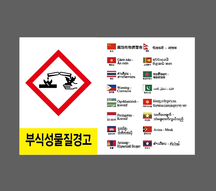 부식성물질경고 중국 베트남 태국 필리핀 우즈베키스탄 인도네시아 캄보디아 몽골 네팔 스리랑