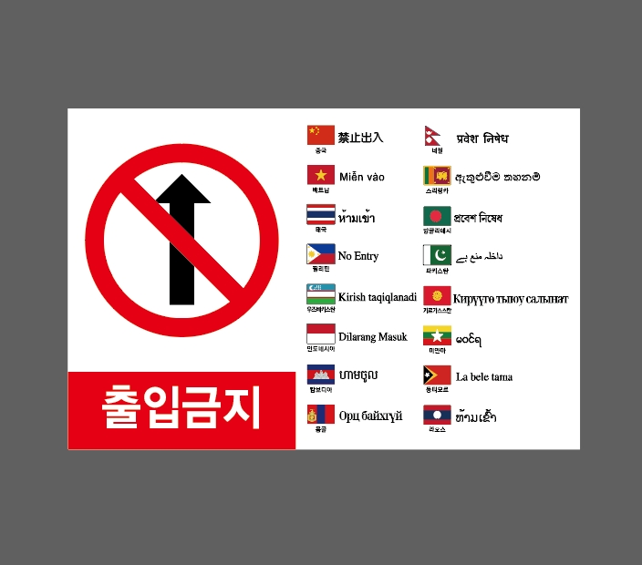 출입금지 중국 베트남 태국 필리핀 우즈베키스탄 인도네시아 캄보디아 몽골 네팔 스리랑카 방글라데시 파키스탄 키르기스스탄 미얀마 동티모르 라오스 스티커 자석 표지판 산업안전관리 보행금지 차량통행금지 탑승금지 금연 화기금지 물체이동금지 사용금지 인화성물질경고 폭발성물질경고 급성독성물질경고 부식성물질경고 방사성물질경고 고압전기경고 매달린물체경고 고온경고 몸균형상실경고 저온경고 위험장소경고 응급구호표지 세안장치 비상용기구 비상구 안전모착용 방진마스크착용 귀마개착용 보안면착용보안경착용 안전복착용 안전장갑착용 안전화착용