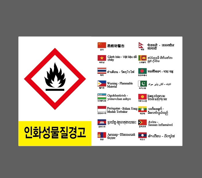 인화성물질경고 중국 베트남 태국 필리핀 우즈베키스탄 인도네시아 캄보디아 몽골 네팔 스리랑