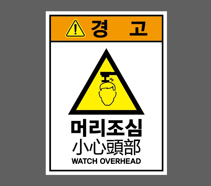 머리조심 WATCH OVERHEAD 중국어 경고 2027 스티커 표지판 자석 안전관리 : 베사메무쵸