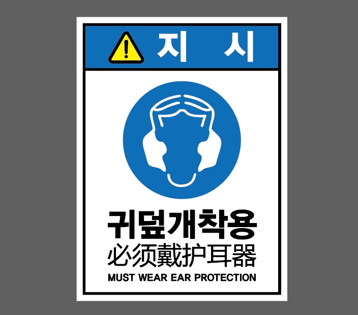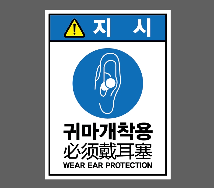 귀덮개착용 MUST WEAR EAR PROTECTION 중국어 지시 2027 스티커 표지판 자석 안전관리 : 베사메무쵸