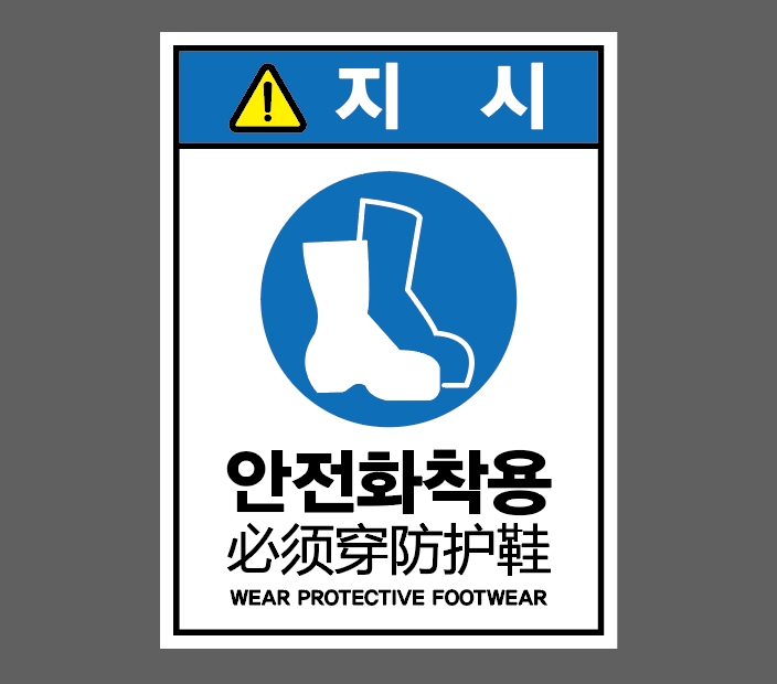 안전화착용 WEAR PROTECTIVE FOOTWEAR 중국어 지시 2027 스티커 표지판 자석 안전관리 : 베사메무쵸
