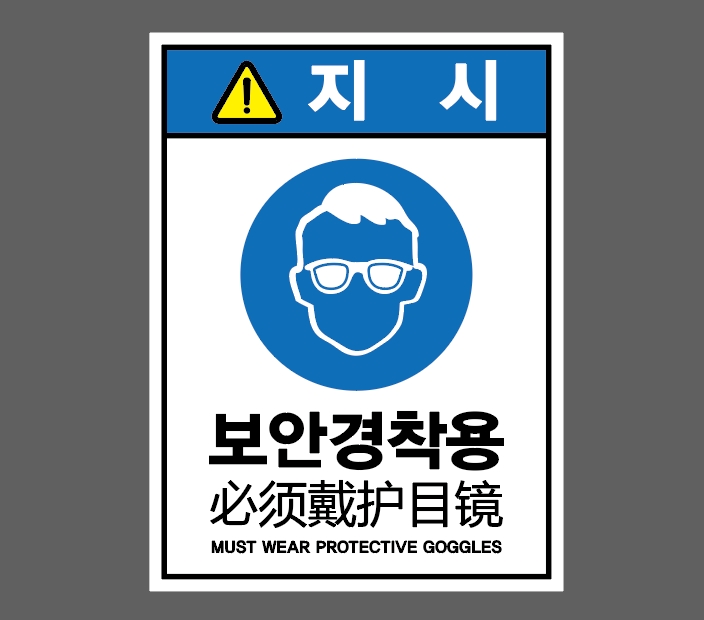 보안경착용 MUST WEAR PROTECTIVE GOGGLES 중국어 지시 2027 스티커 표지판 자석 안전관리 : 베사메무쵸