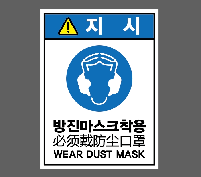 방진마스크착용 WEAR DUST MASK 중국어 지시 2027 스티커 표지판 자석 안전관리 : 베사메무쵸
