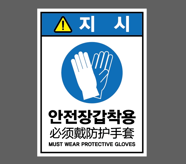 안전장갑착용 MUST WEAR PROTECTIVE GLOVES 중국어 지시 2027 스티커 표지판 자석 안전관리 : 베사메무쵸