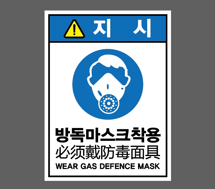 방독마스크착용 WEAR GAS DEFENCE MASK 중국어 지시 2027 스티커 표지판 자석 안전관리 : 베사메무쵸