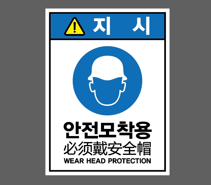안전모착용 WEAR HEAD PROTECTION 중국어 지시 2027 스티커 표지판 자석 안전관리 : 베사메무쵸