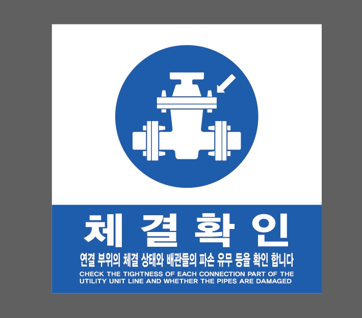 체결확인 연결부위의 체결 상태와 배관들의 파손 유무 등을 확인 합니다 지시 1015 표지판 자석