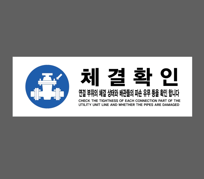체결확인 연결부위의 체결 상태와 배관들의 파손 유무 등을 확인 합니다 지시 2027 스티커 표지판