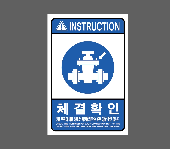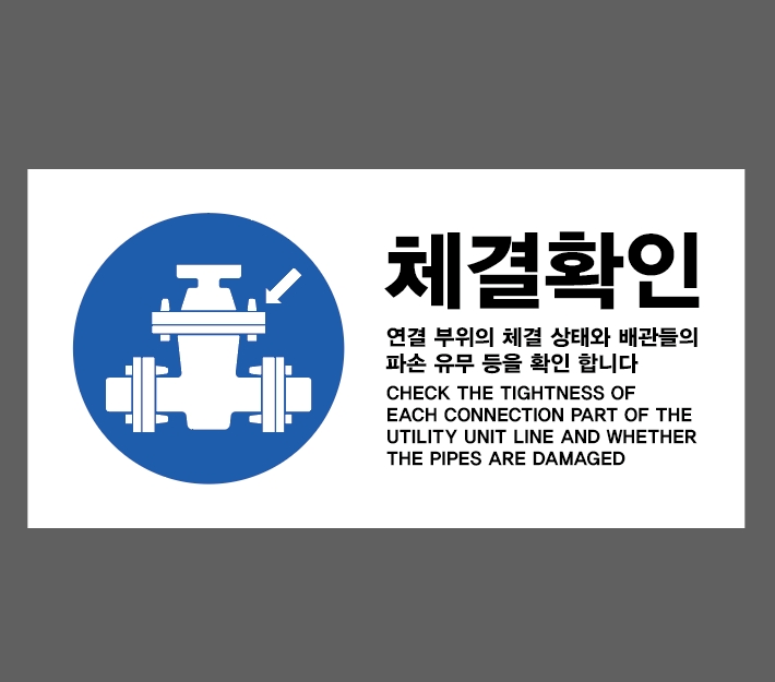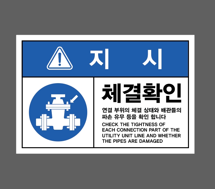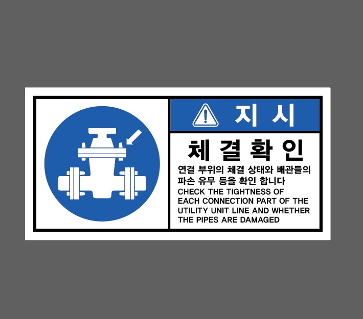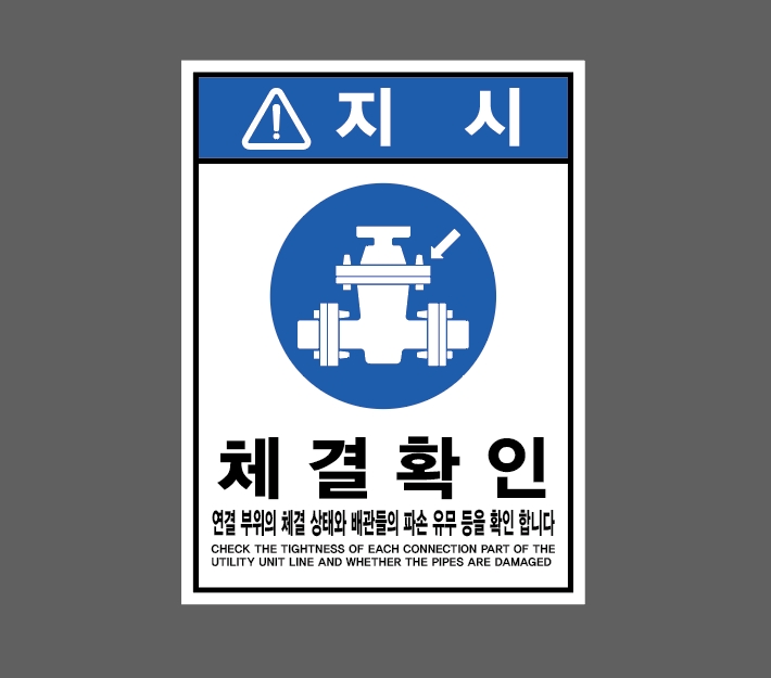 체결확인 연결부위의 체결 상태와 배관들의 파손 유무 등을 확인 합니다 지시 2027 스티커 표지판