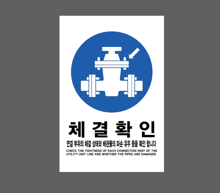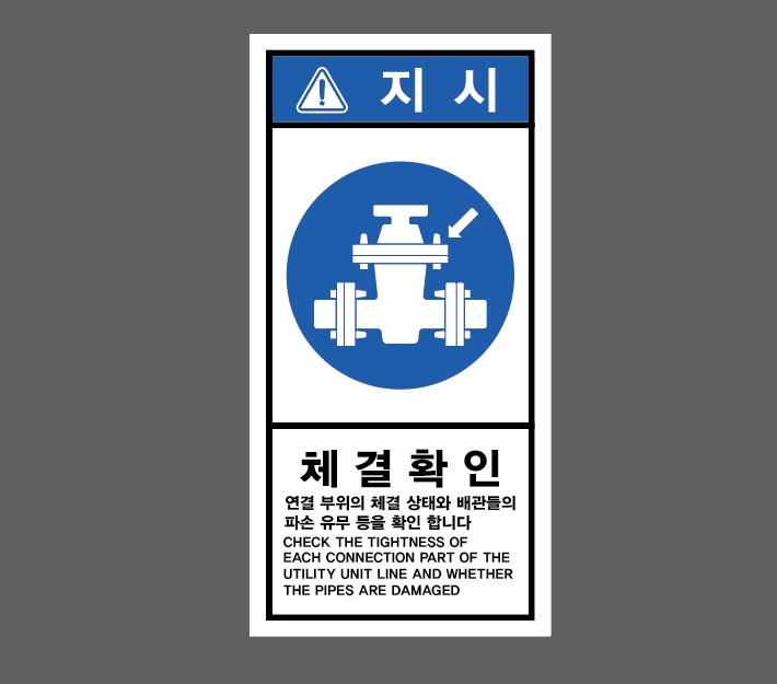 체결확인 연결부위의 체결 상태와 배관들의 파손 유무 등을 확인 합니다 지시 1015 표지판 자석