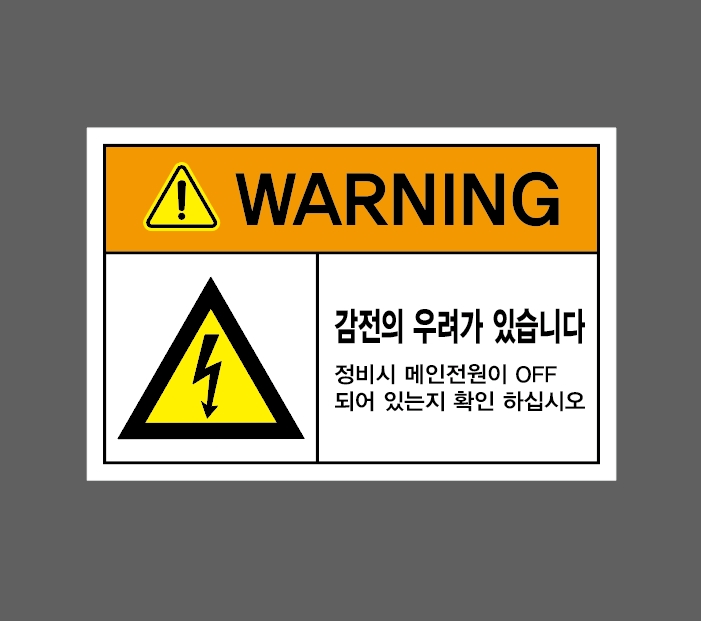 감전의 우려가 있습니다 정비시 메인전원이 OFF 되어 있는지 확인 하십시오 경고 945 스티커 표지