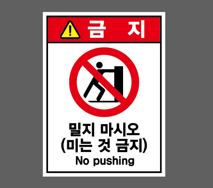 밀지 마시오 미는 것 금지 NO PUSHING 금지 2027 스티커 표지판 자석 산업안전관리 : 베사메무쵸