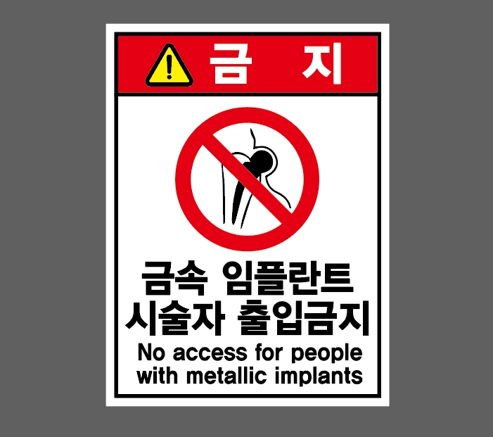 금속 임플란트 시술자 출입금지 NO ACCESS FOR PEOPLE WITH METALLIC IMPLANTS 금지 2027 스티커 표지판 자석