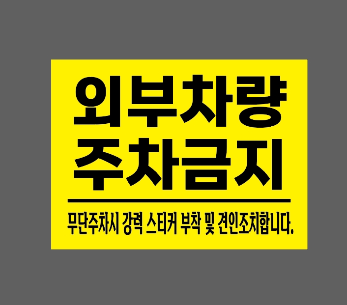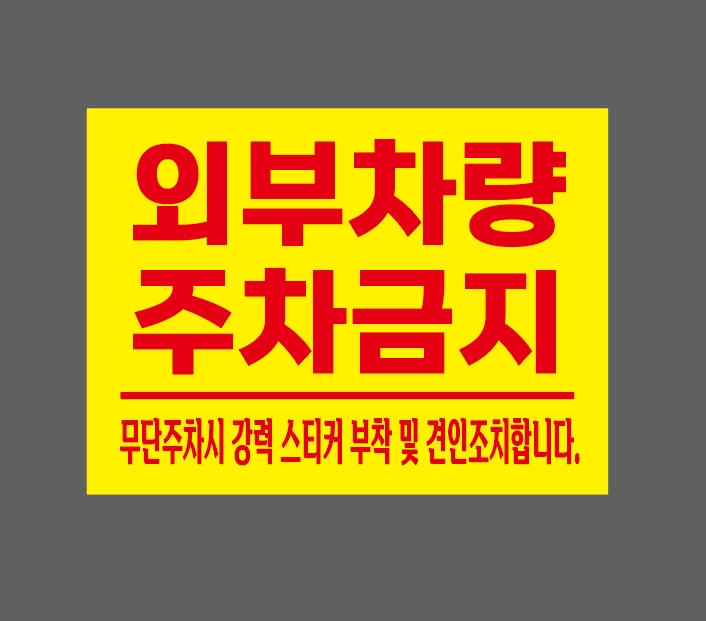 외부차량 주차금지 무단주차시 강력 스티커 부착 및 견인조치합니다 노란색 3020 스티커 자석 표