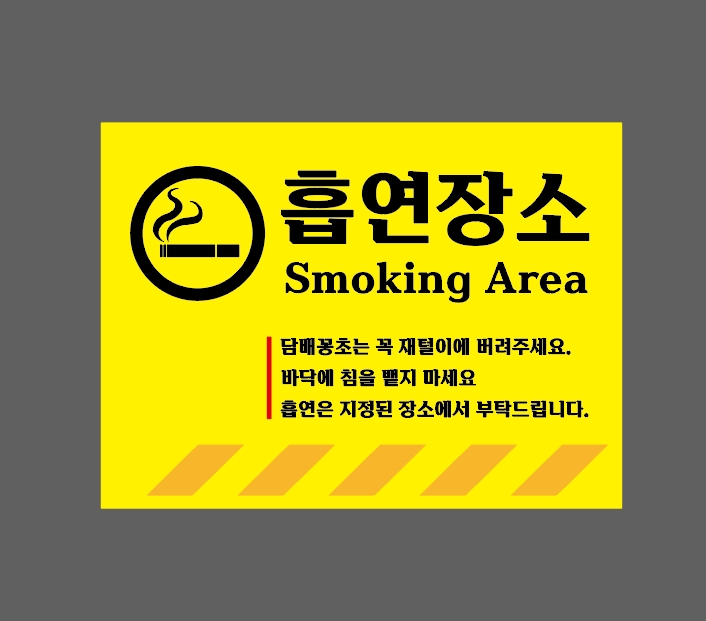 흡연구역 SMOKING AREA 담배꽃오는 꼭 재털이에 버려주세요 바닥에 침을 뱉지 마세요 지정된 장소