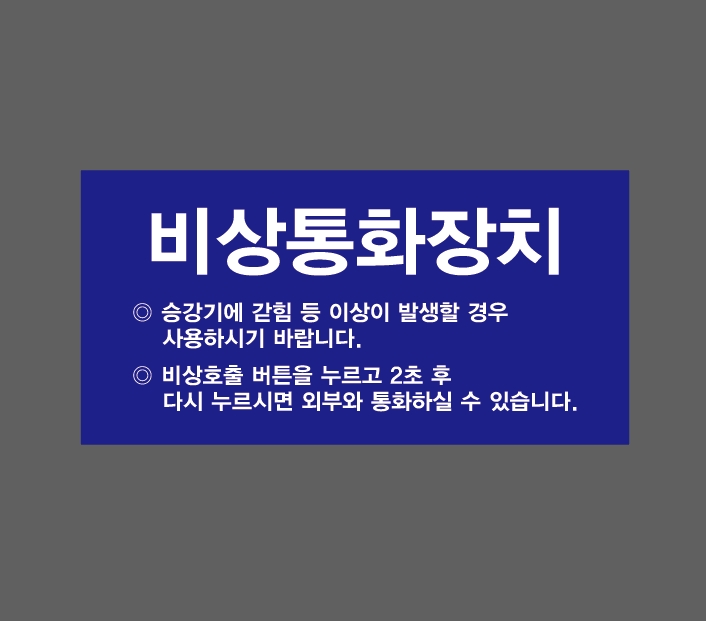 방화셔터 내려오는 곳 location where fire shutter come down 비상통화장치 승강기에 갇힘 등 이상이 발생할 경우 사용하시기 바랍니다 비상호출 버튼을 누르고 2초 후 다시 누르시면 외부와 통화하실 수 있습니다