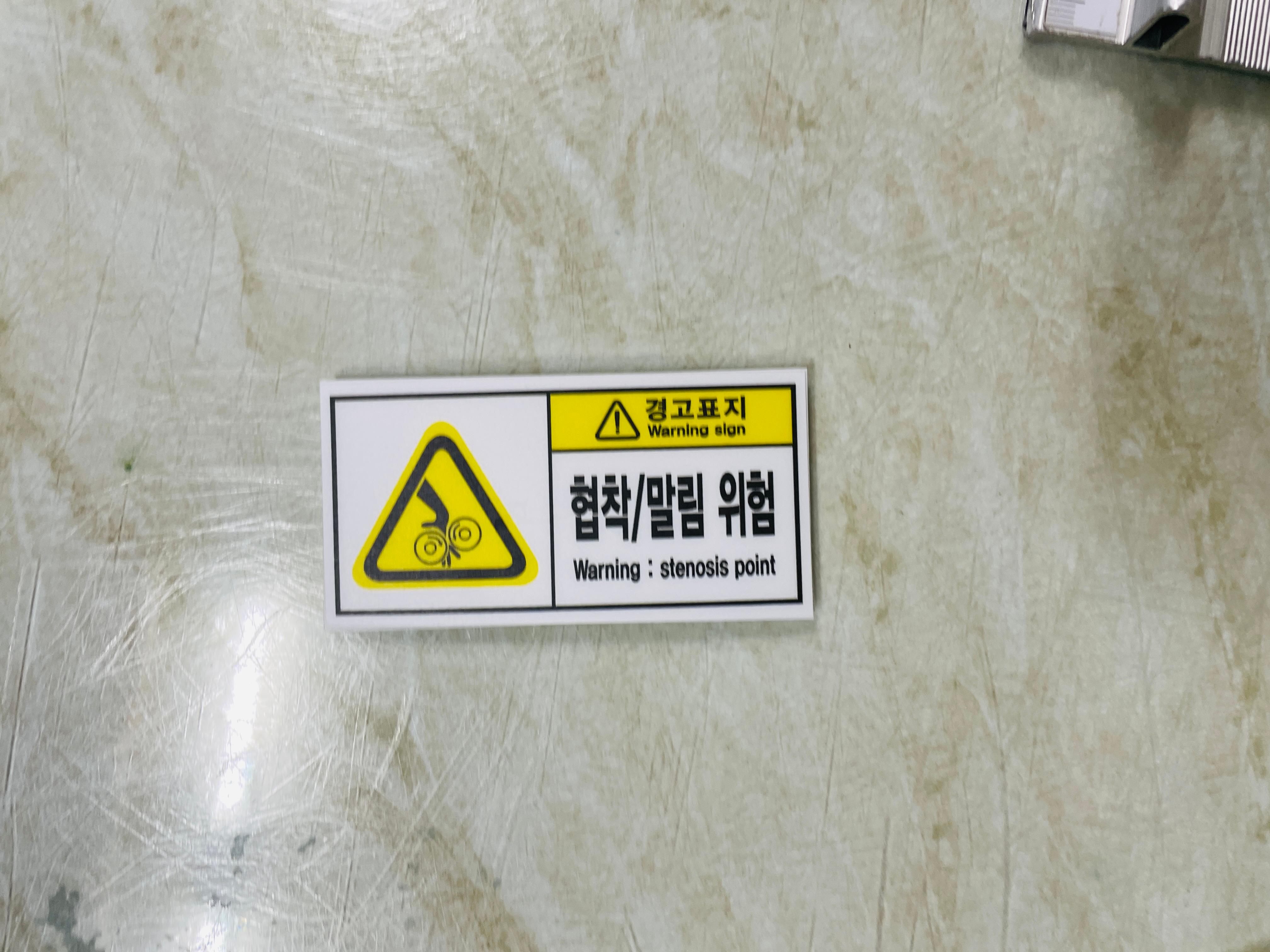 협착말림위험 WARNING STENOSIS POINT 산업스티커 표지판 자석 안전 표시 산업 현장에서 기계류, 회전체, 롤러, 벨트 등에서 신체 일부가 끼이거나 말릴 위험이 있는 구역에 경고 스티커, 표지판, 자석판 형태로 부착하는 안전 표지