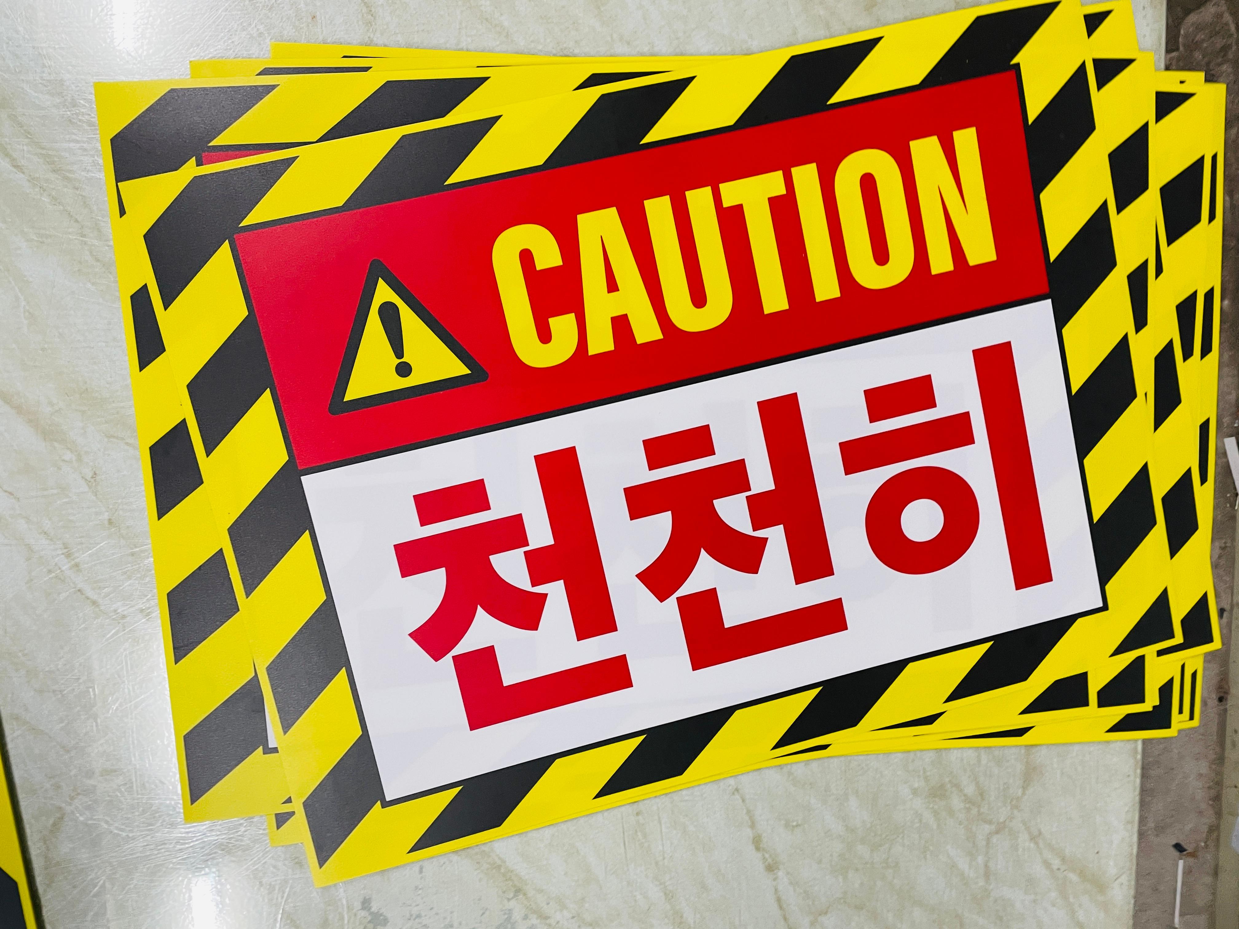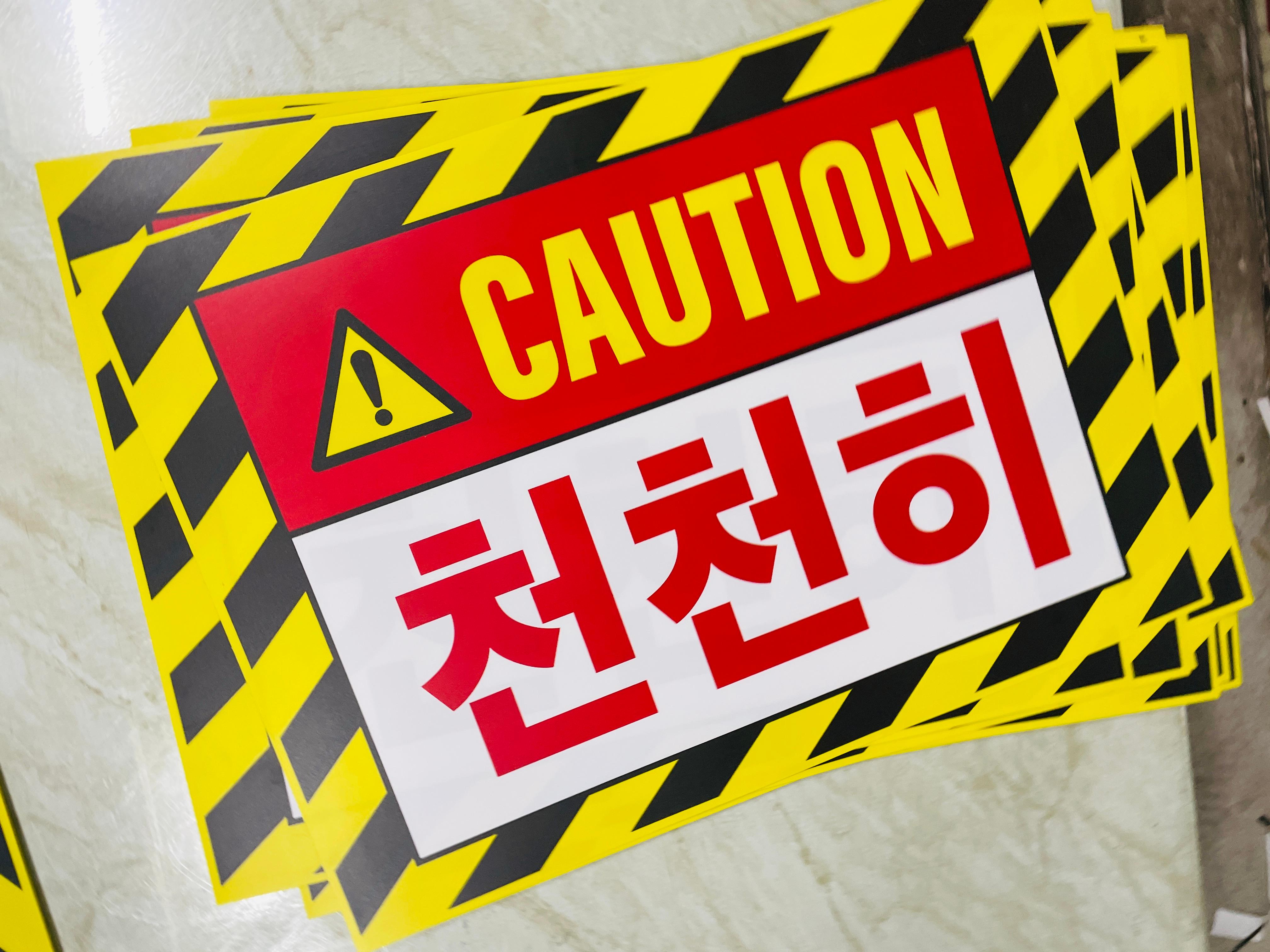 CAUTION 천천히 AL197 9522200214 시설점검 안전관리 표시 스티커 표지판 자석 13.5x10cm - 베사메무쵸