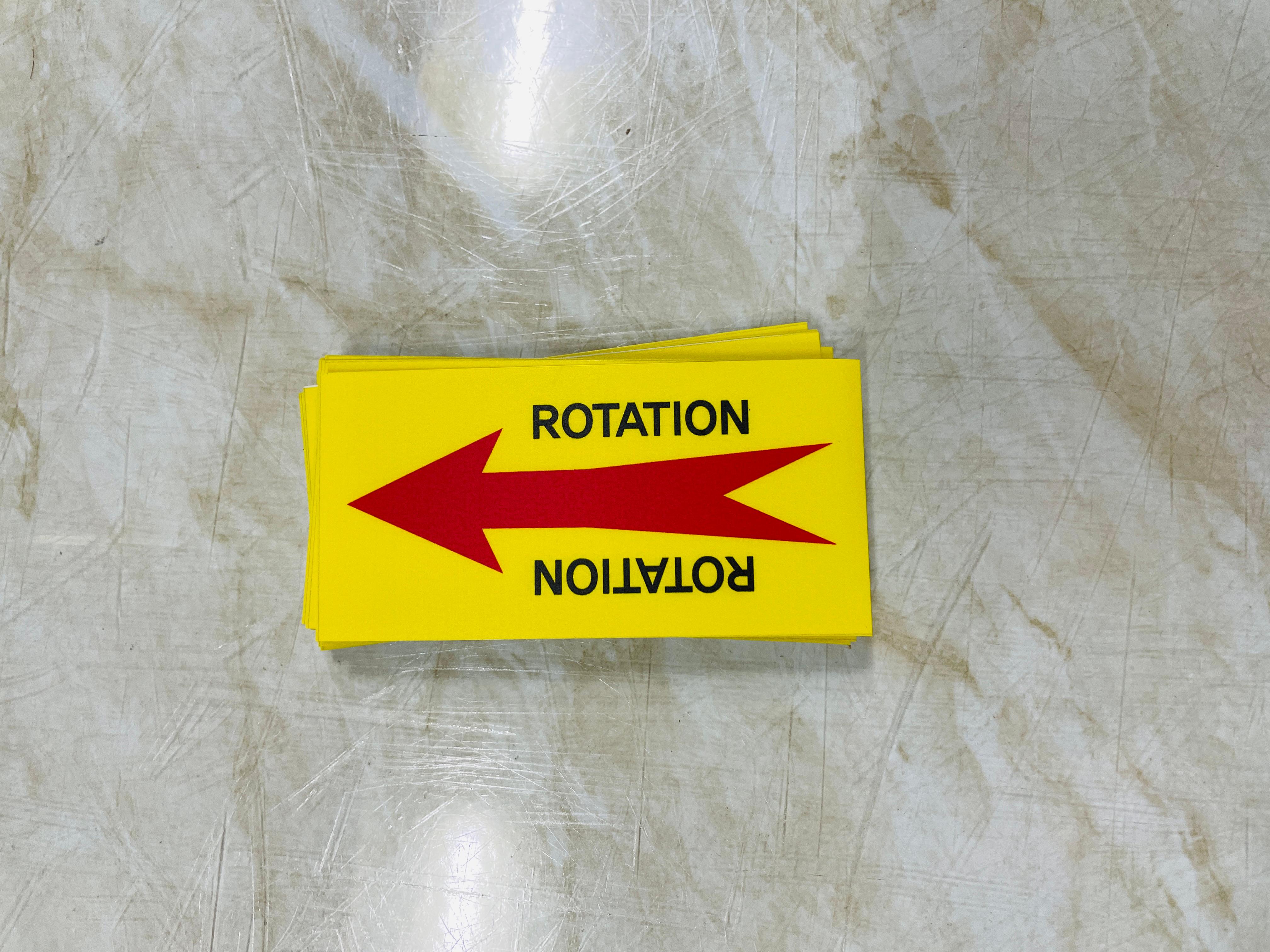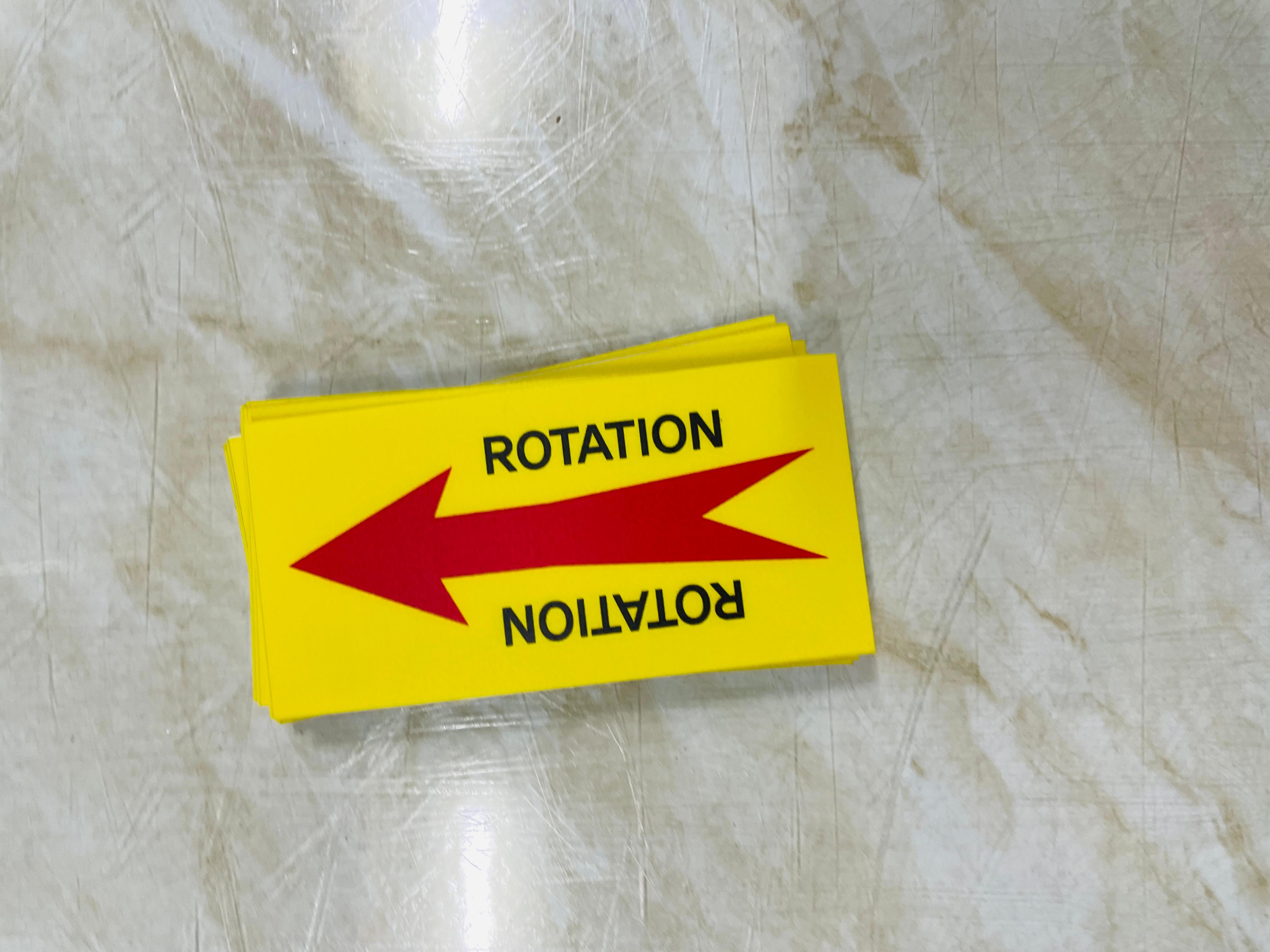 ROTATION 좌 우 노랑 안전 시설점검 관리 스티커 표지판 자석 표시 회전방향 화살표 회전하는 장비나 설비에 표지를 부착합니다.