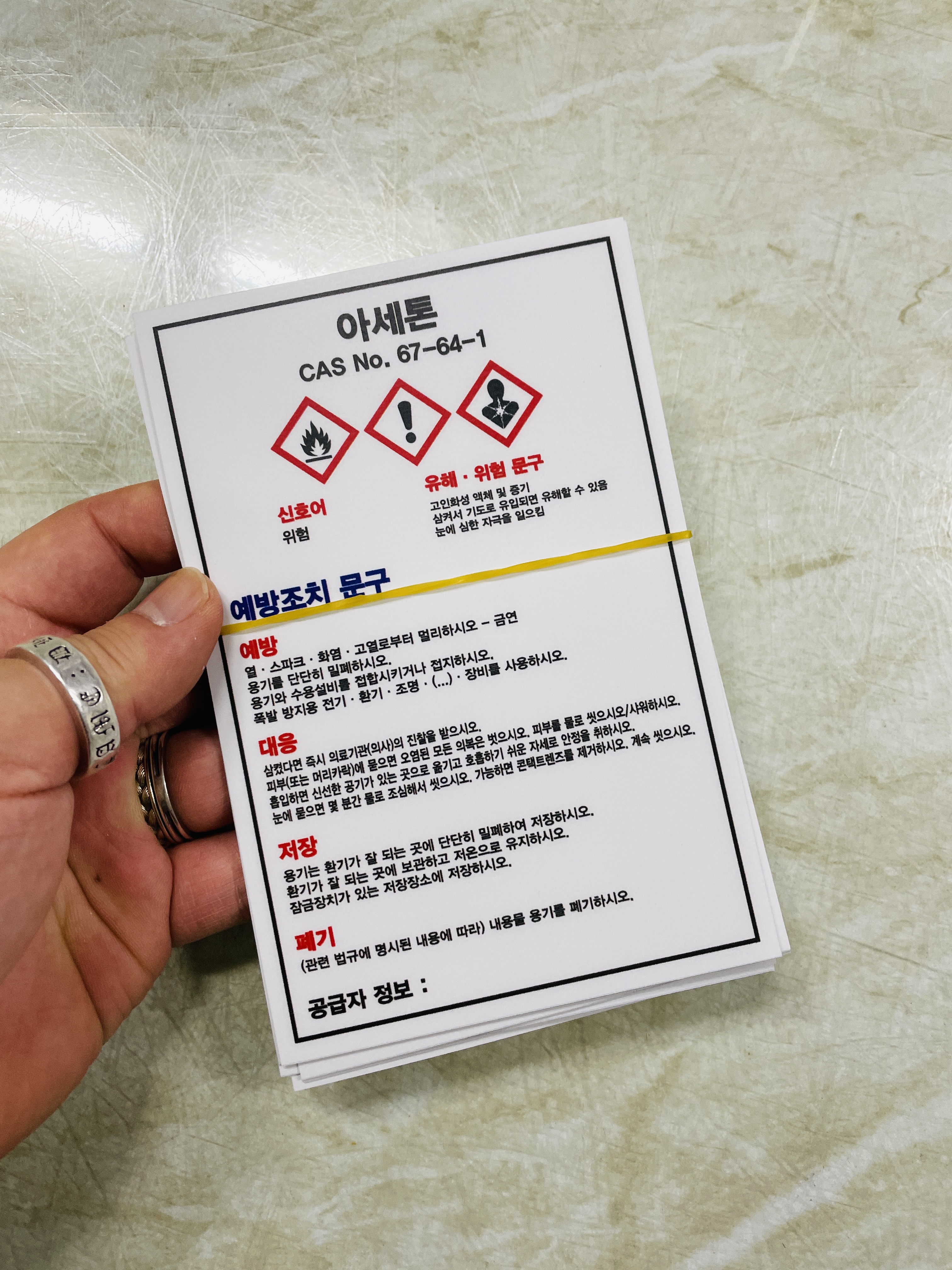 세로 MSDS 아세톤 67-64-1 소량용기 스티커 표지판 자석