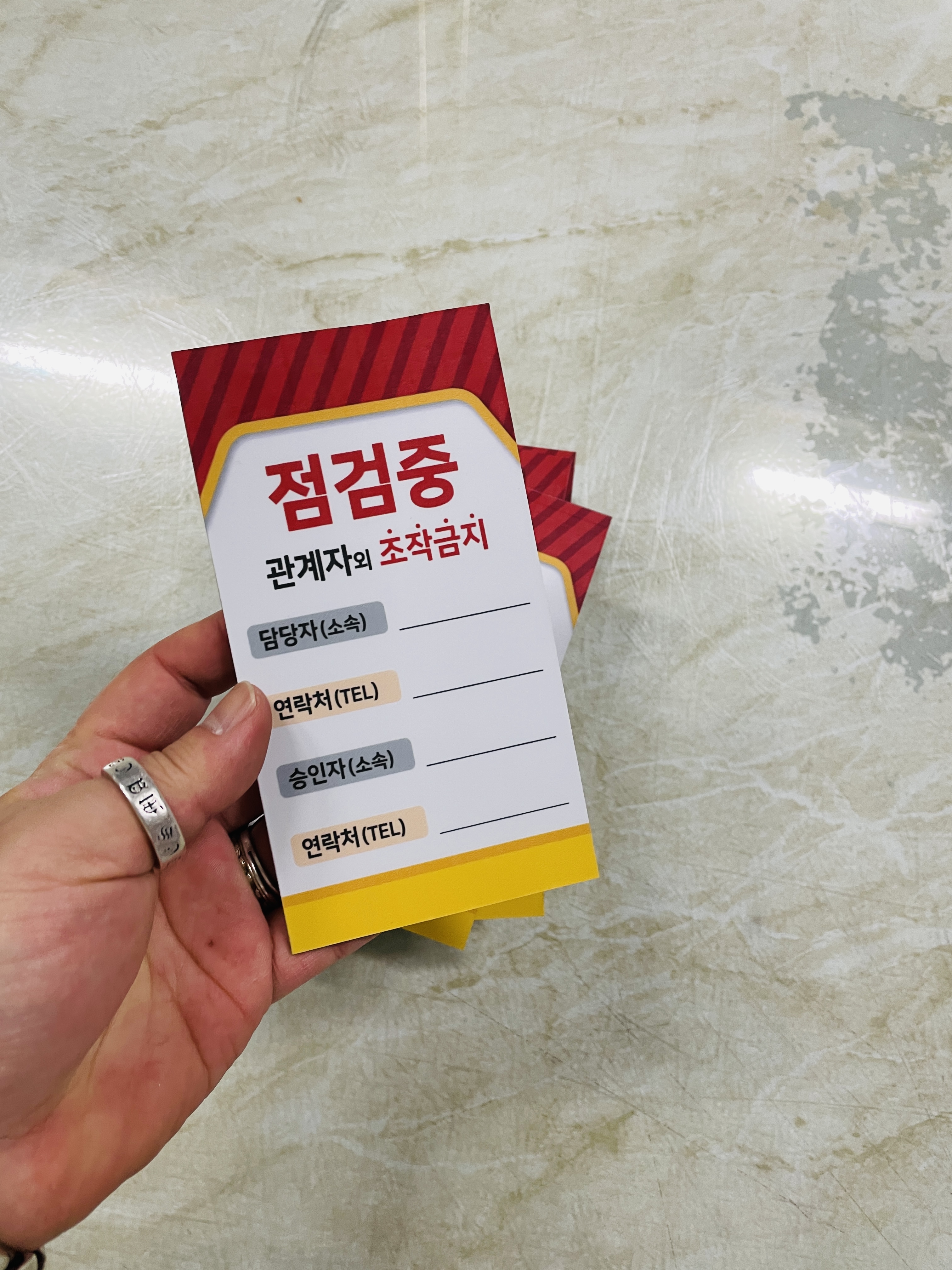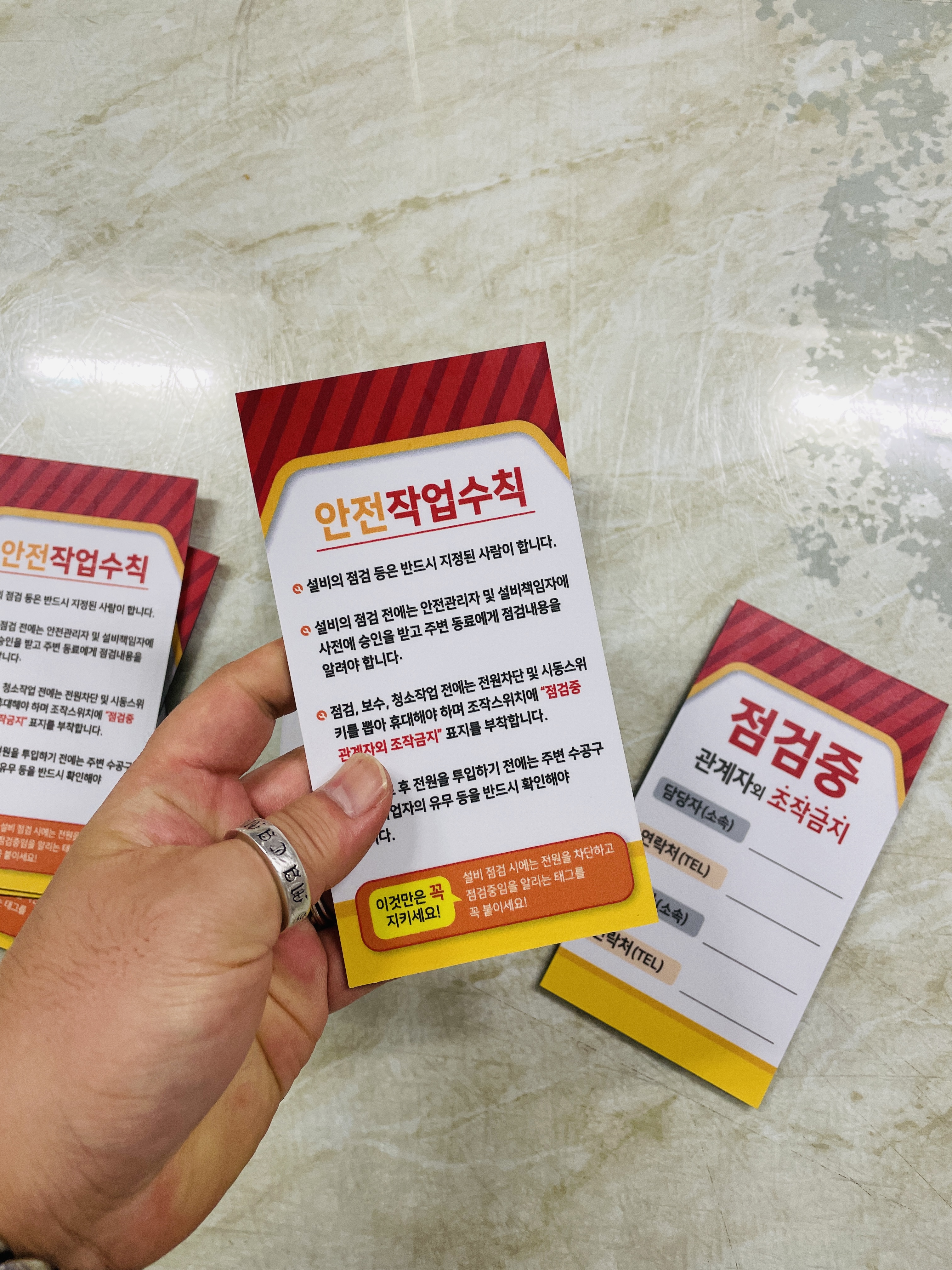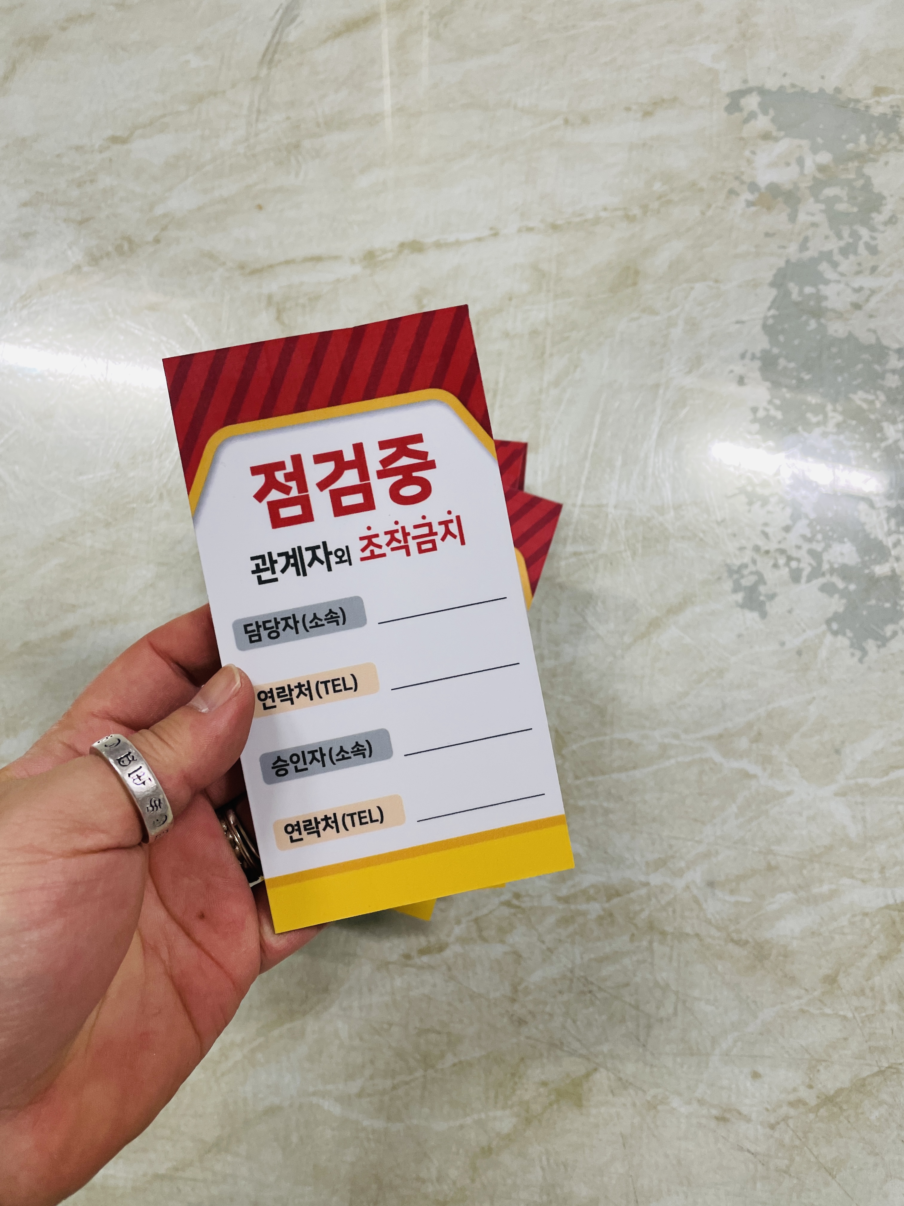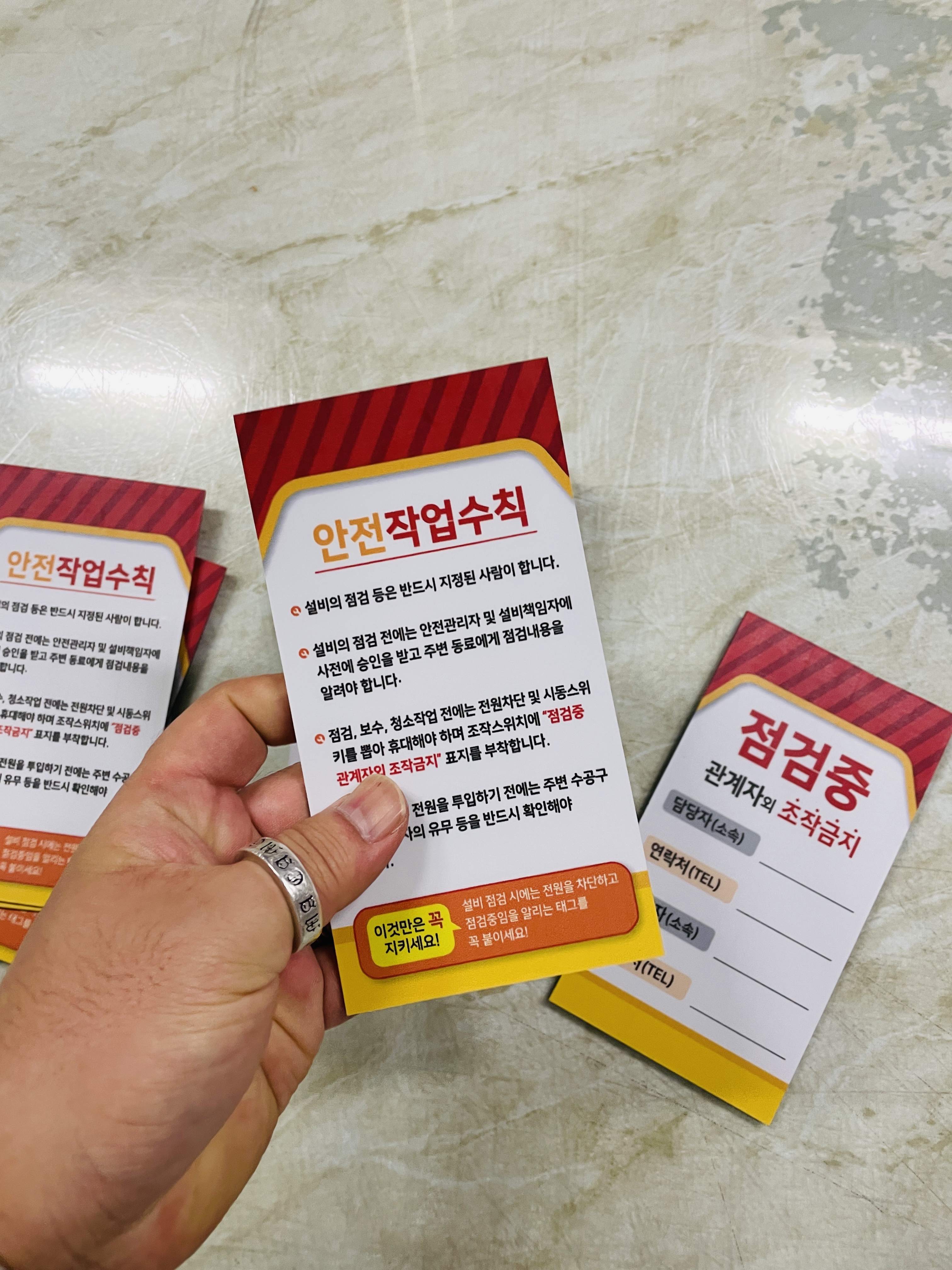 자석 점검중 조작금지 안전작업수칙 관계자 담당자 연락처 승인자 연락처 표지판 걸이형 태그 :