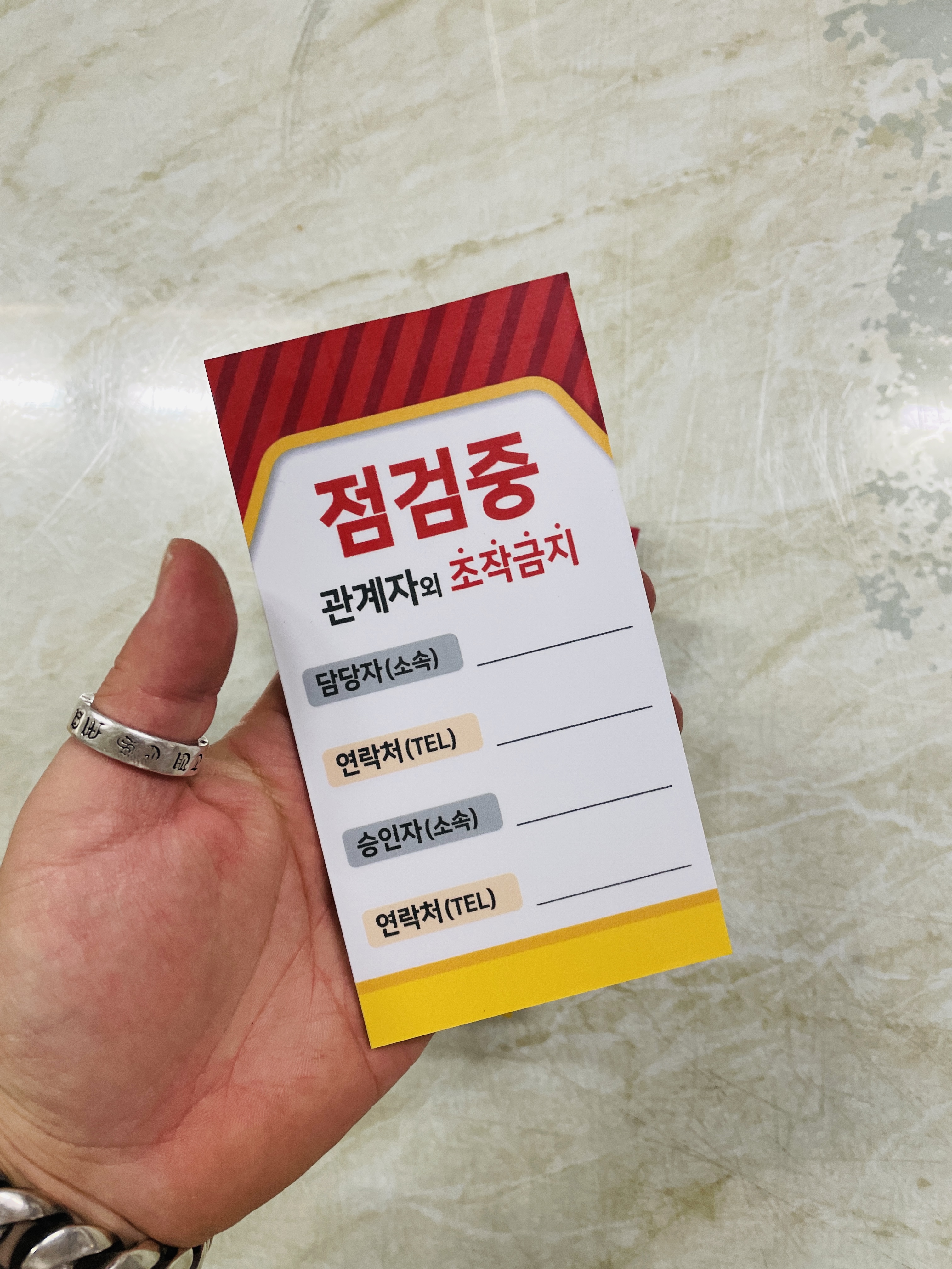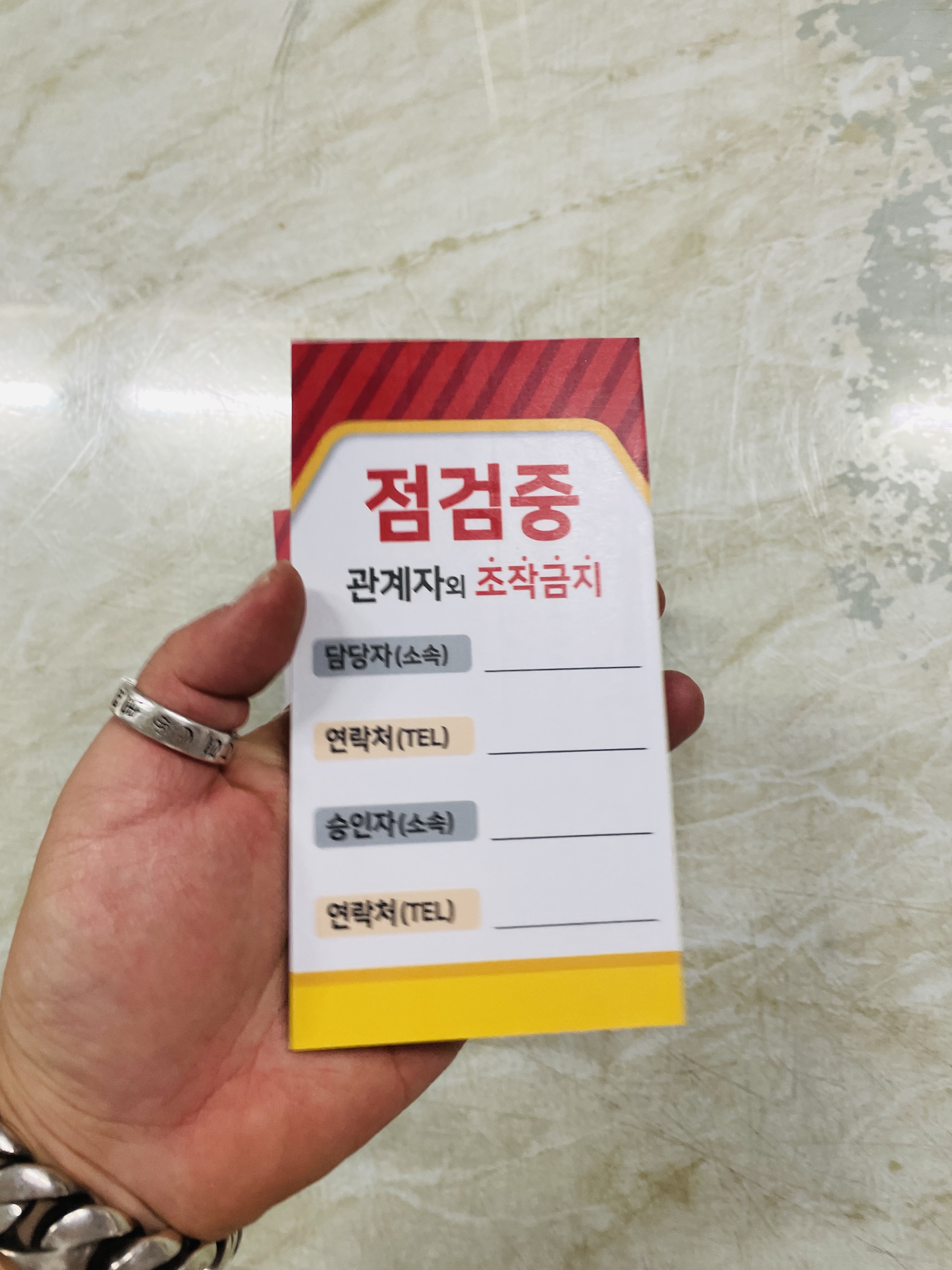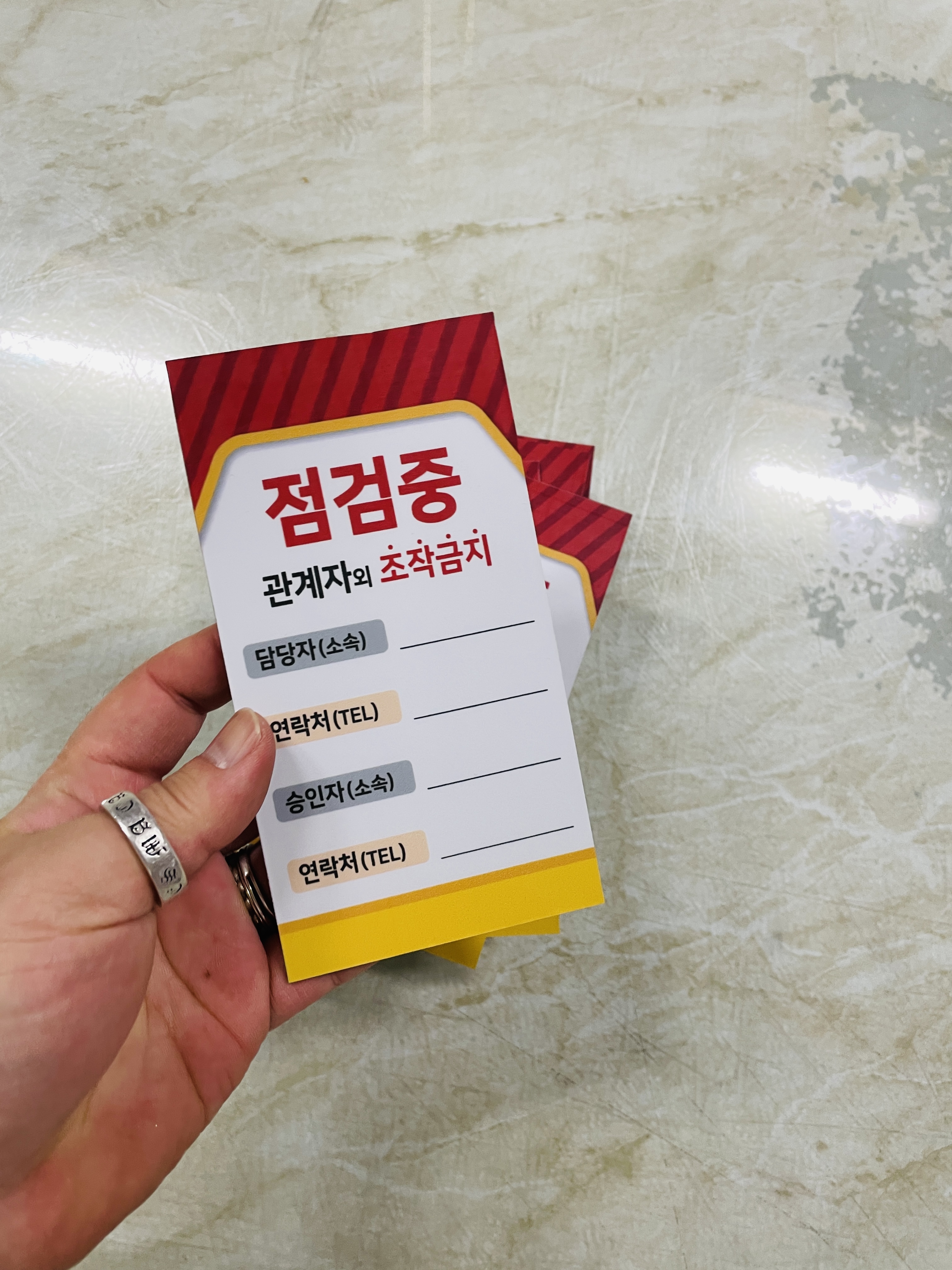 자석 점검중 조작금지 안전작업수칙 관계자 담당자 연락처 승인자 연락처 표지판 걸이형 태그 :