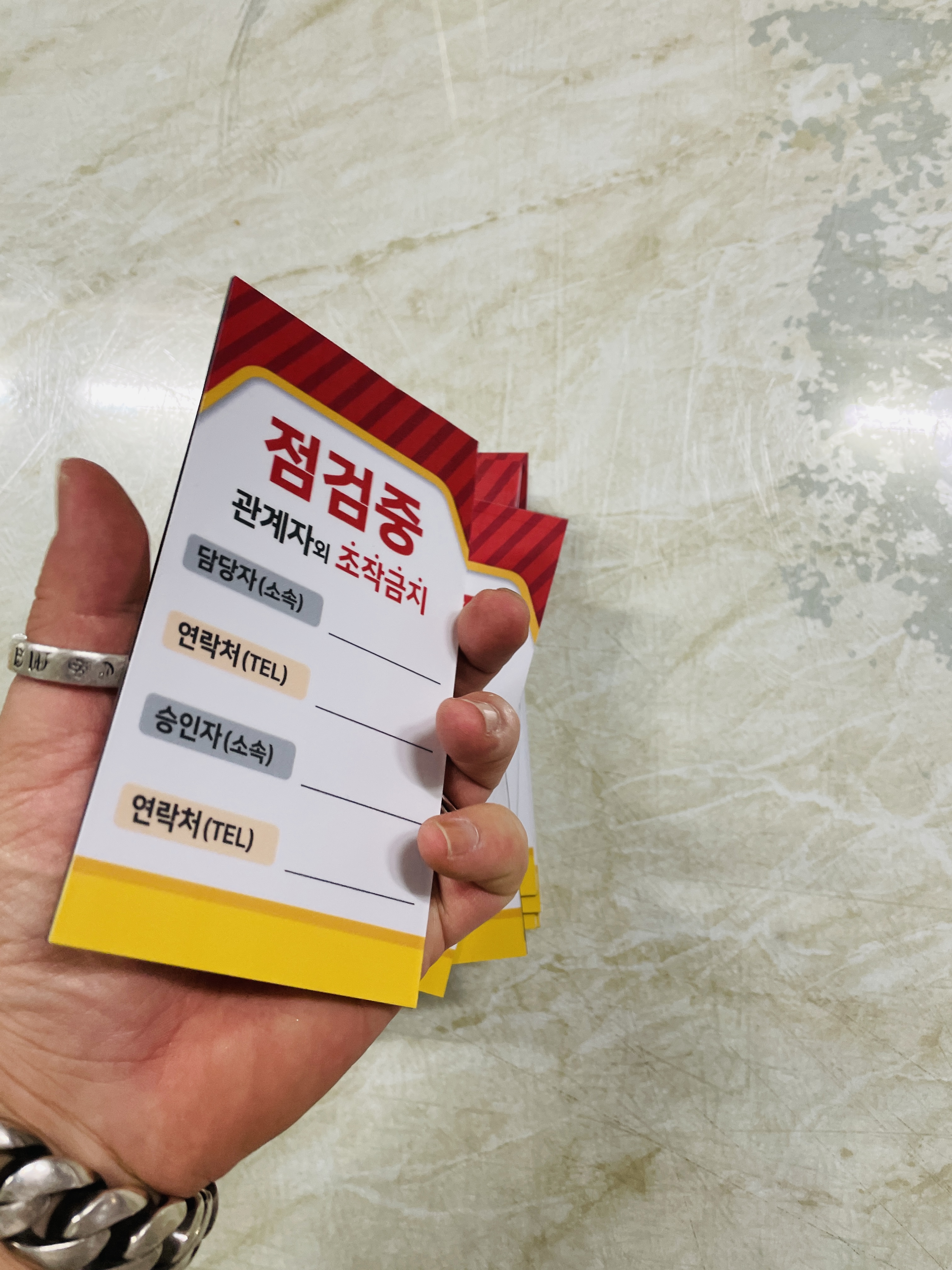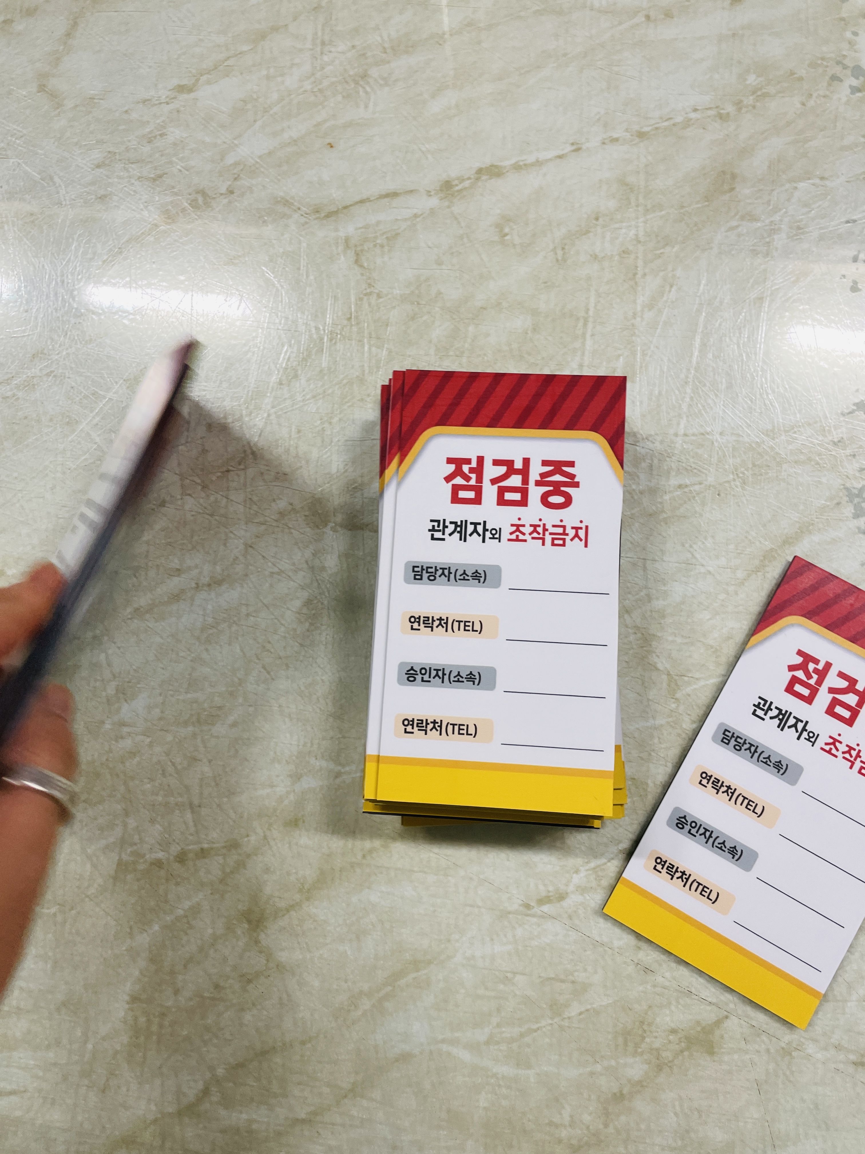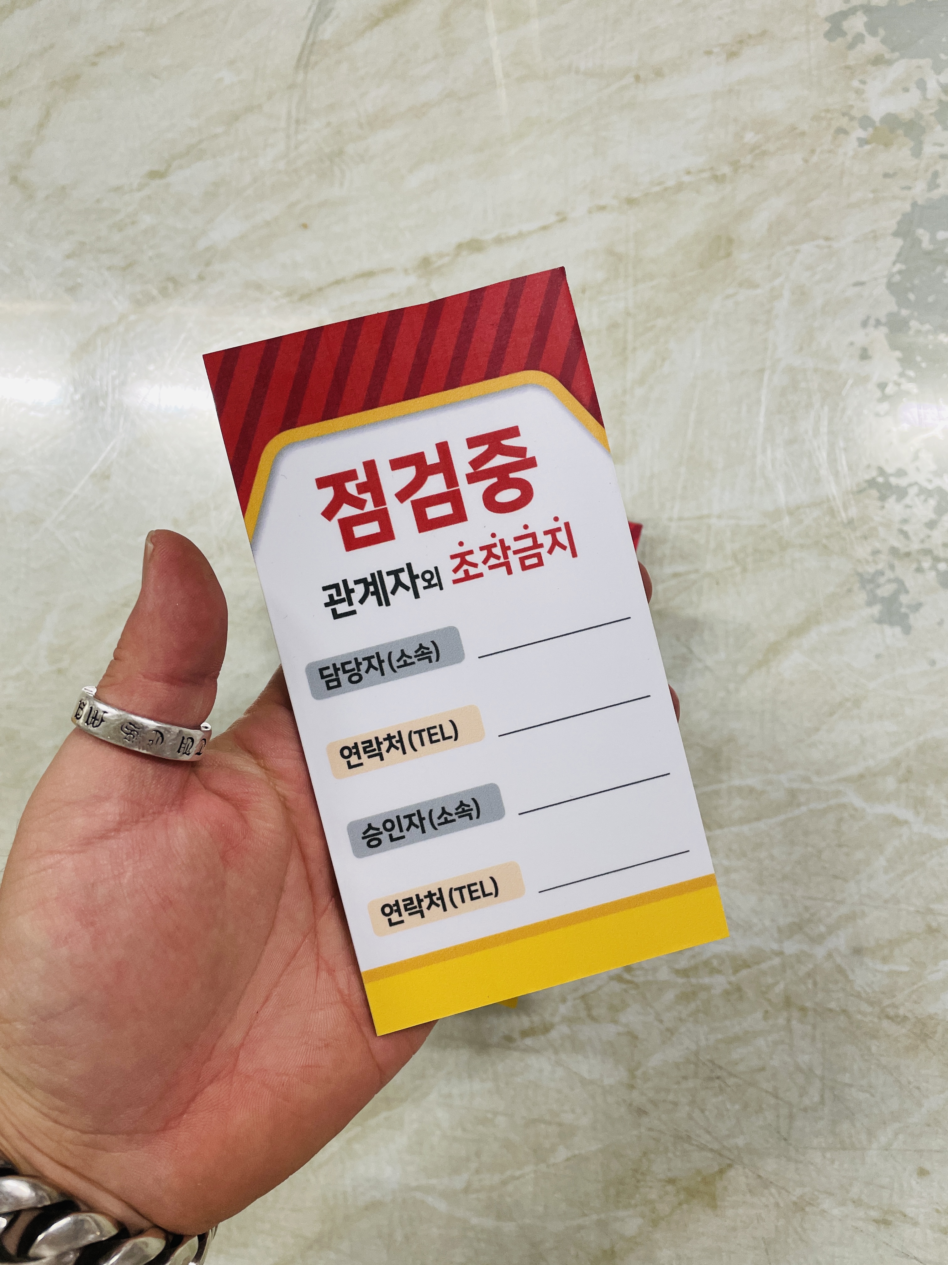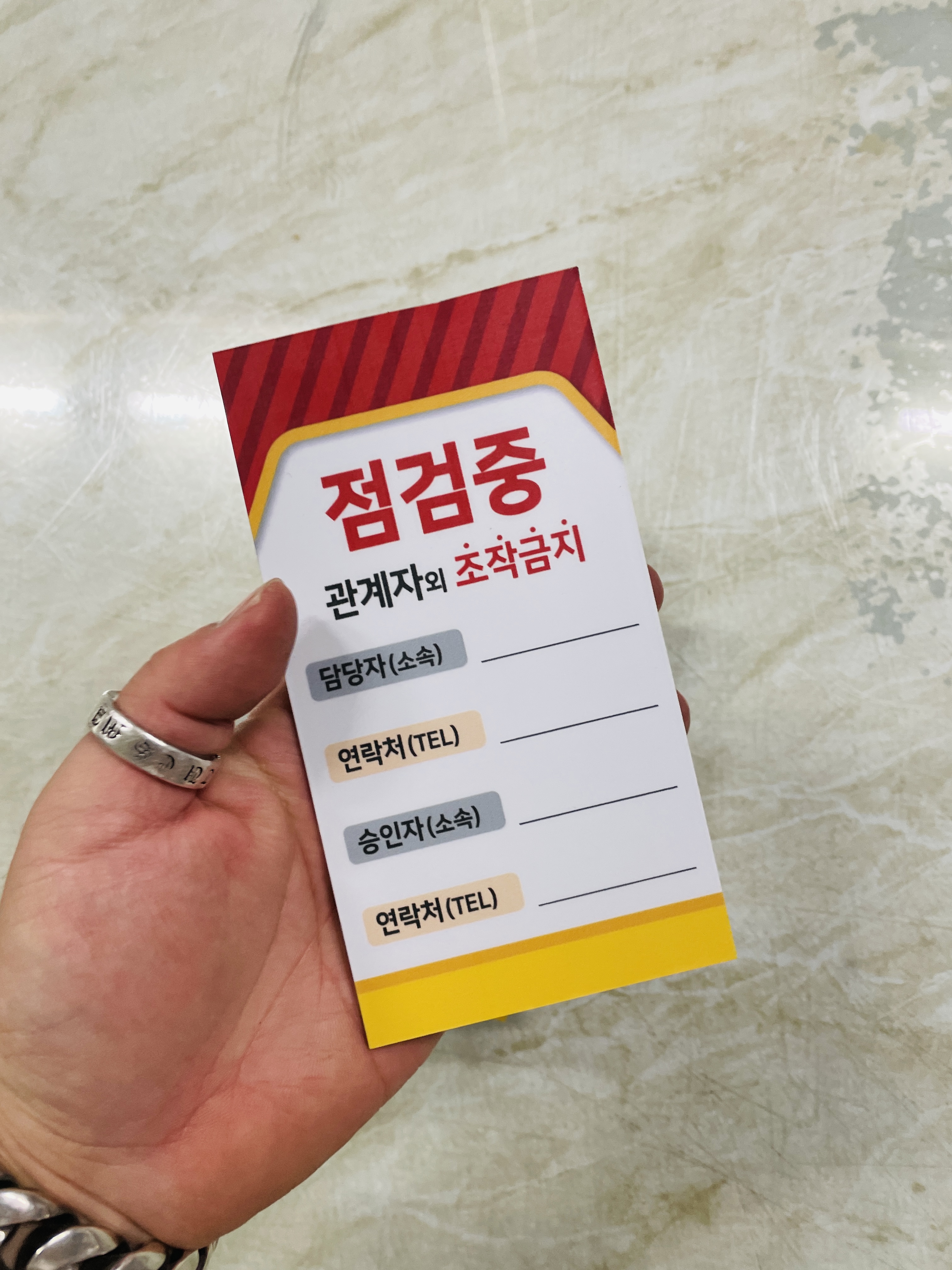 자석 점검중 조작금지 안전작업수칙 관계자 담당자 연락처 승인자 연락처 표지판 걸이형 태그 :