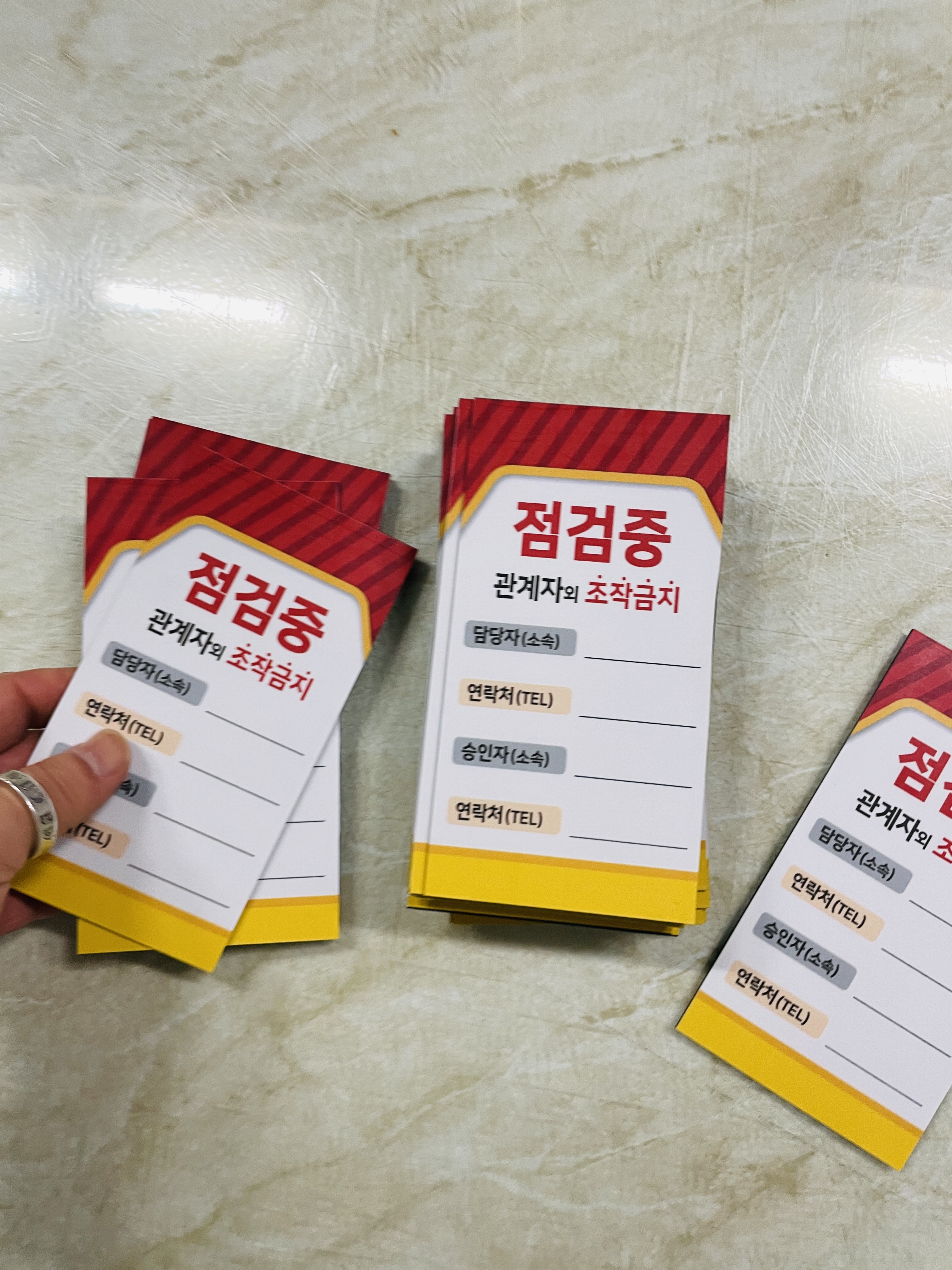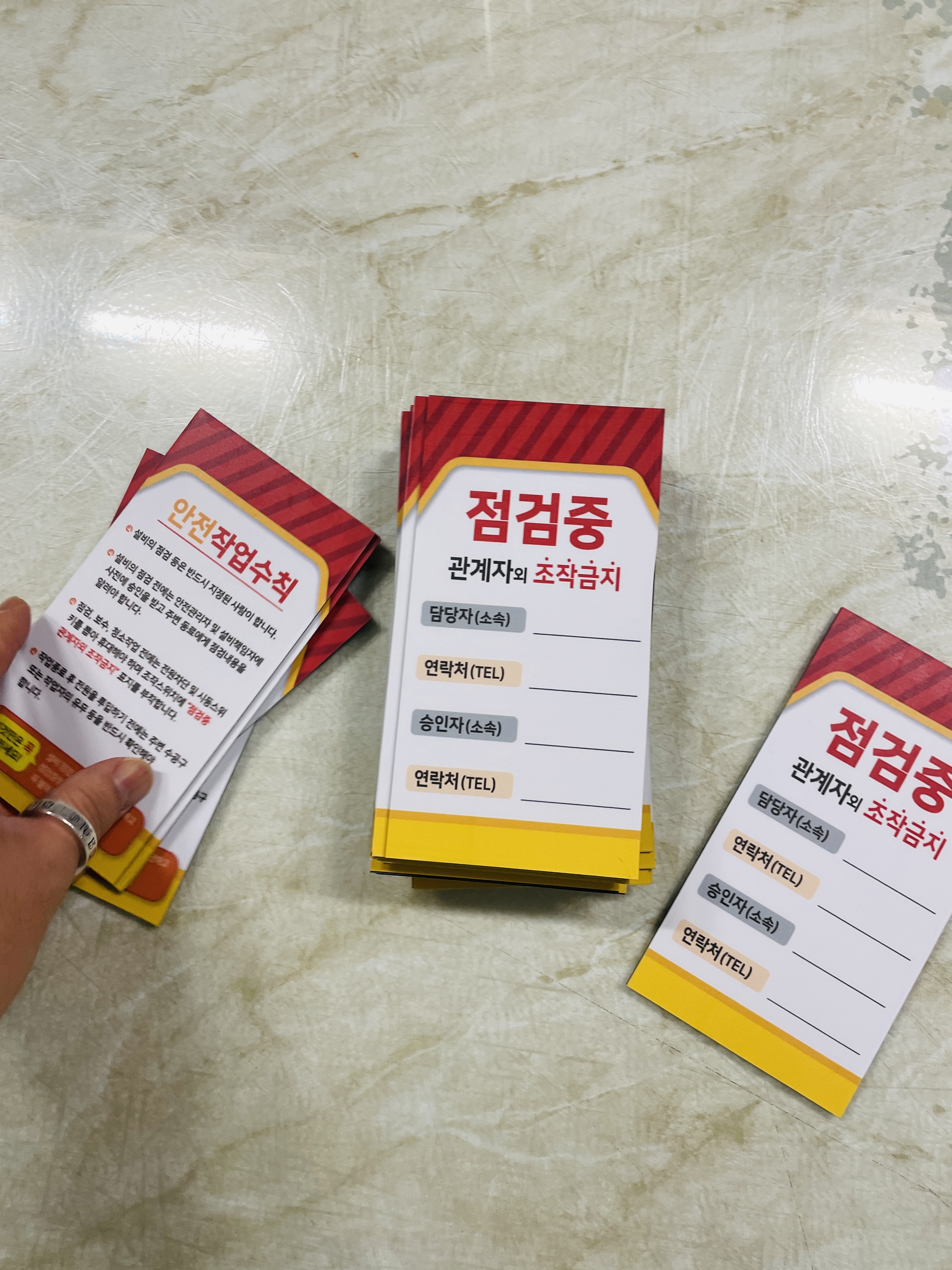 자석 점검중 조작금지 안전작업수칙 관계자 담당자 연락처 승인자 연락처 표지판 걸이형 태그