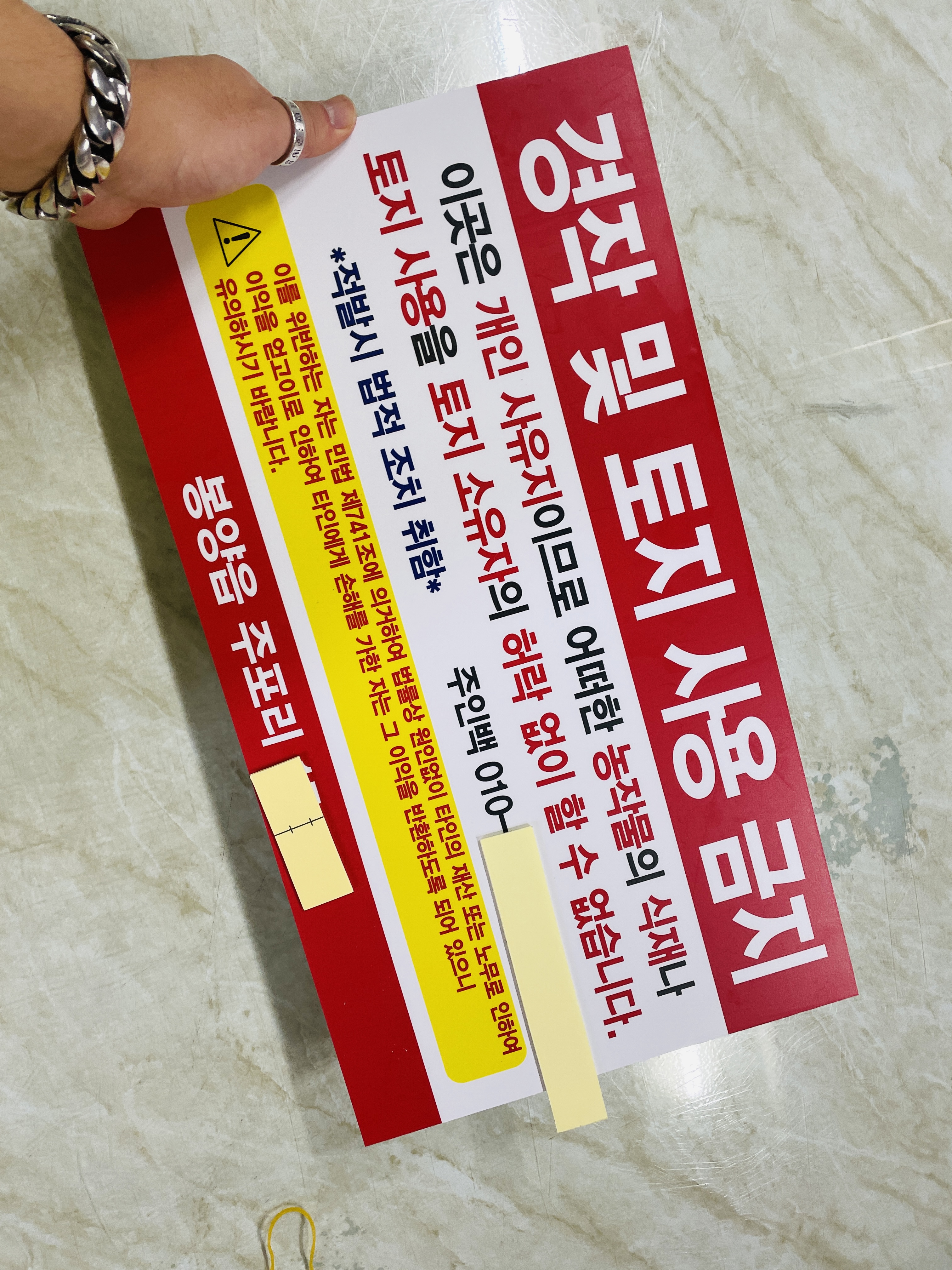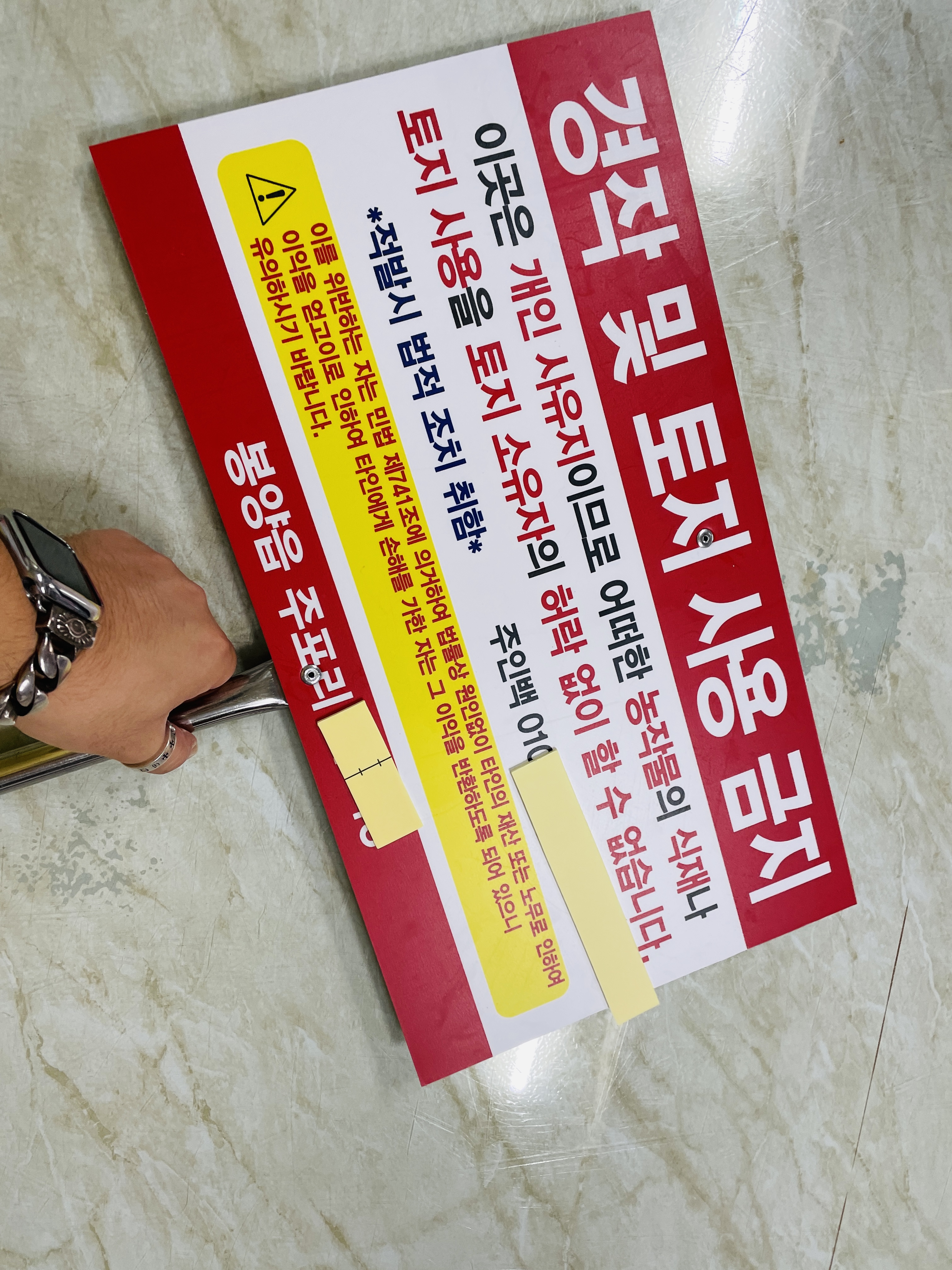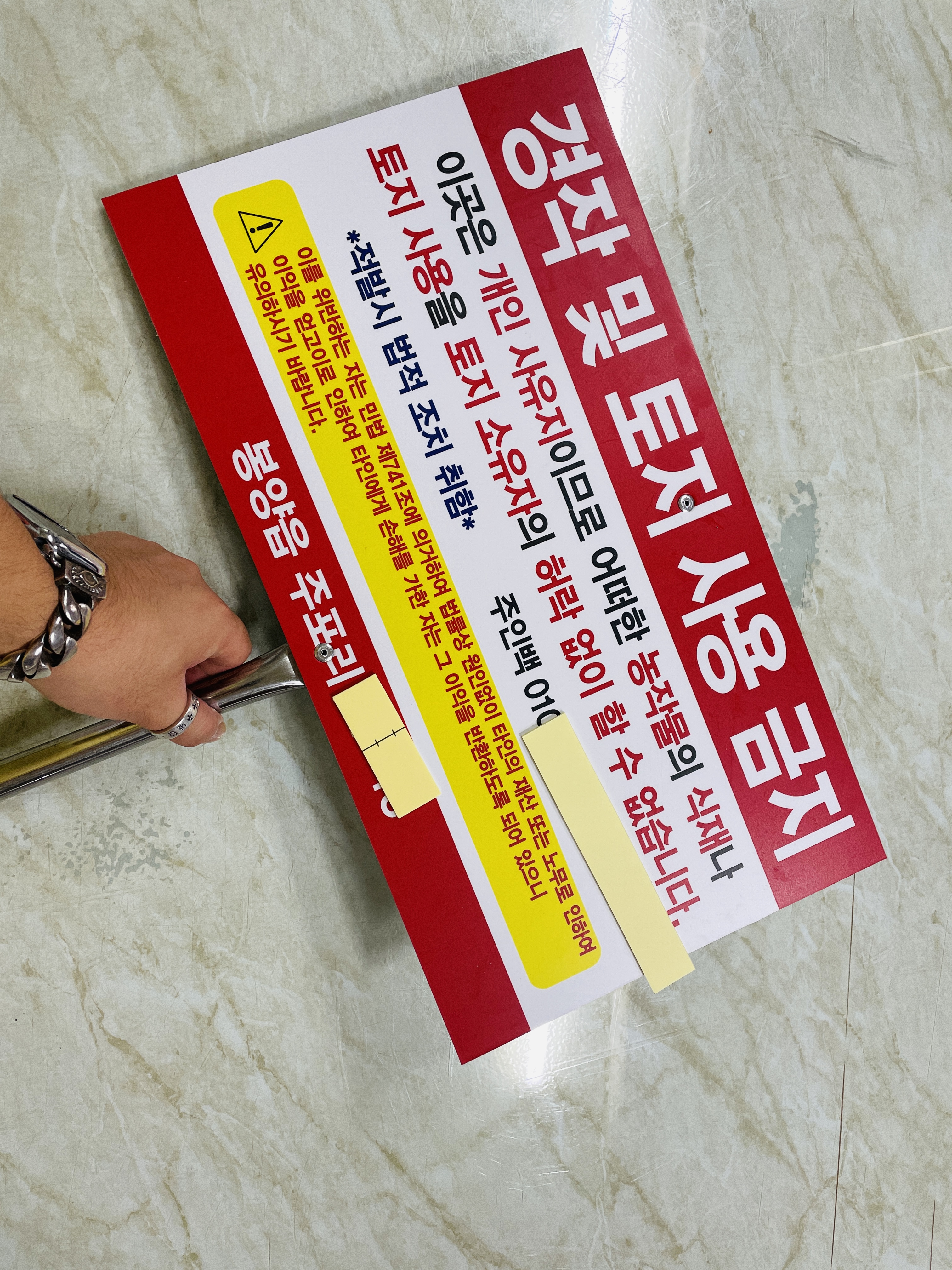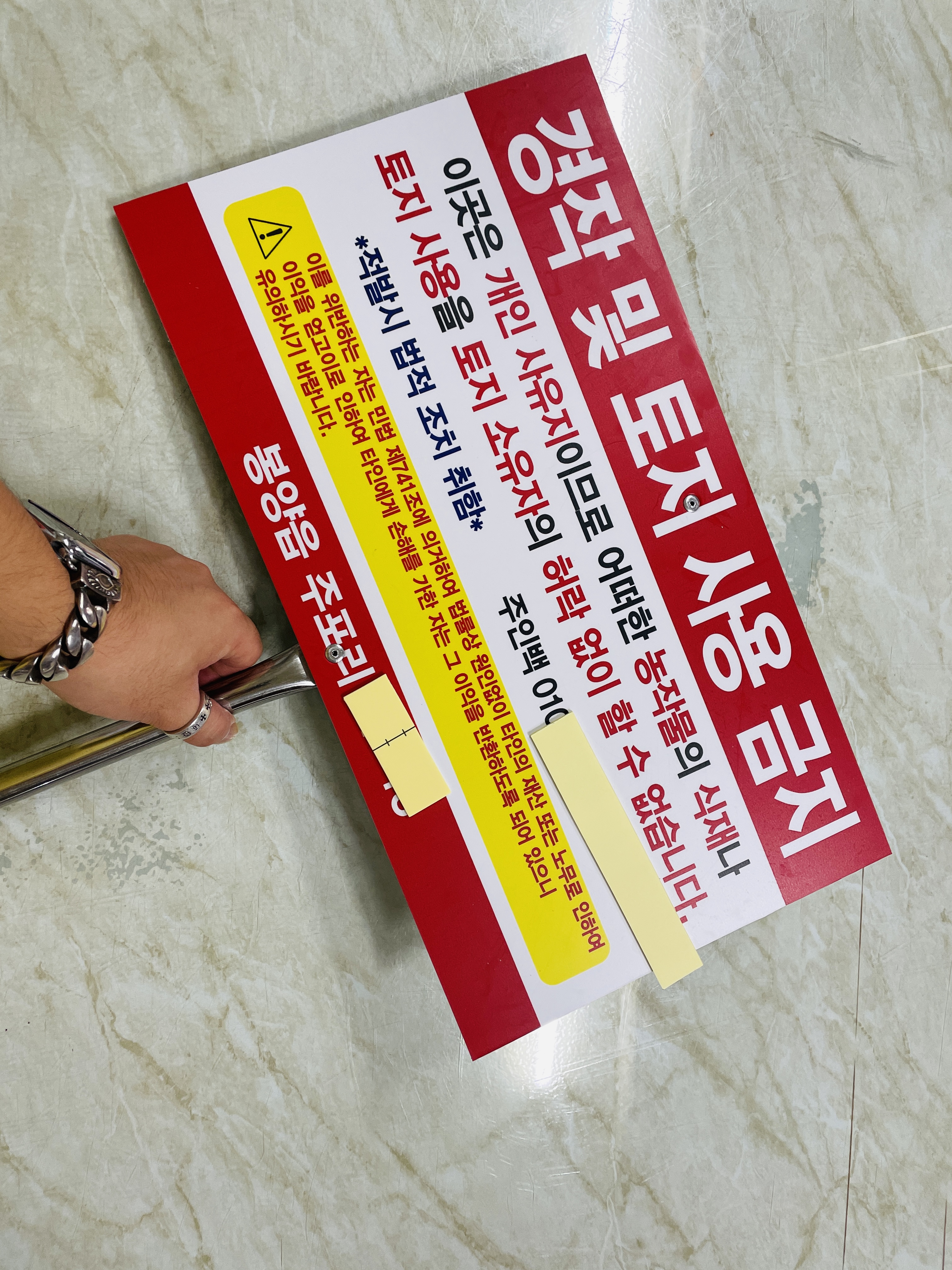 외부인출입금지 경작 제작 주자 잔디보호 전면주차 안내표지판 토지매매 사유지 토지주 경고 :