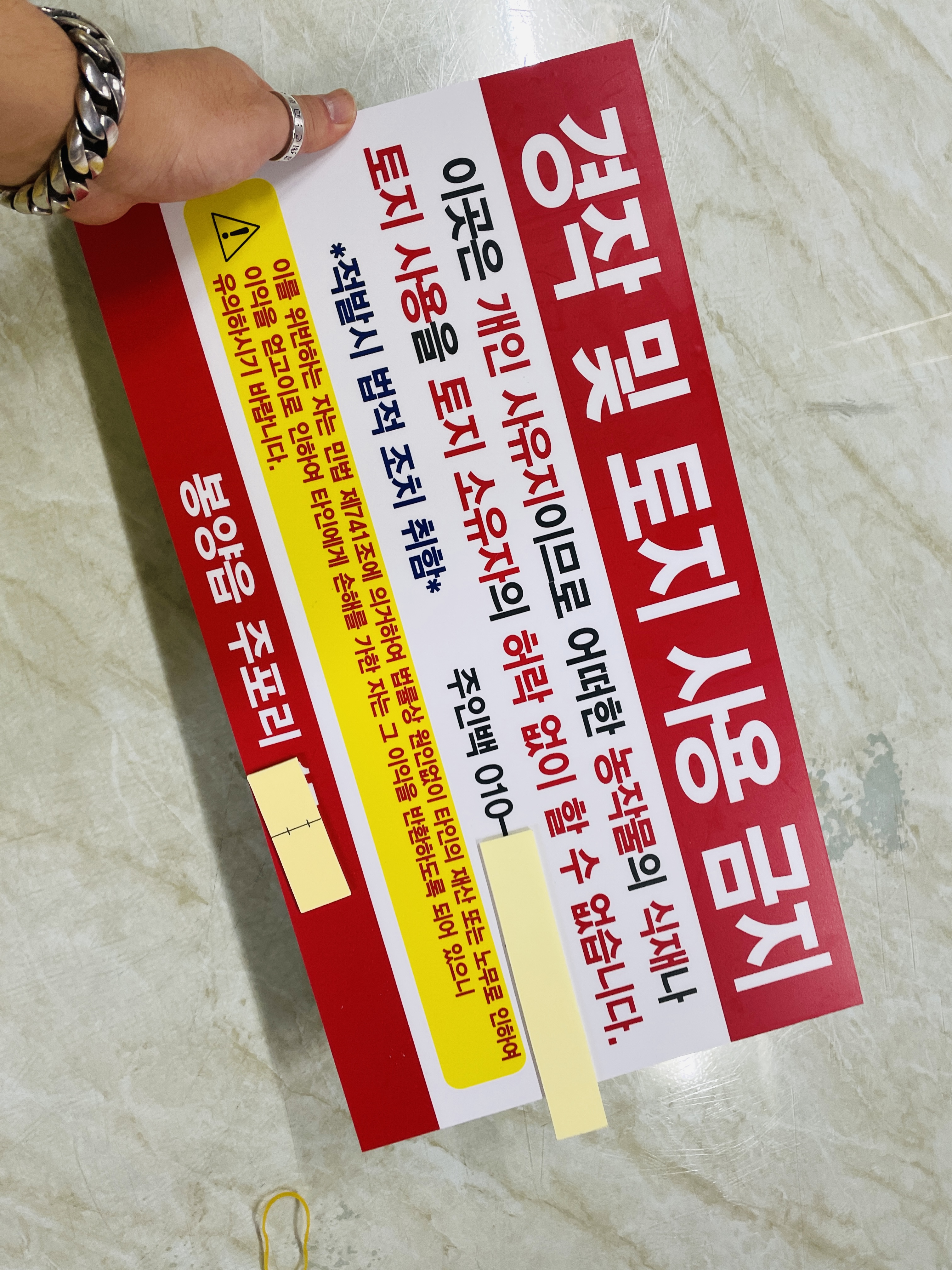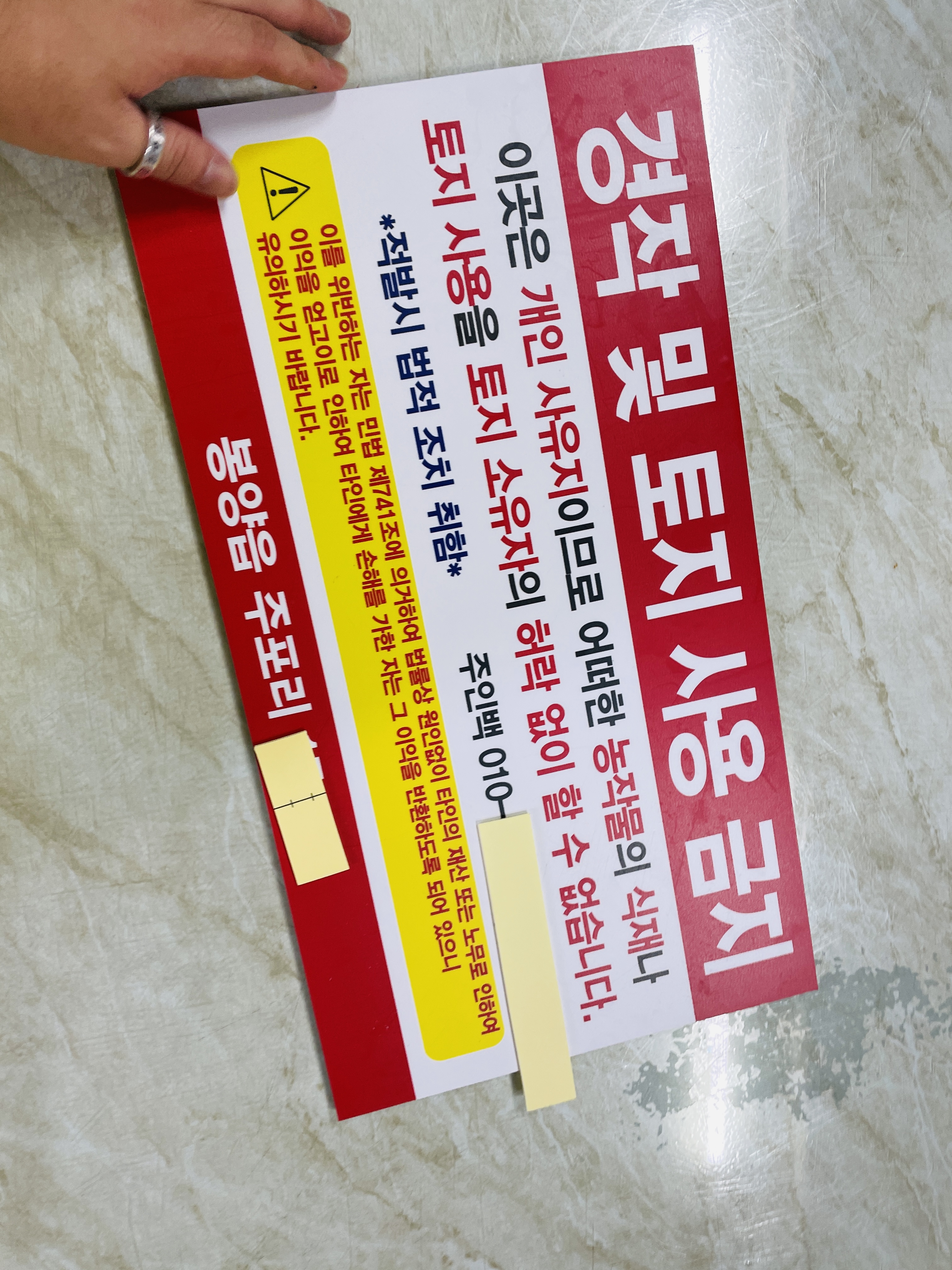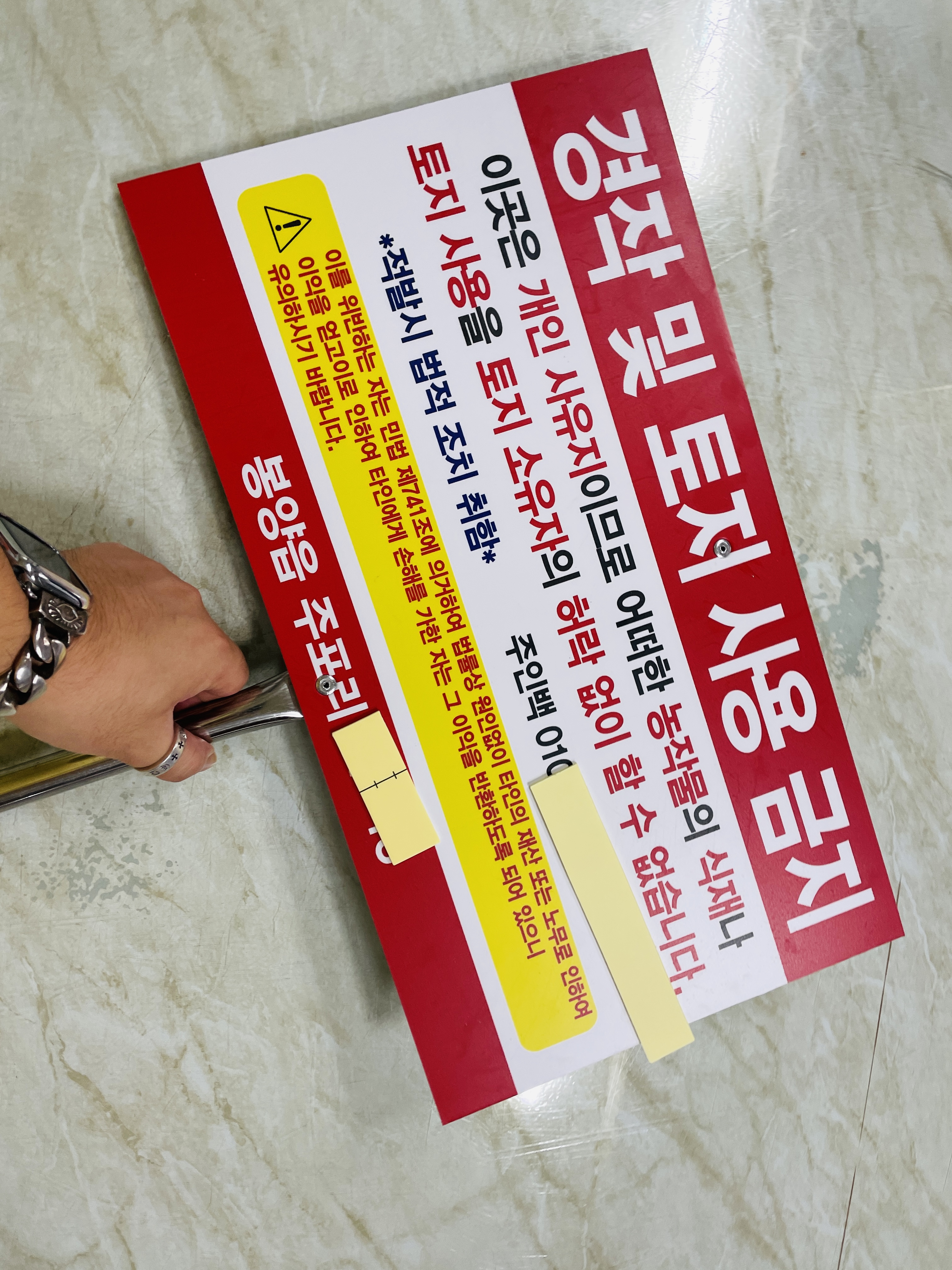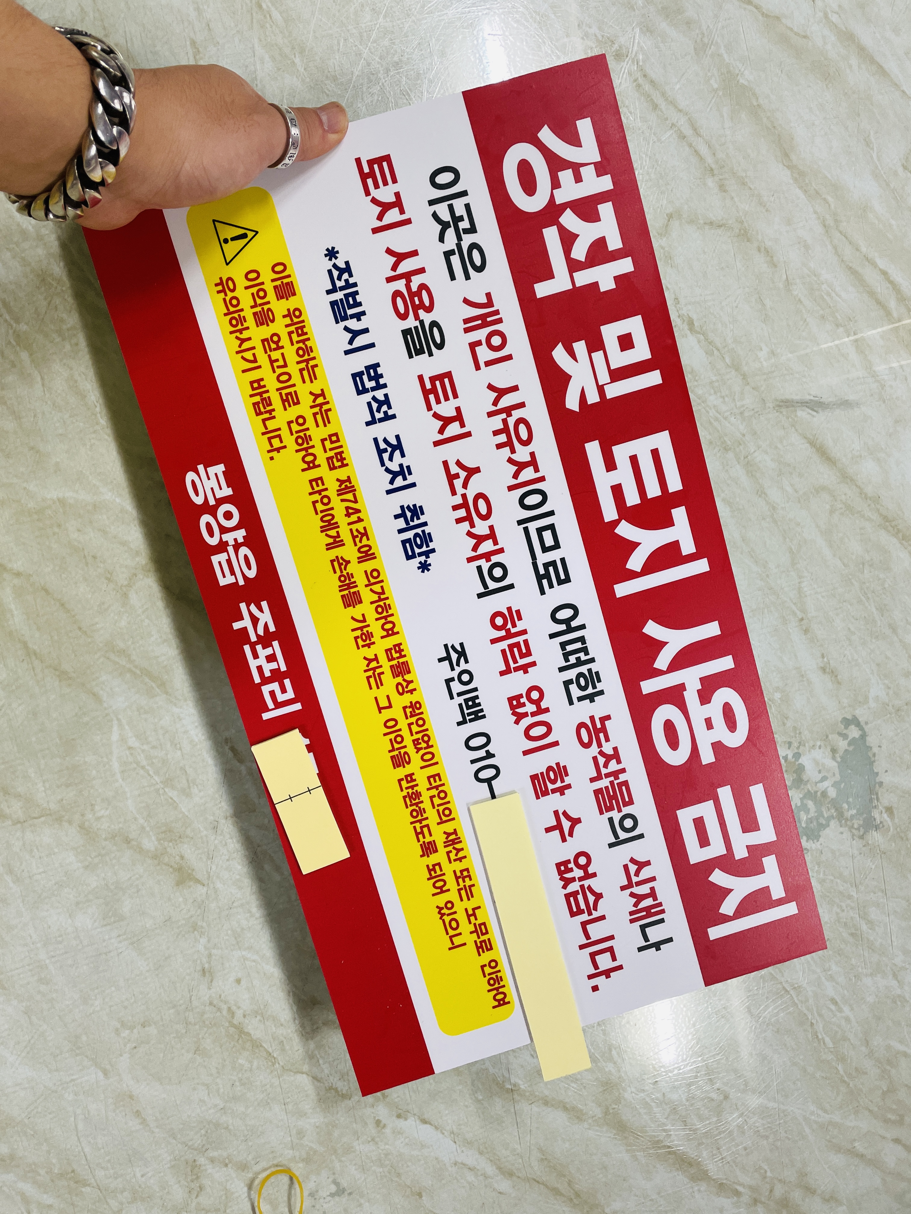 외부인출입금지 경작 제작 주자 잔디보호 전면주차 안내표지판 토지매매 사유지 토지주 경고 :