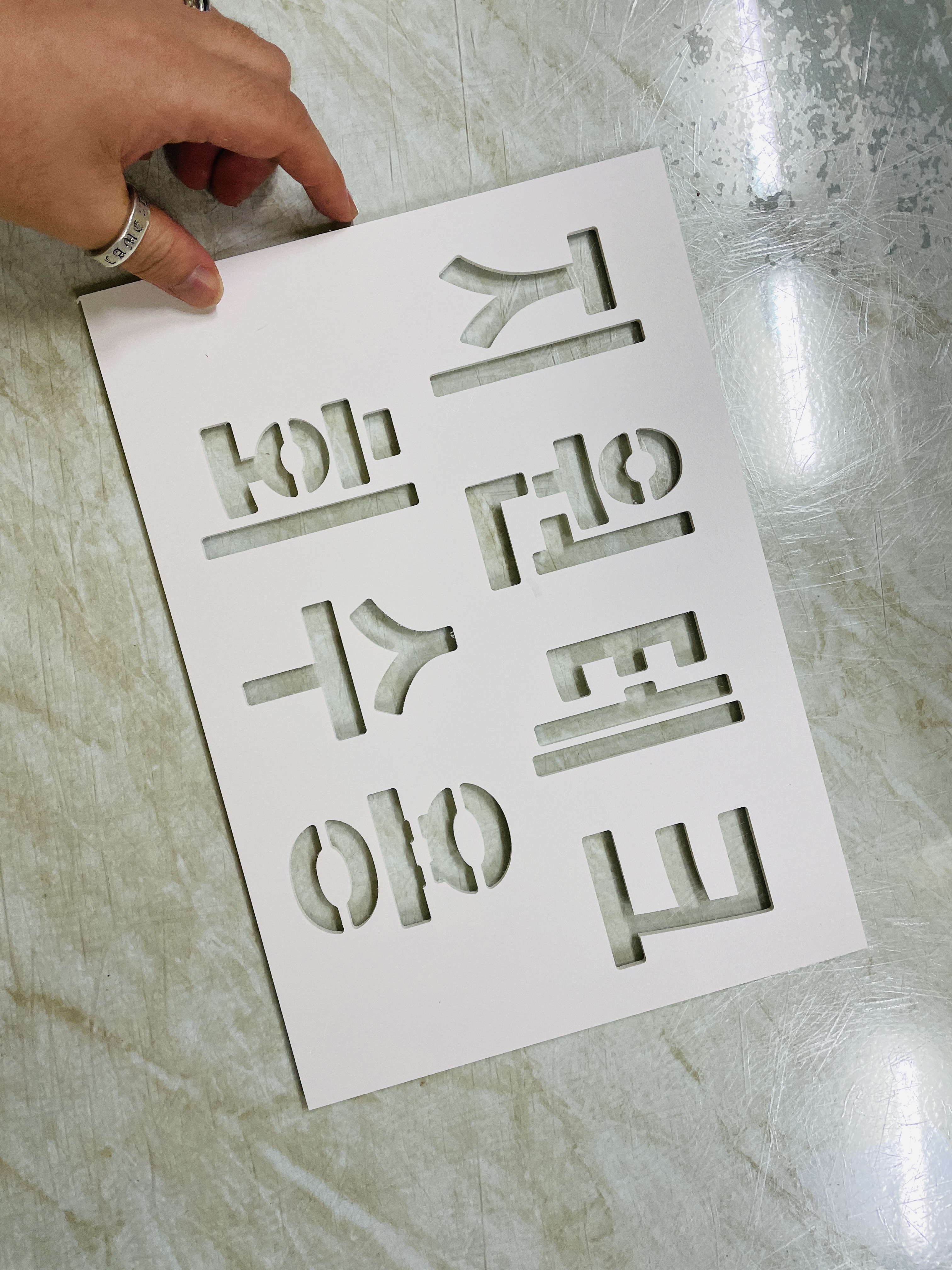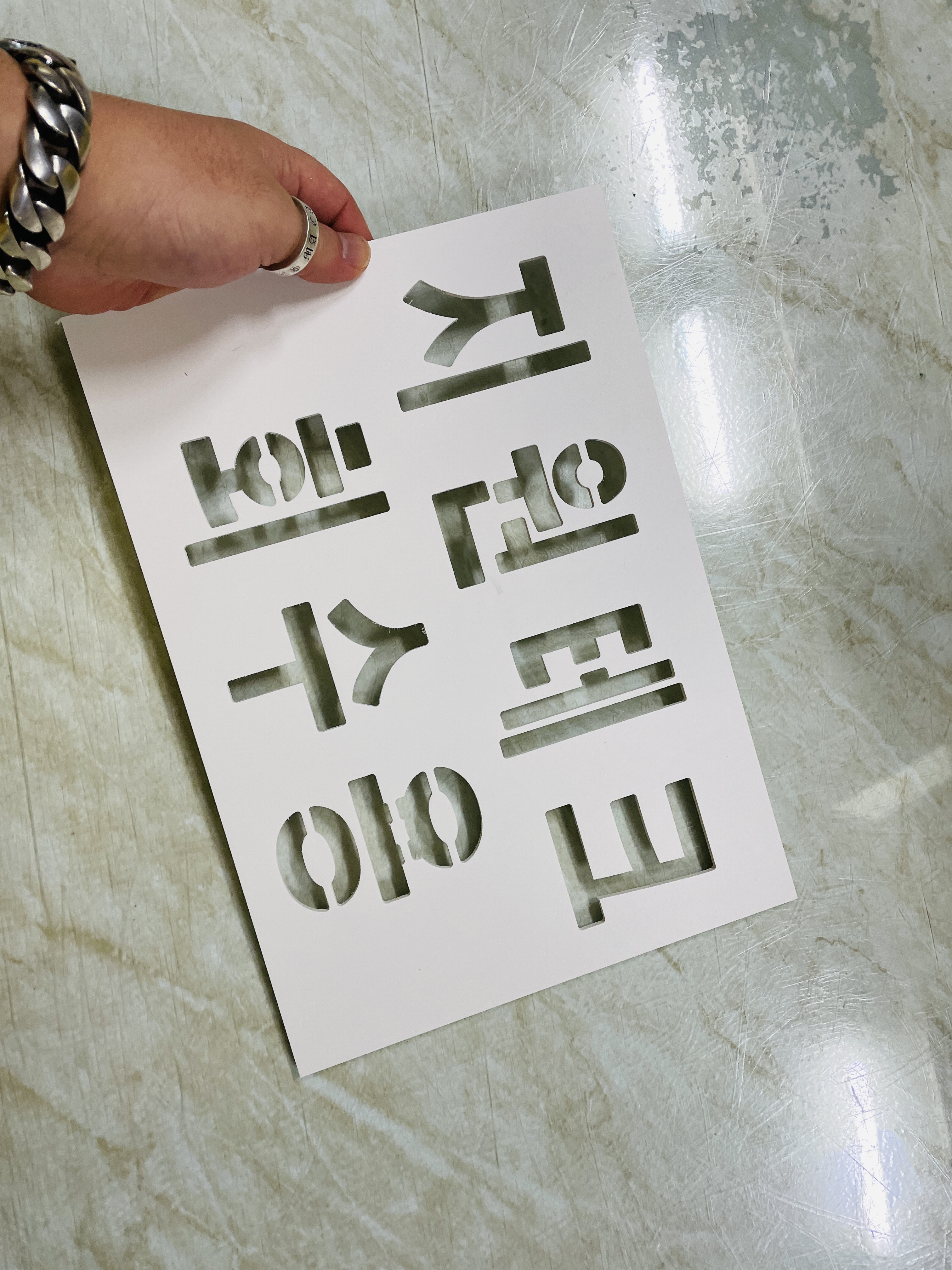 아크릴 포맥스 글자 마킹판 스테인 cnc가공 스프레이 글자판 페인트 시트지 시트컷팅