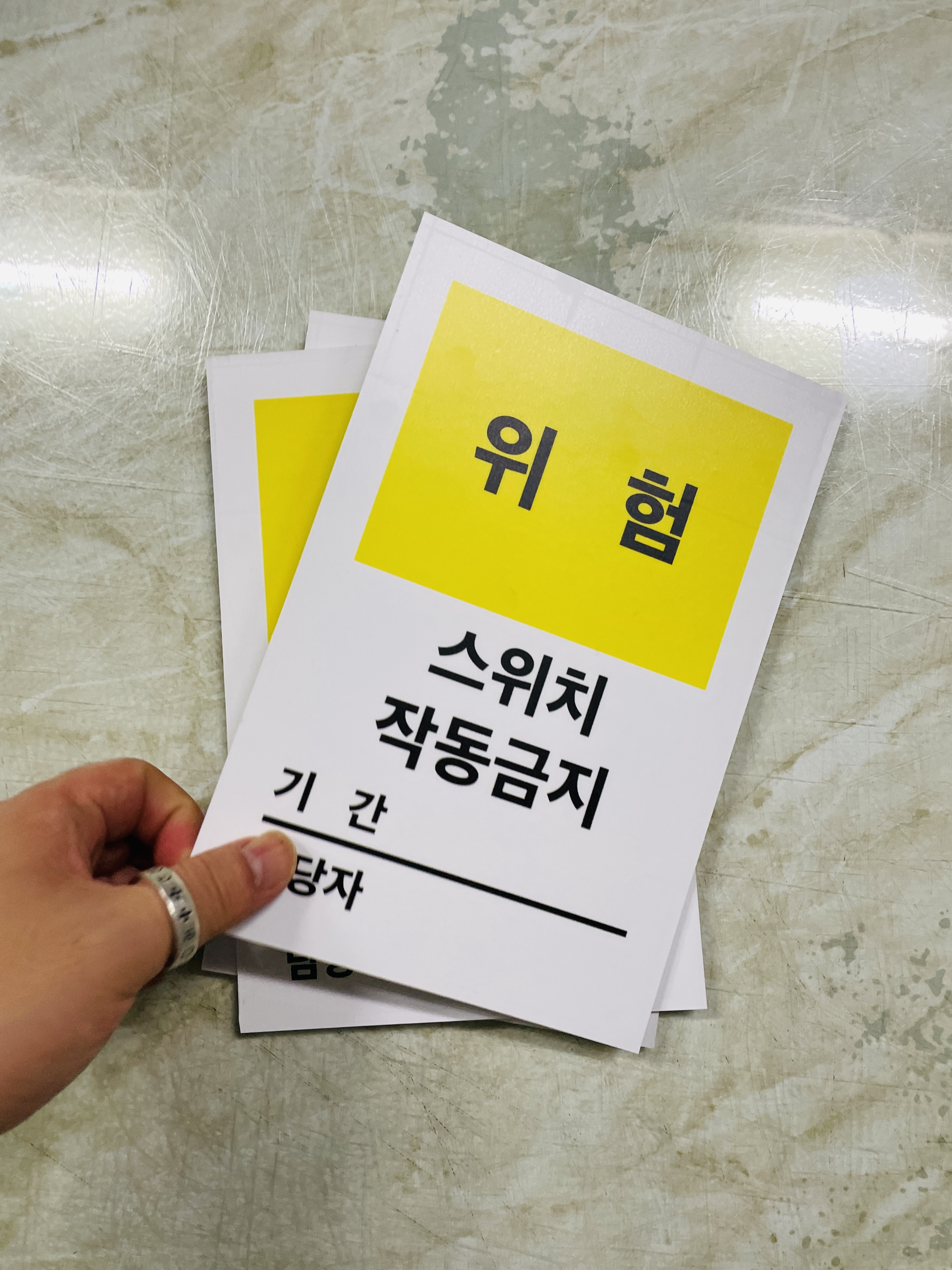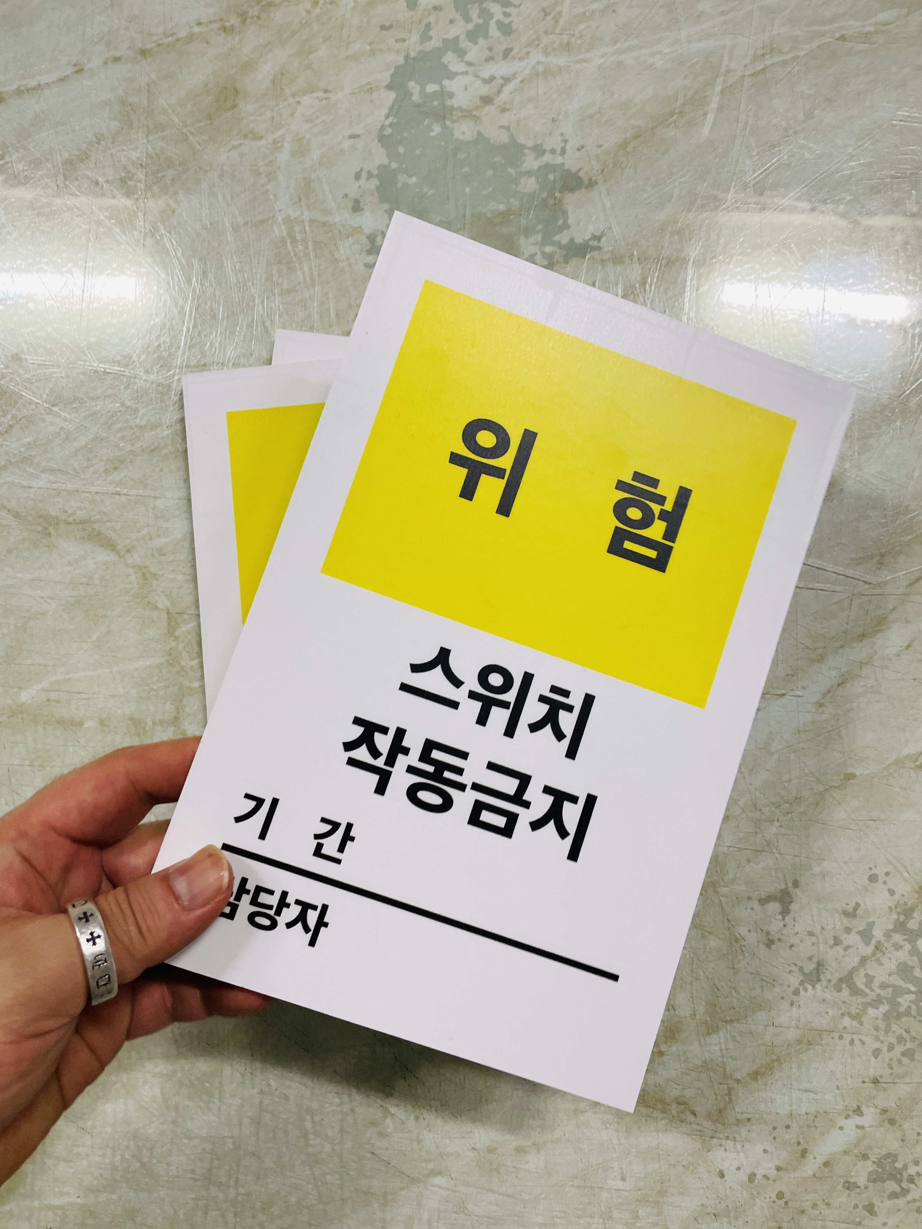 위험 스위치 작동금지 기간 담당자 표지판 자석 스티커