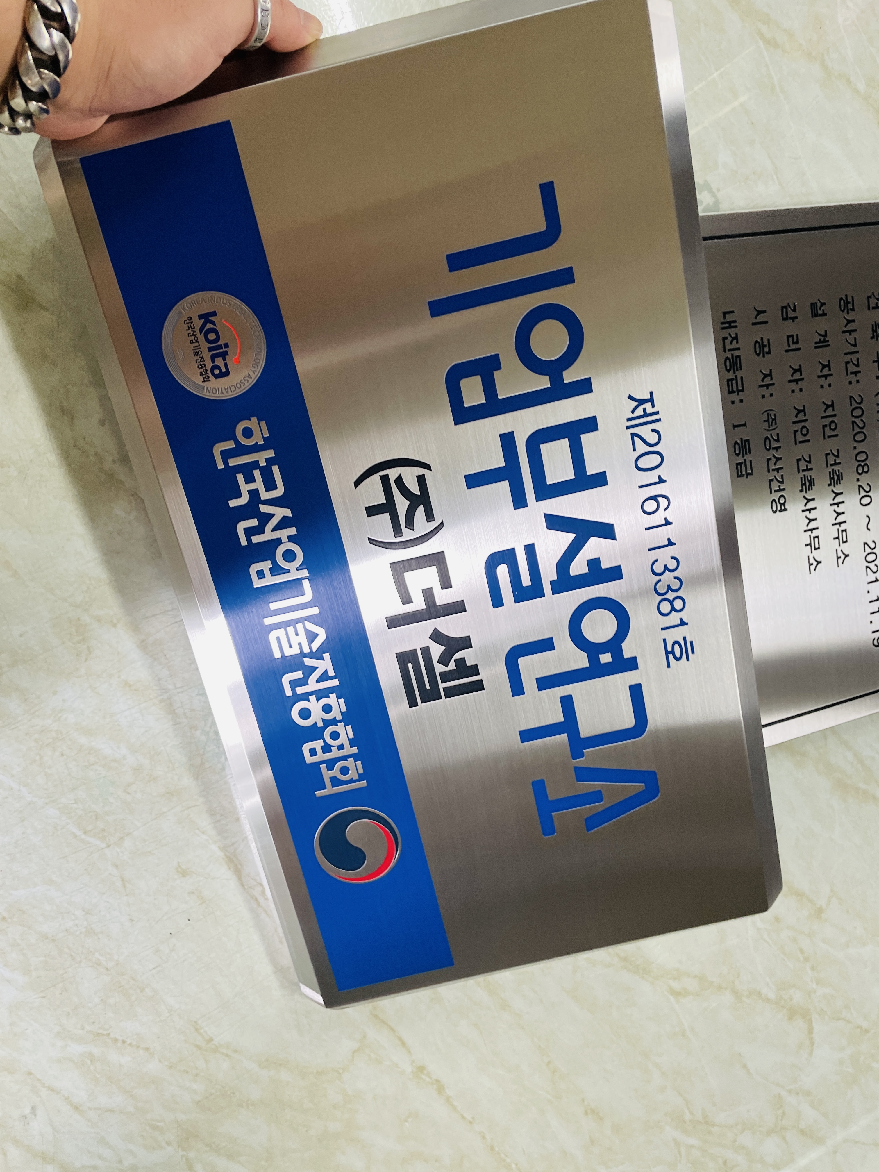 [스텐부식]현판 기업부설연구소 회사명패 명판 간판 아크릴간판 실내 사무실 마음대로
