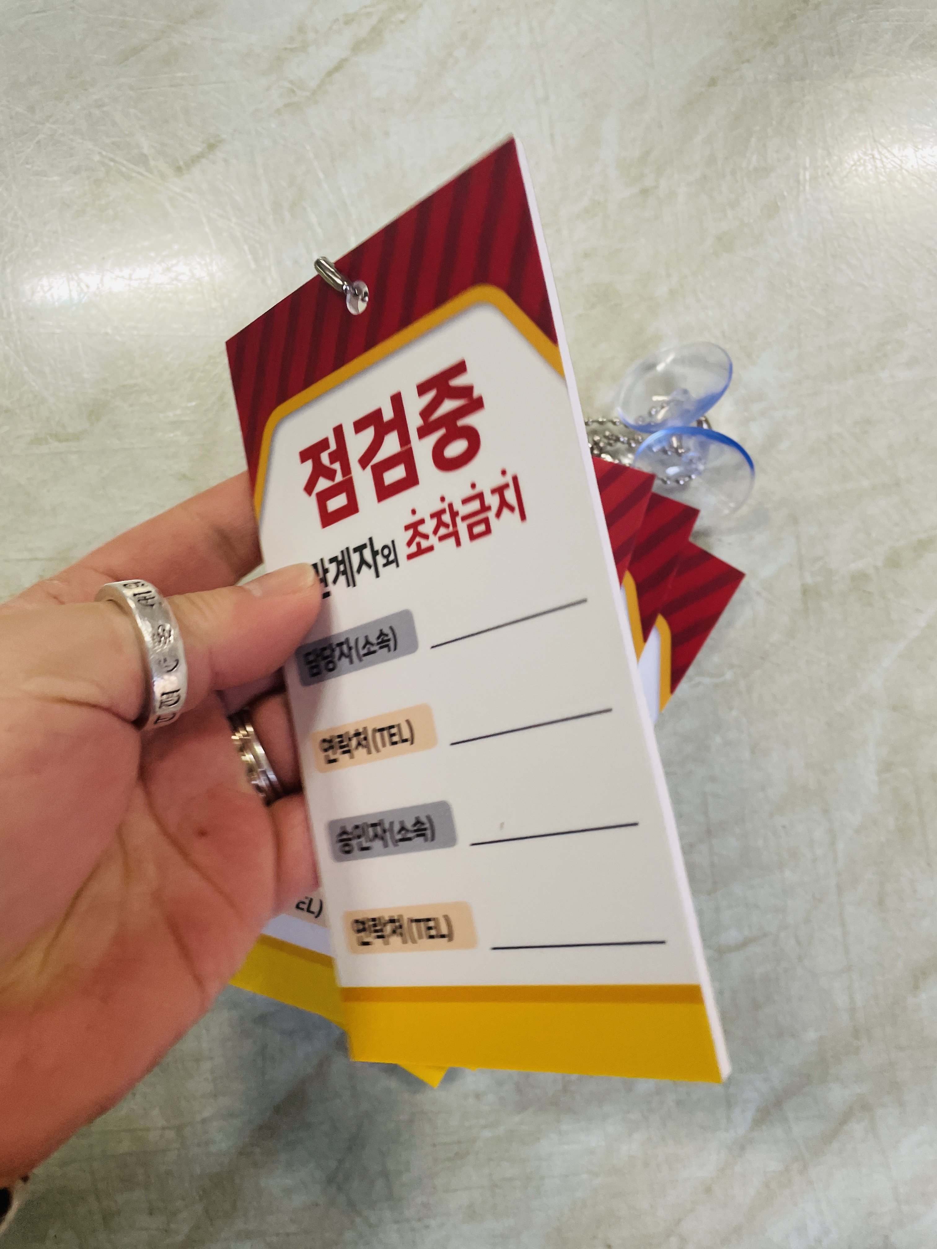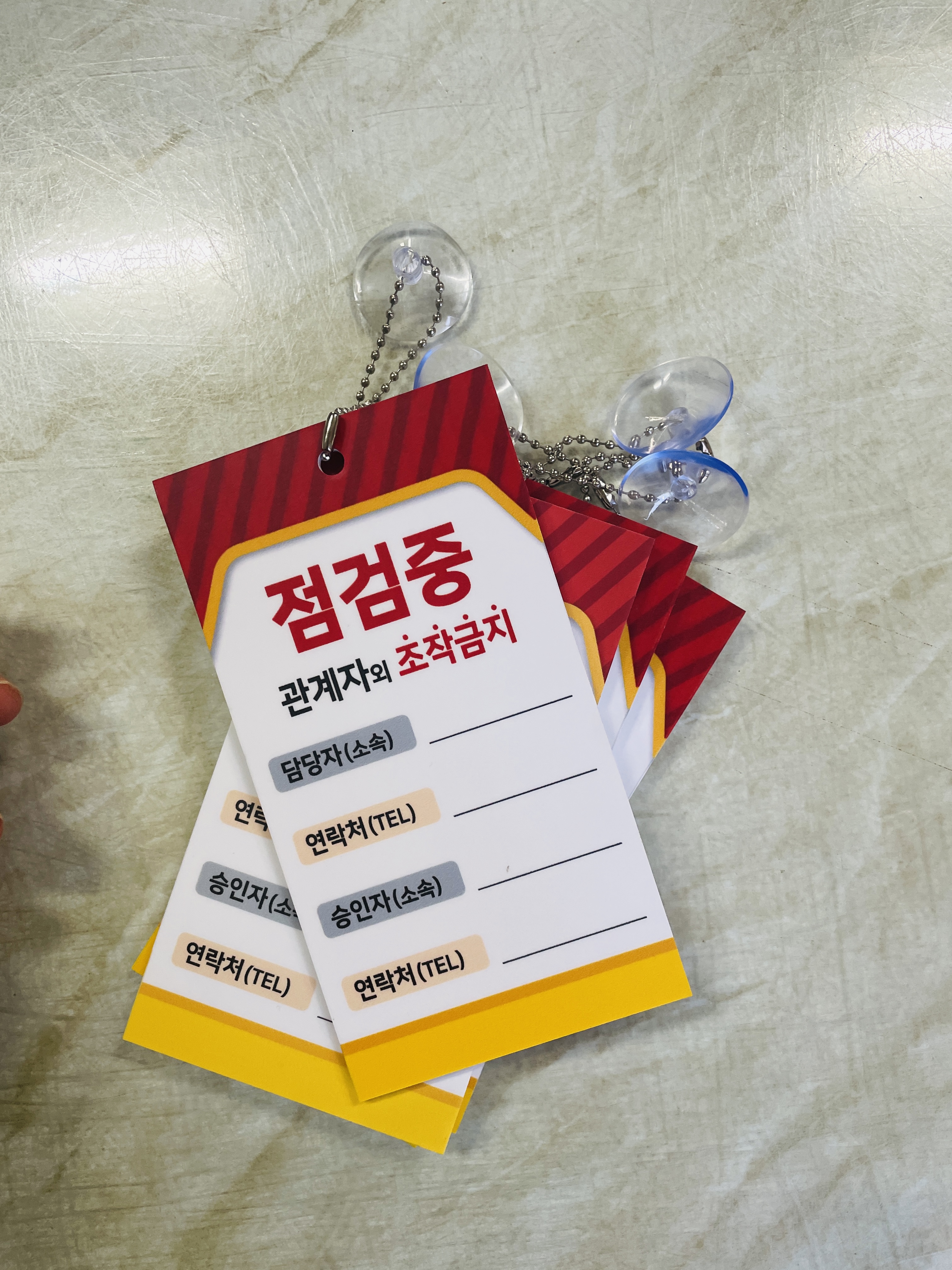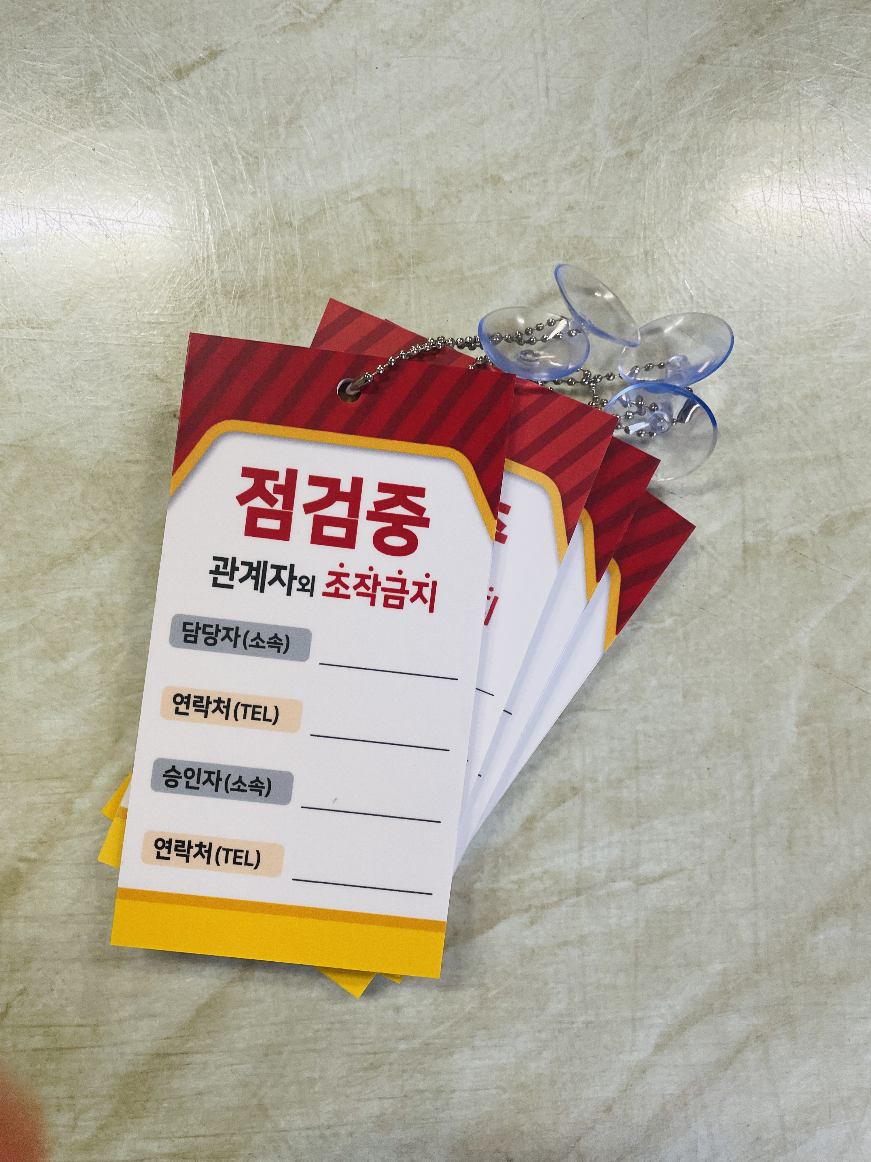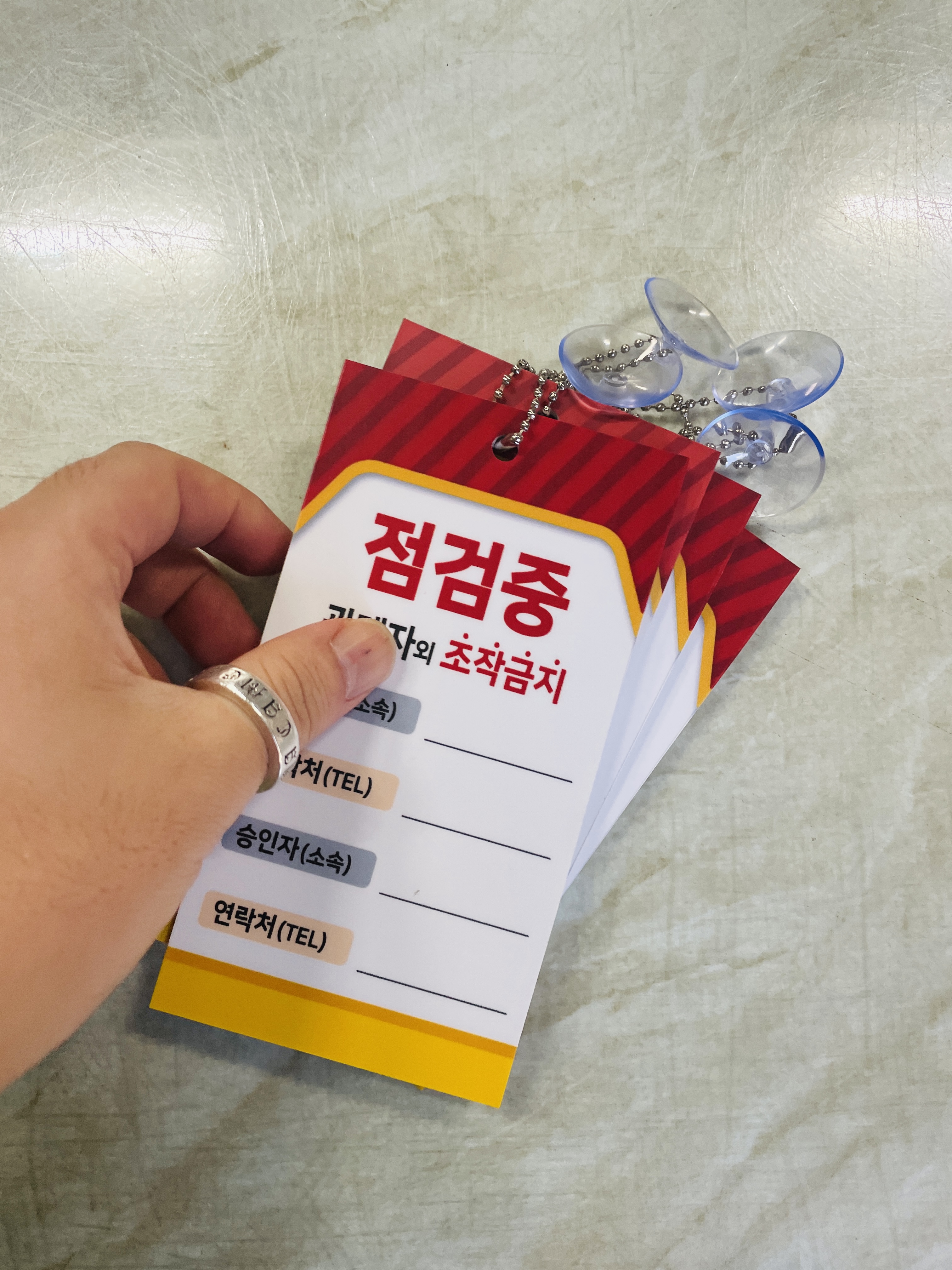 점검중 조작금지 안전작업수칙 관계자 담당자 연락처 승인자 연락처 표지판 걸이형 태그