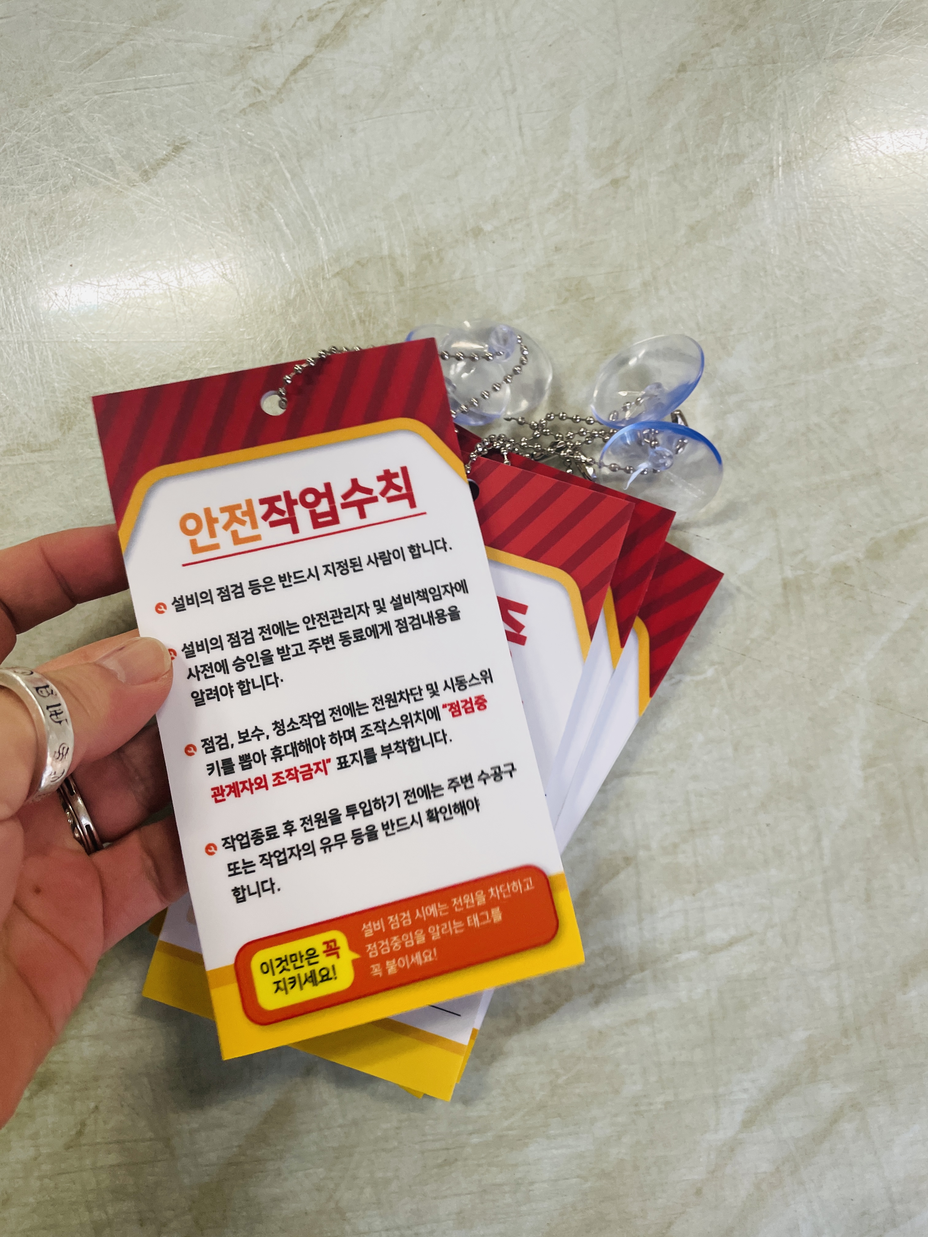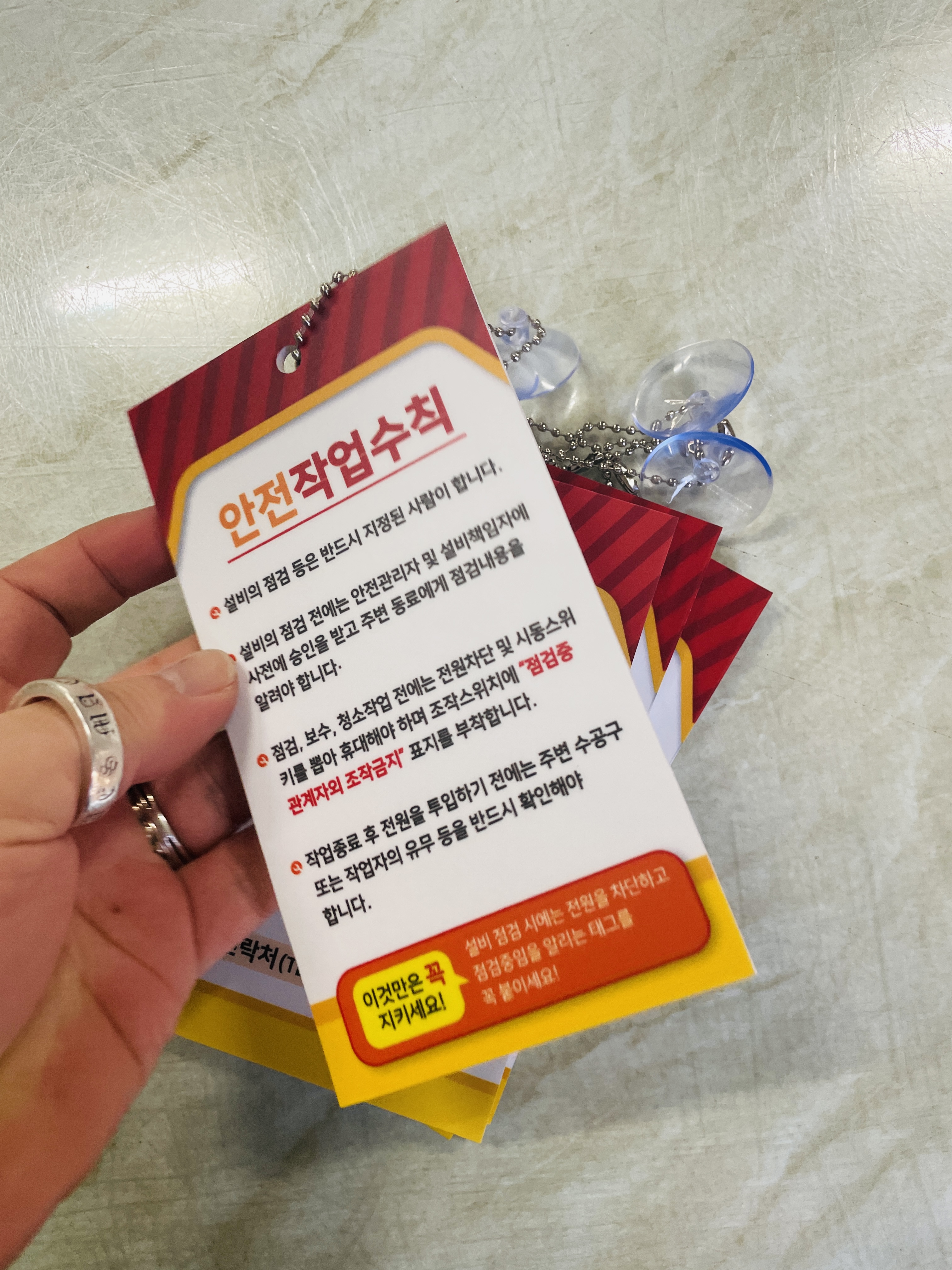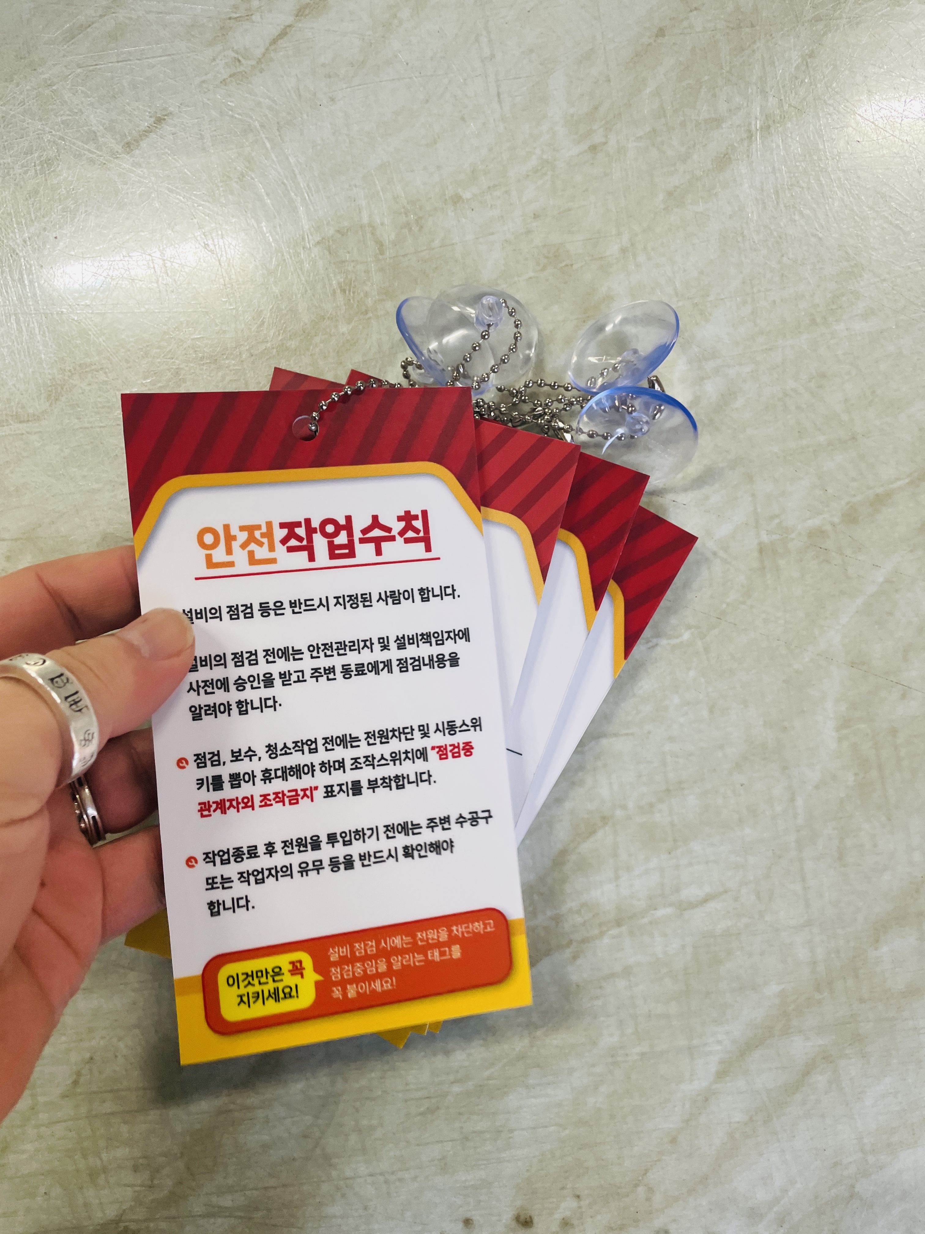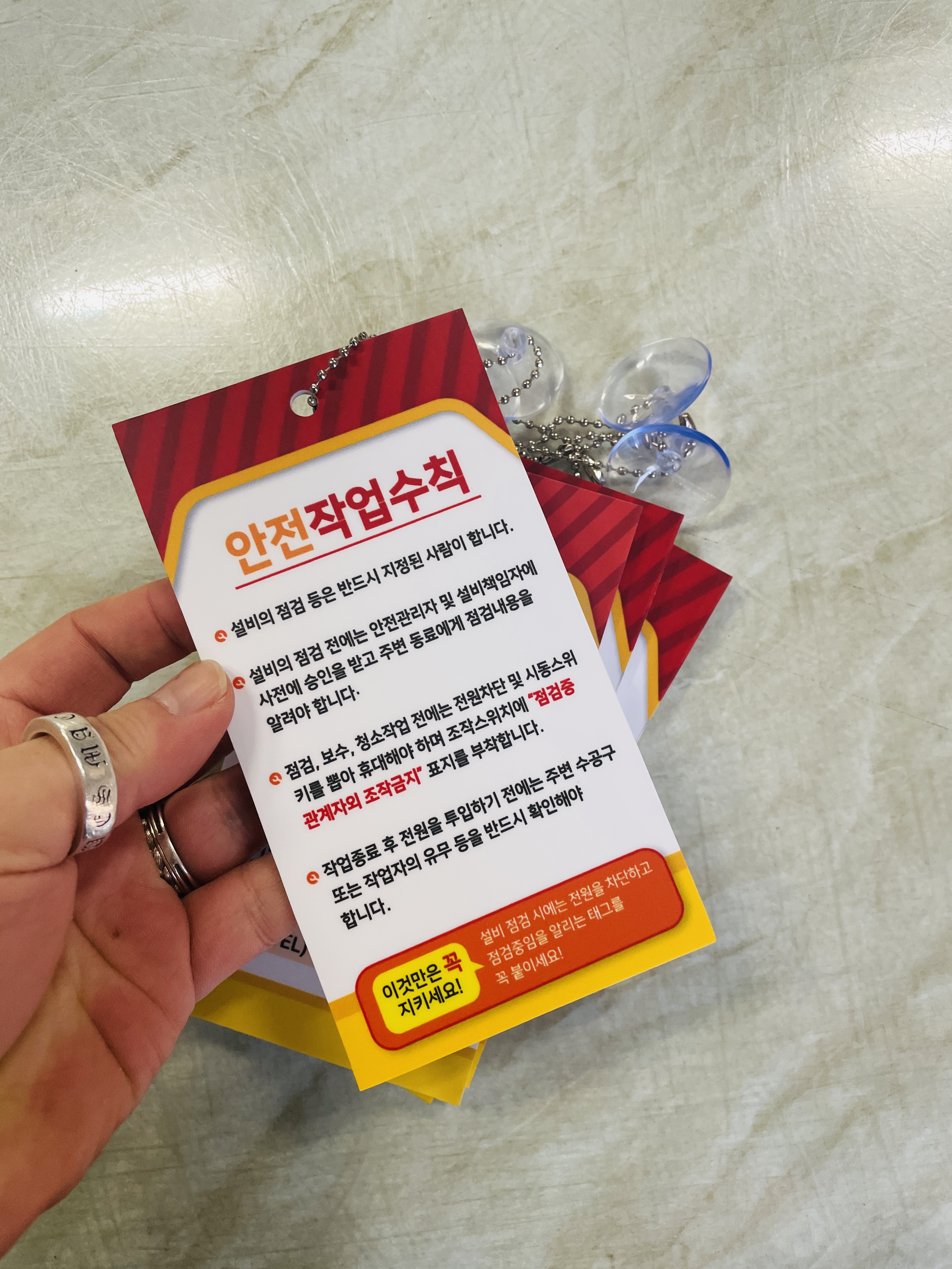 점검중 조작금지 안전작업수칙 관계자 담당자 연락처 승인자 연락처 표지판 걸이형 태그