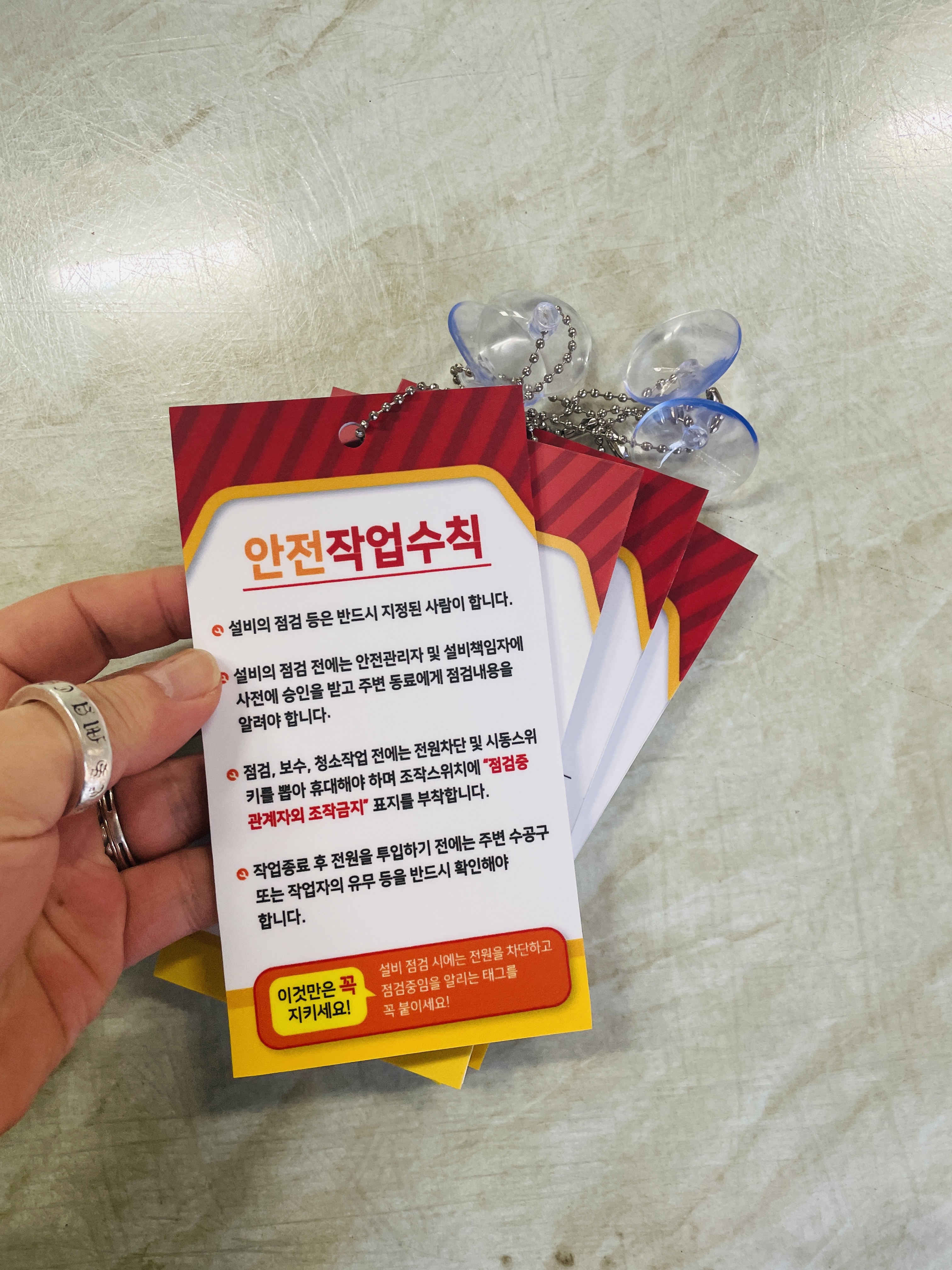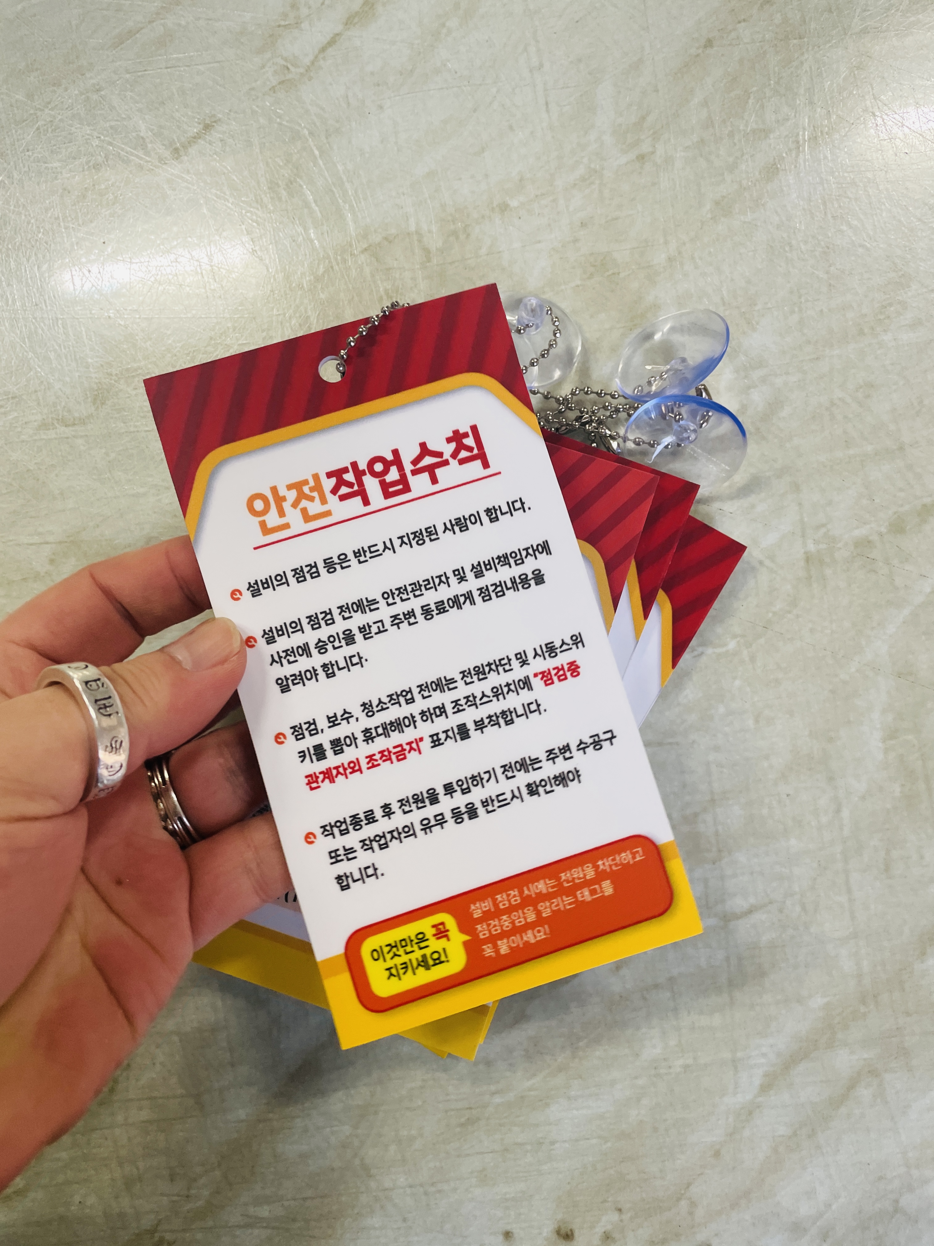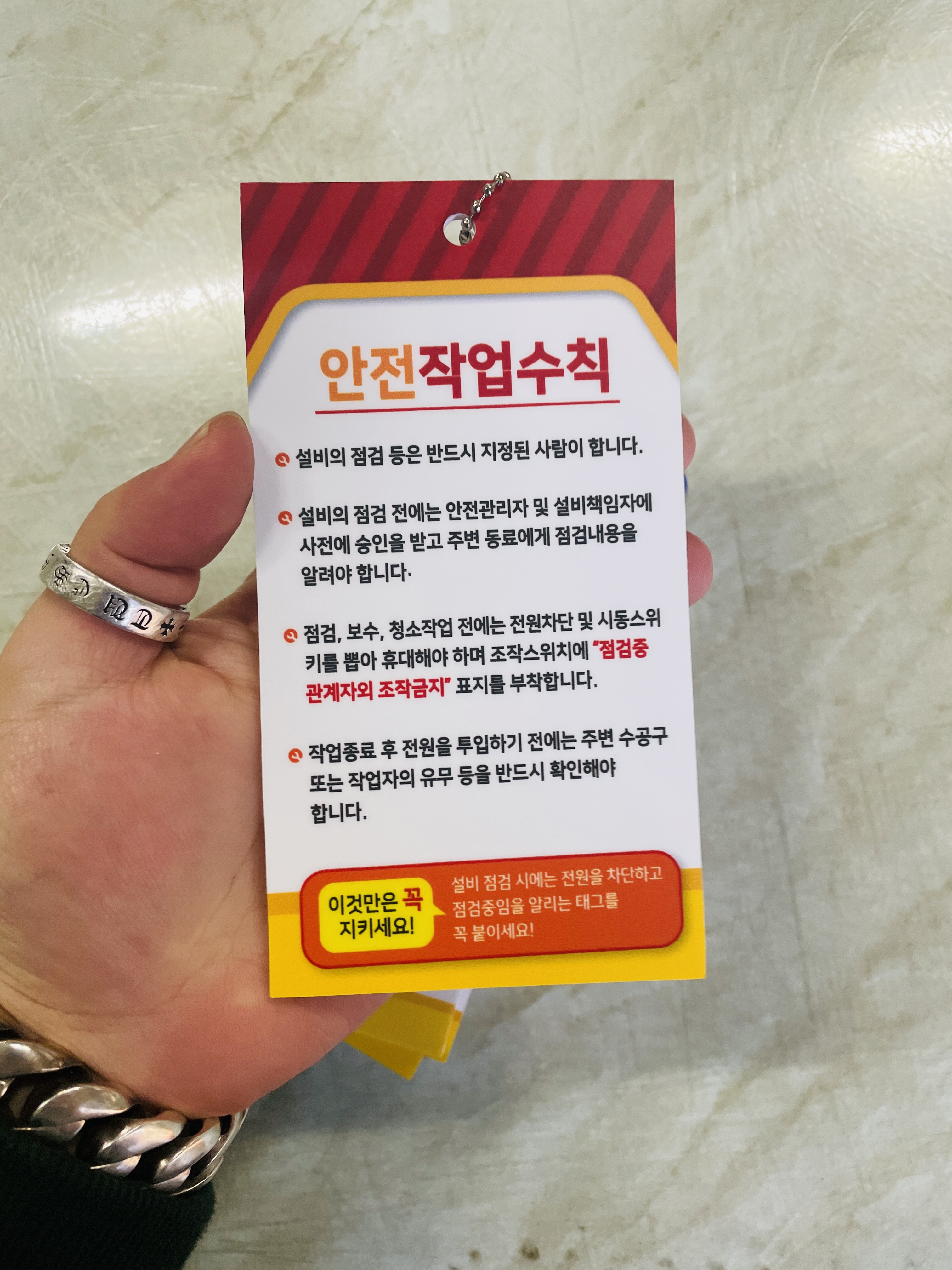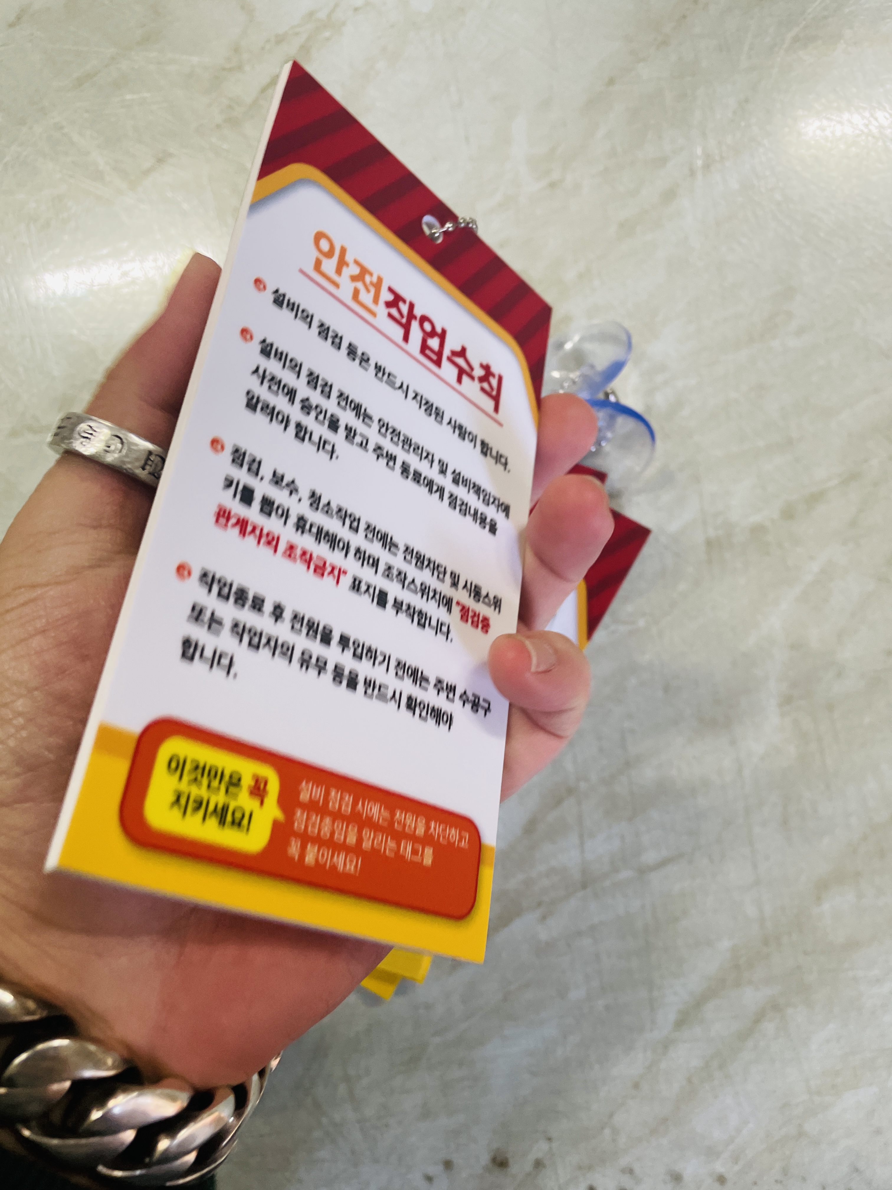 점검중 조작금지 안전작업수칙 관계자 담당자 연락처 승인자 연락처 표지판 걸이형 태그 : 베사