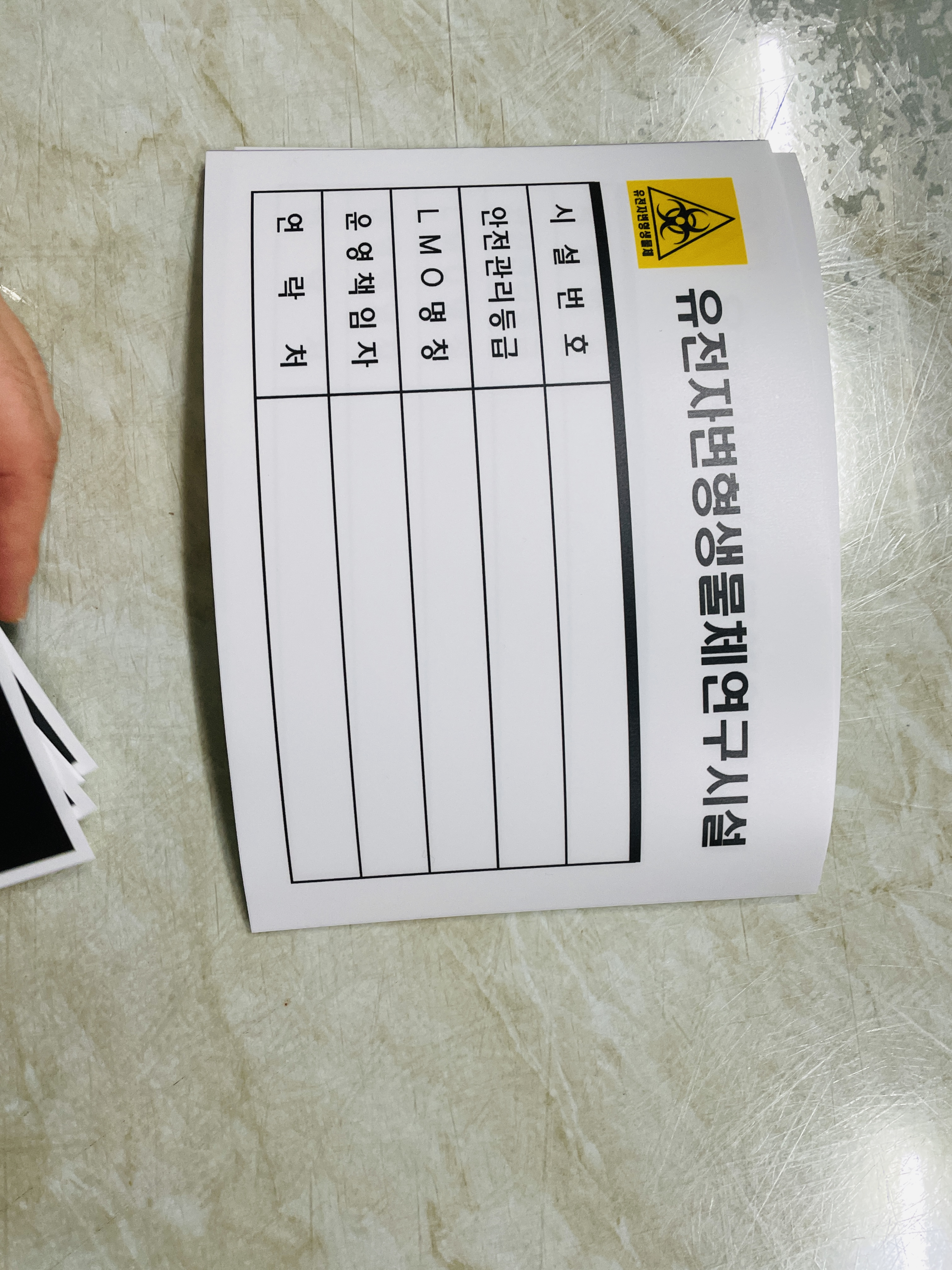 유전자변형생물체 스티커 유전자변형생물체연구시설 산업 안전 보건표지