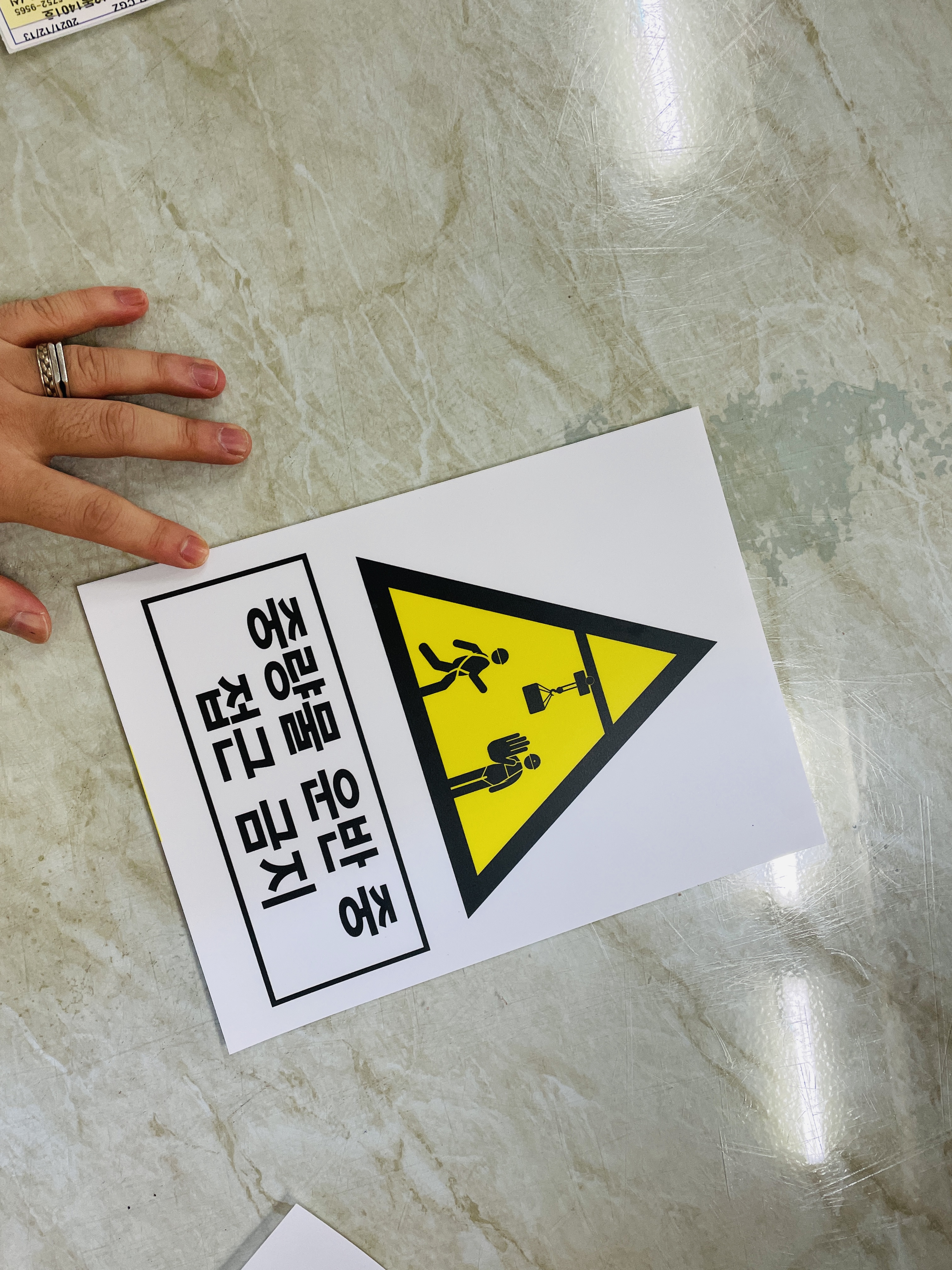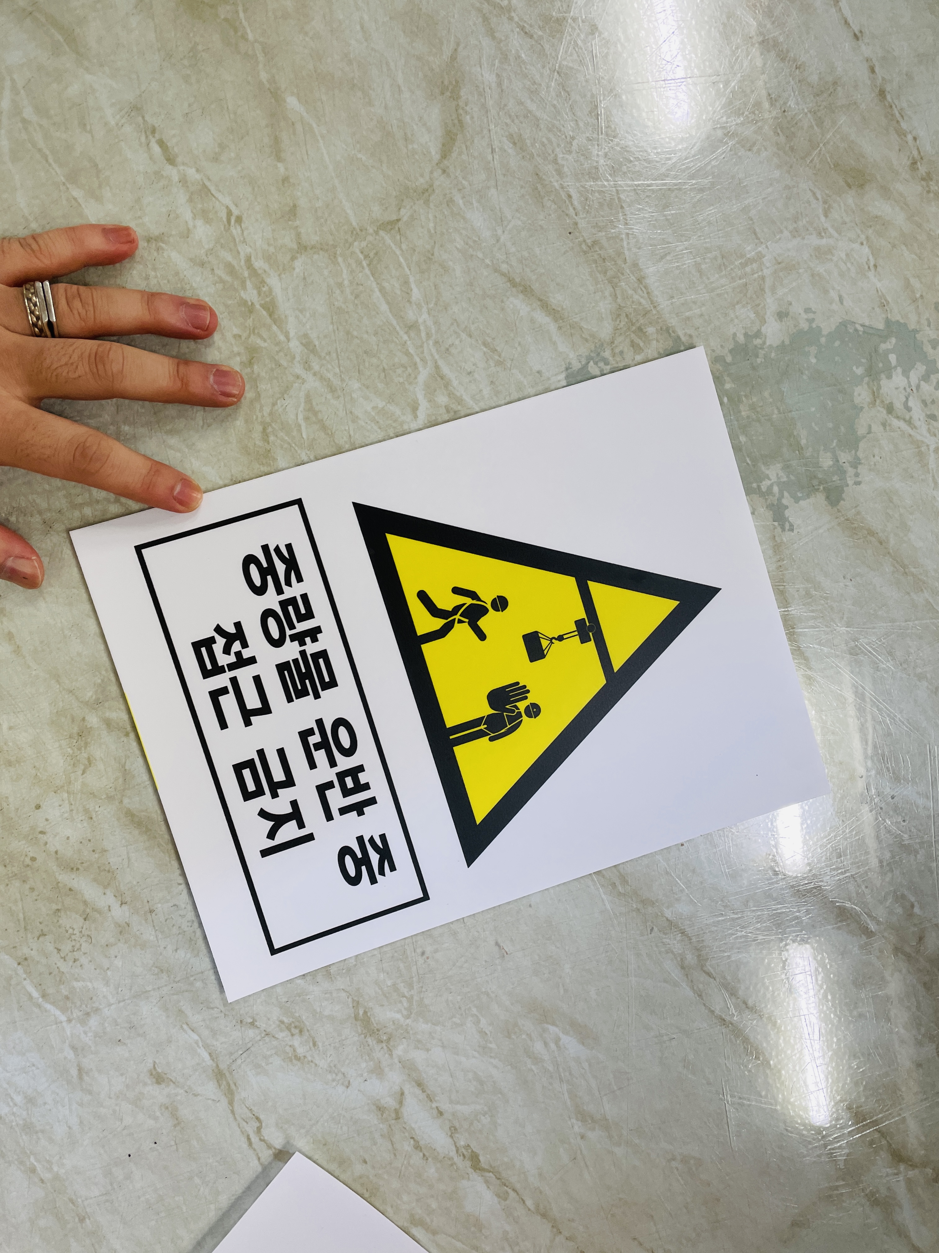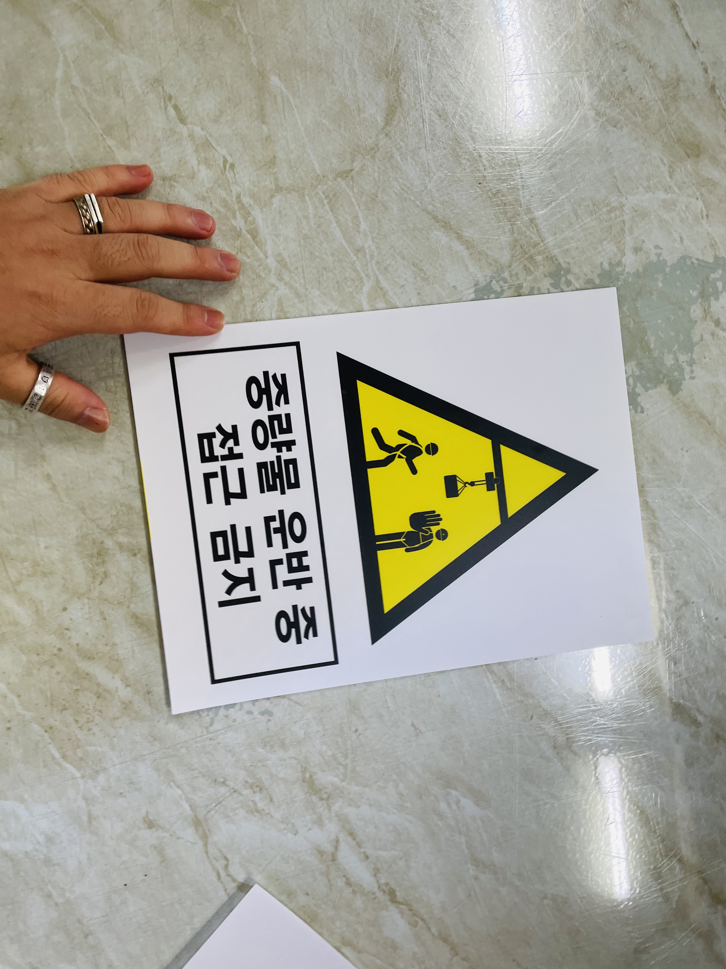 중량물 운반중 접근금지 표지판 스티커 산업 안전 보건표지