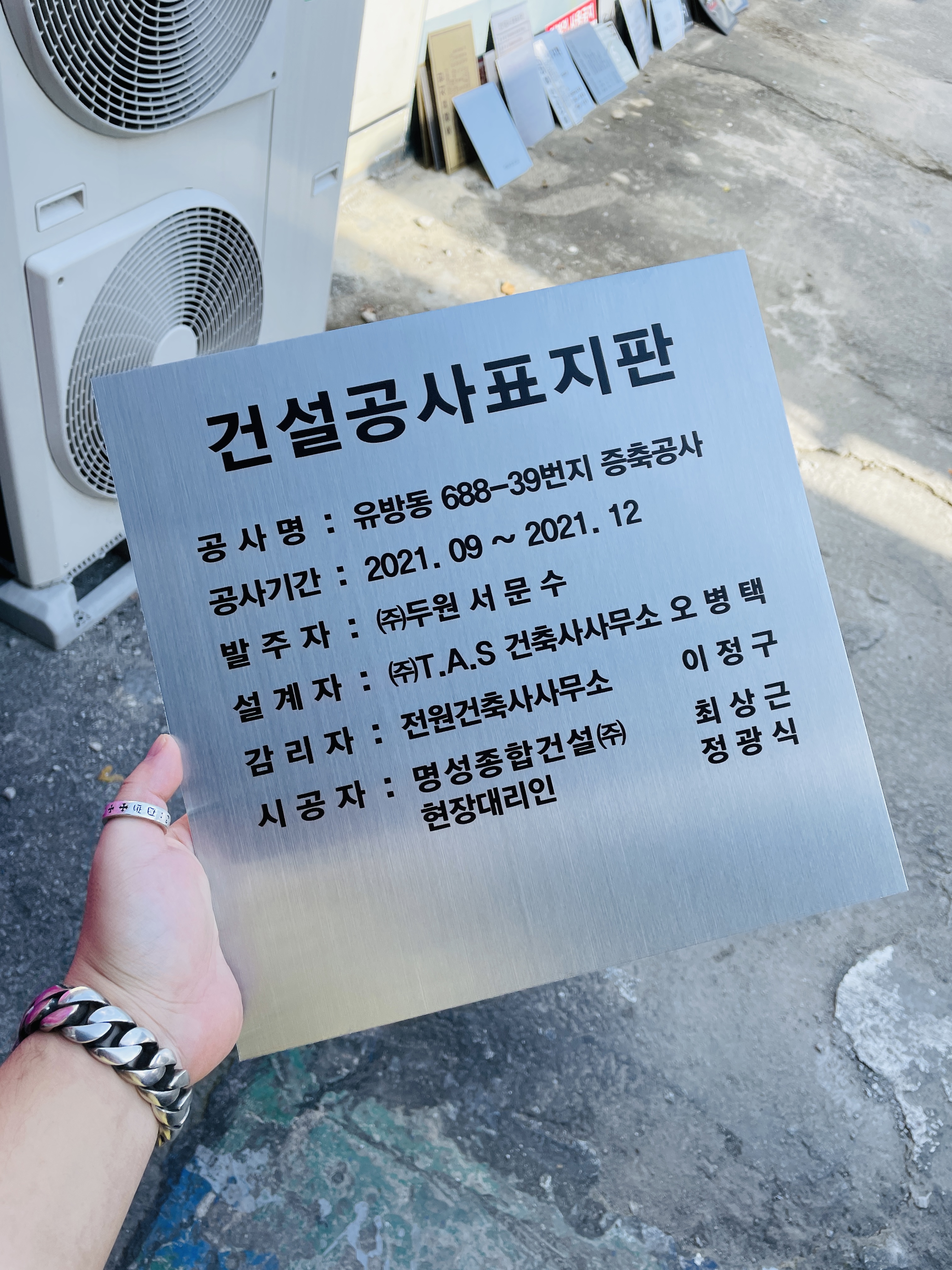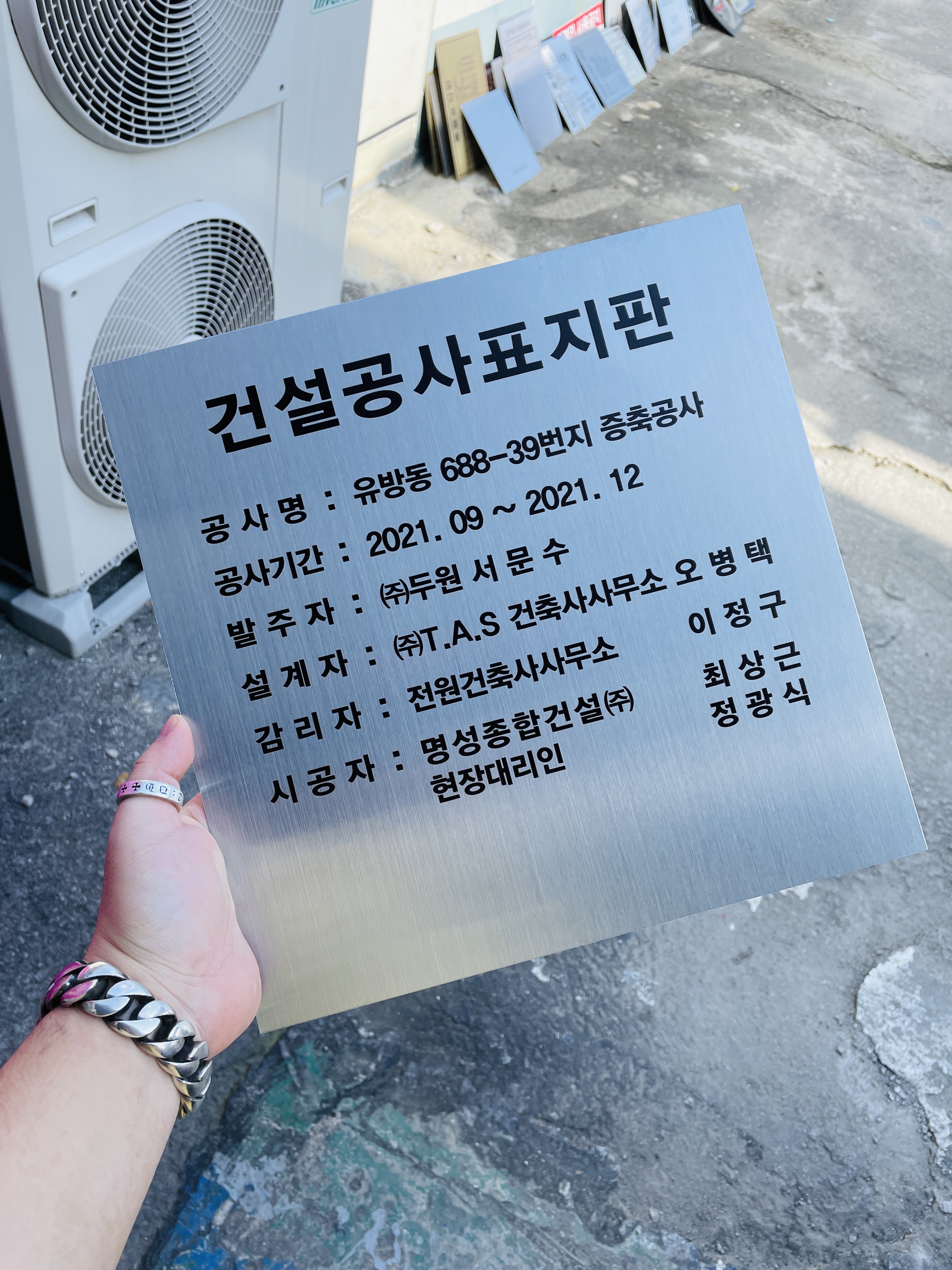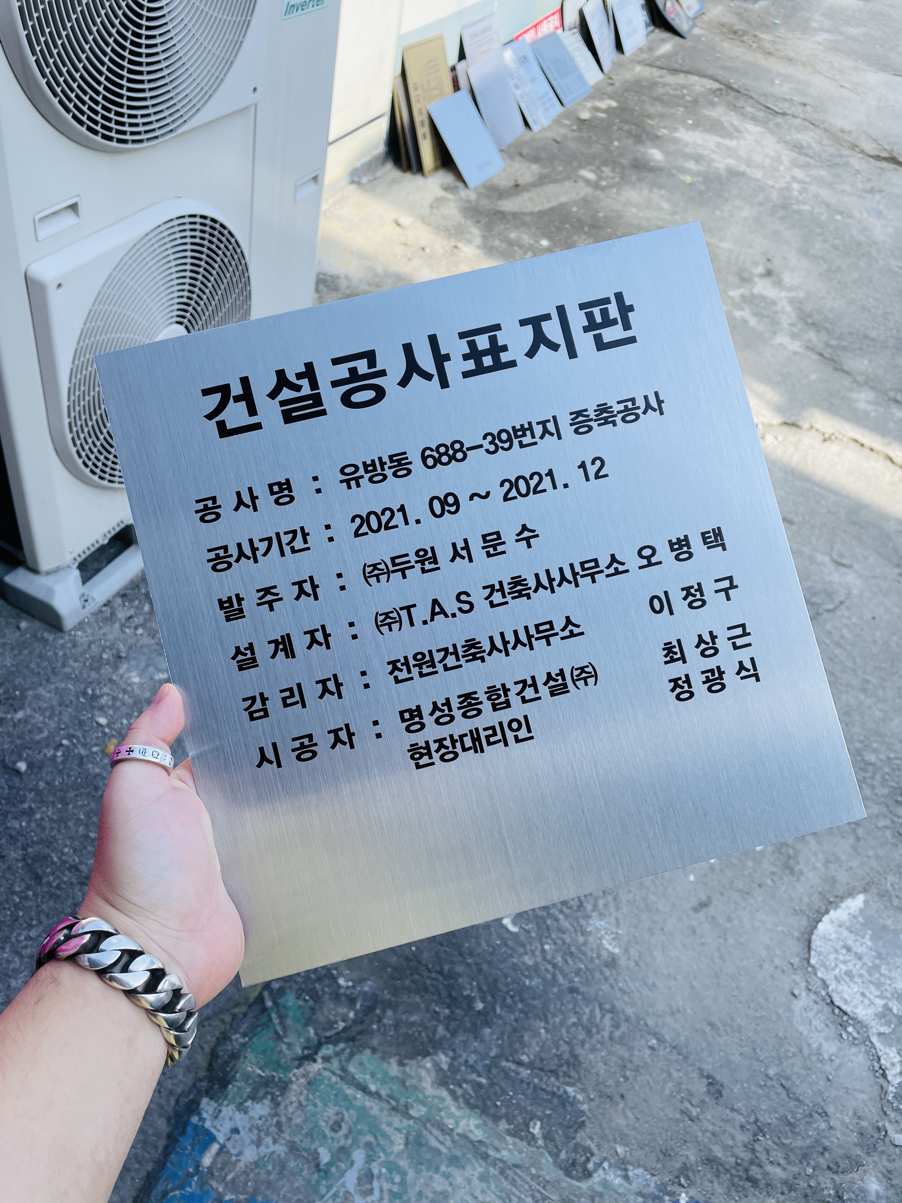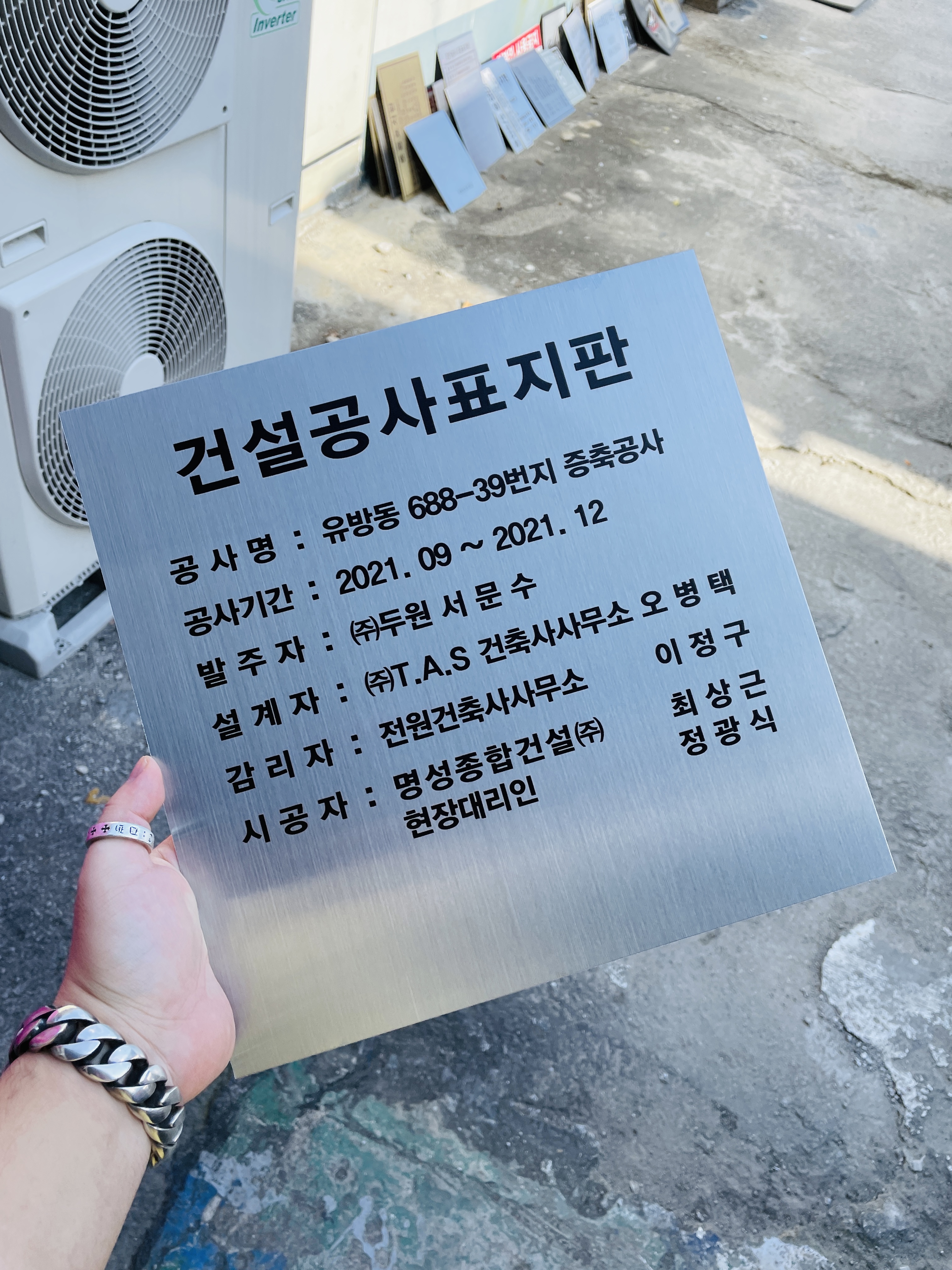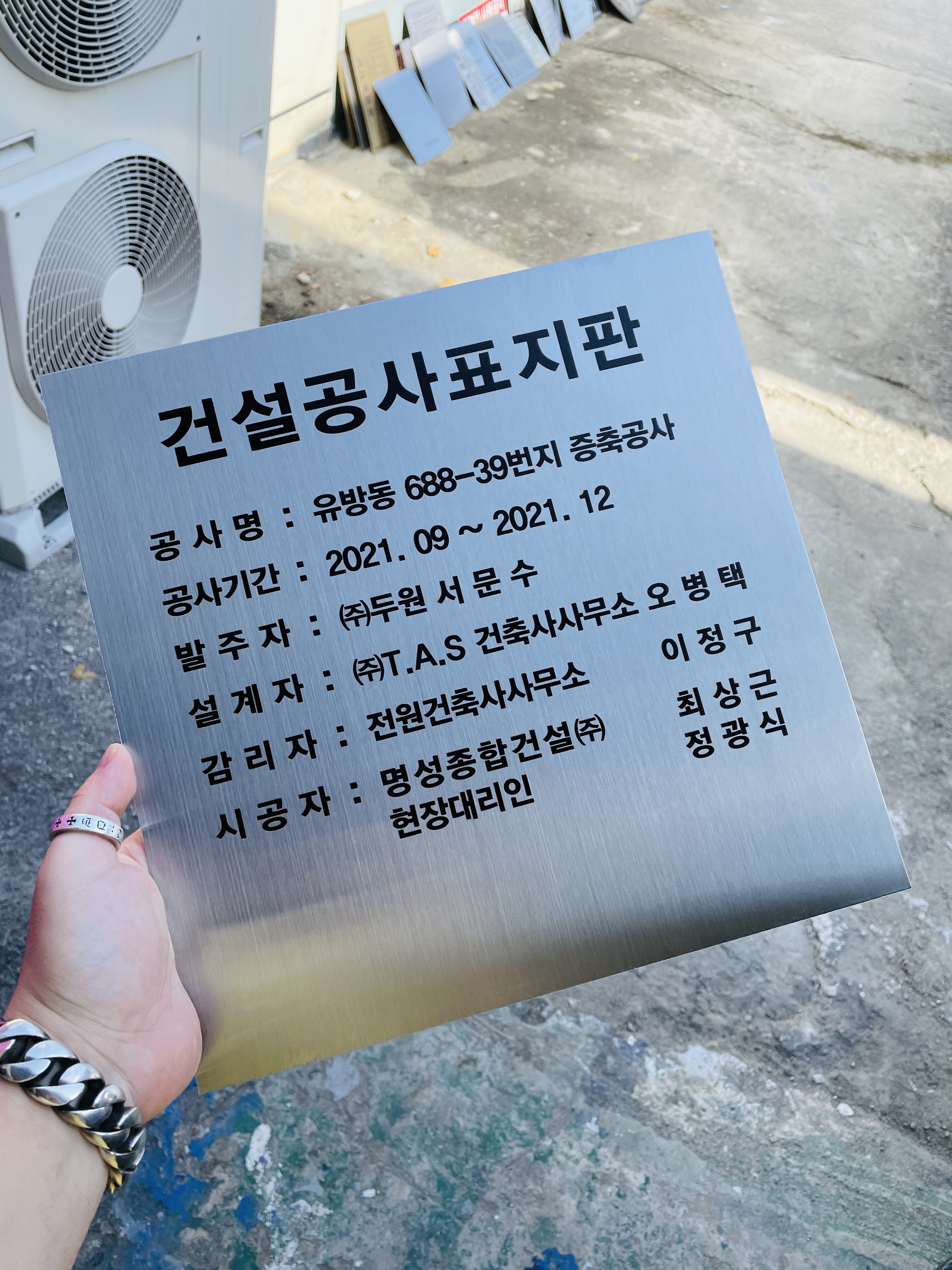 [스텐헤어라인] 준공표지판 머릿돌 건설허가 신축 빌라 공사명