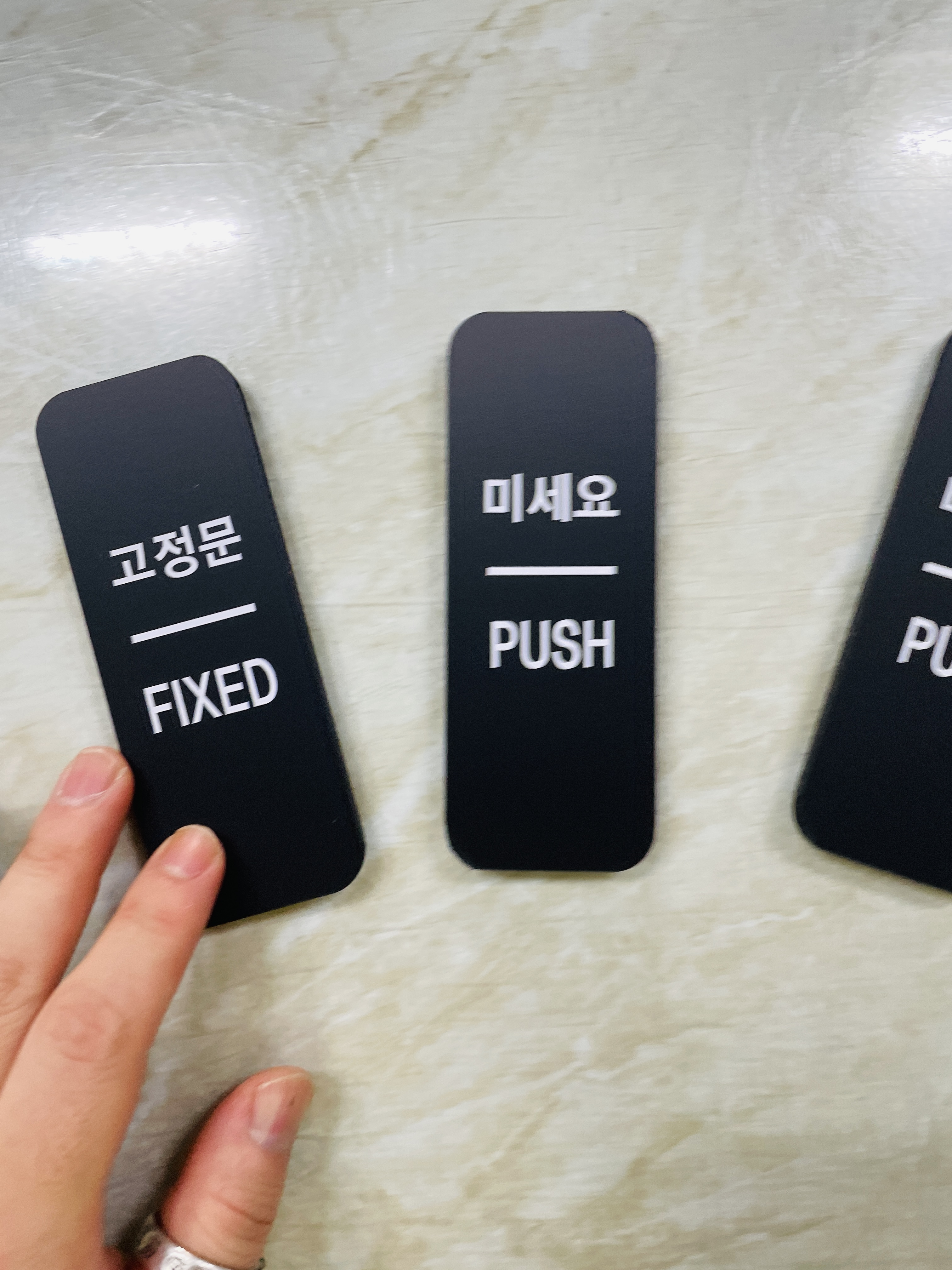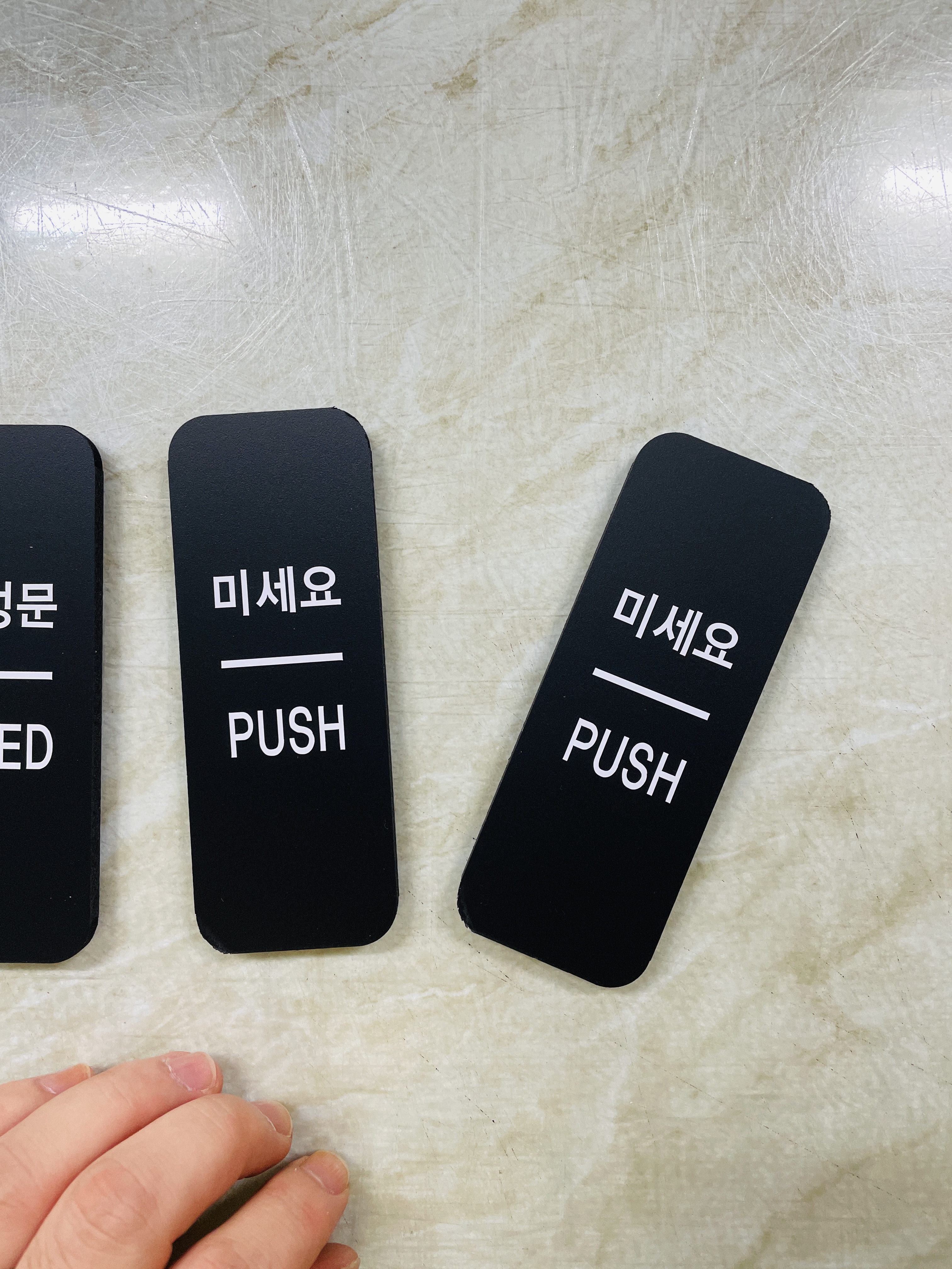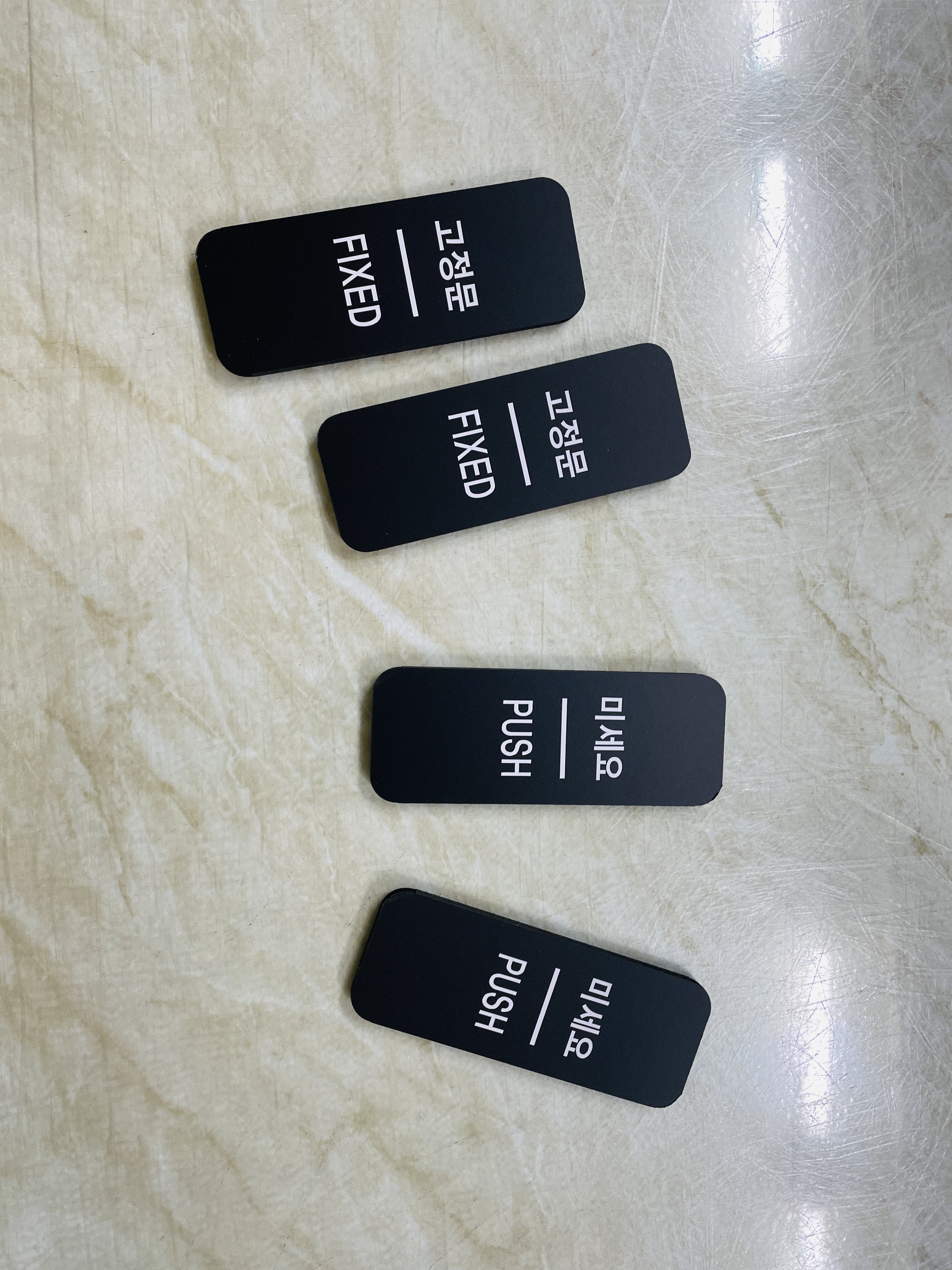 출입문안내표지판 미세요 당기세요 고정문 명패 명판 안전 표시 문 유리문 PUSH PULL FIXED : 베사메