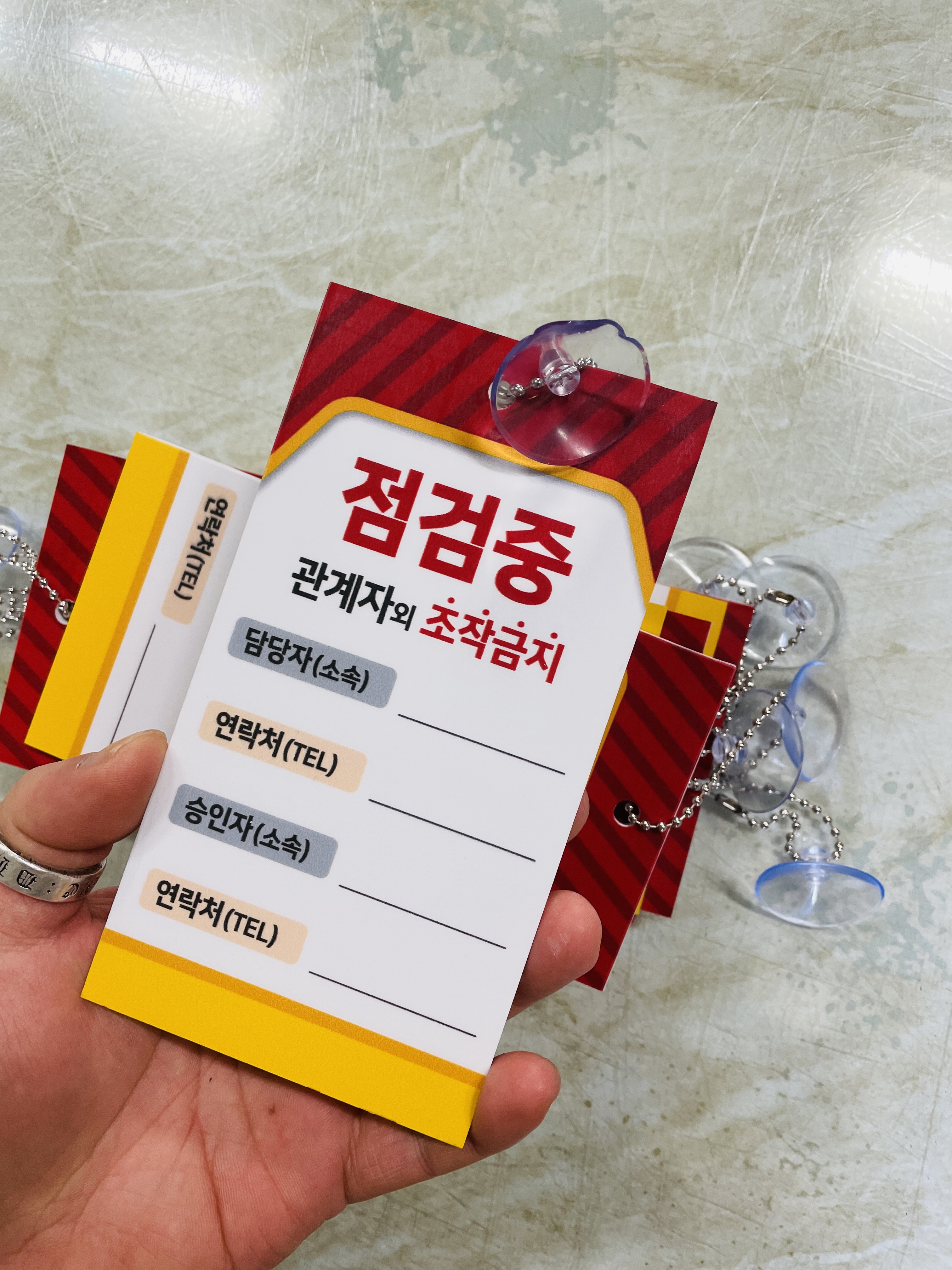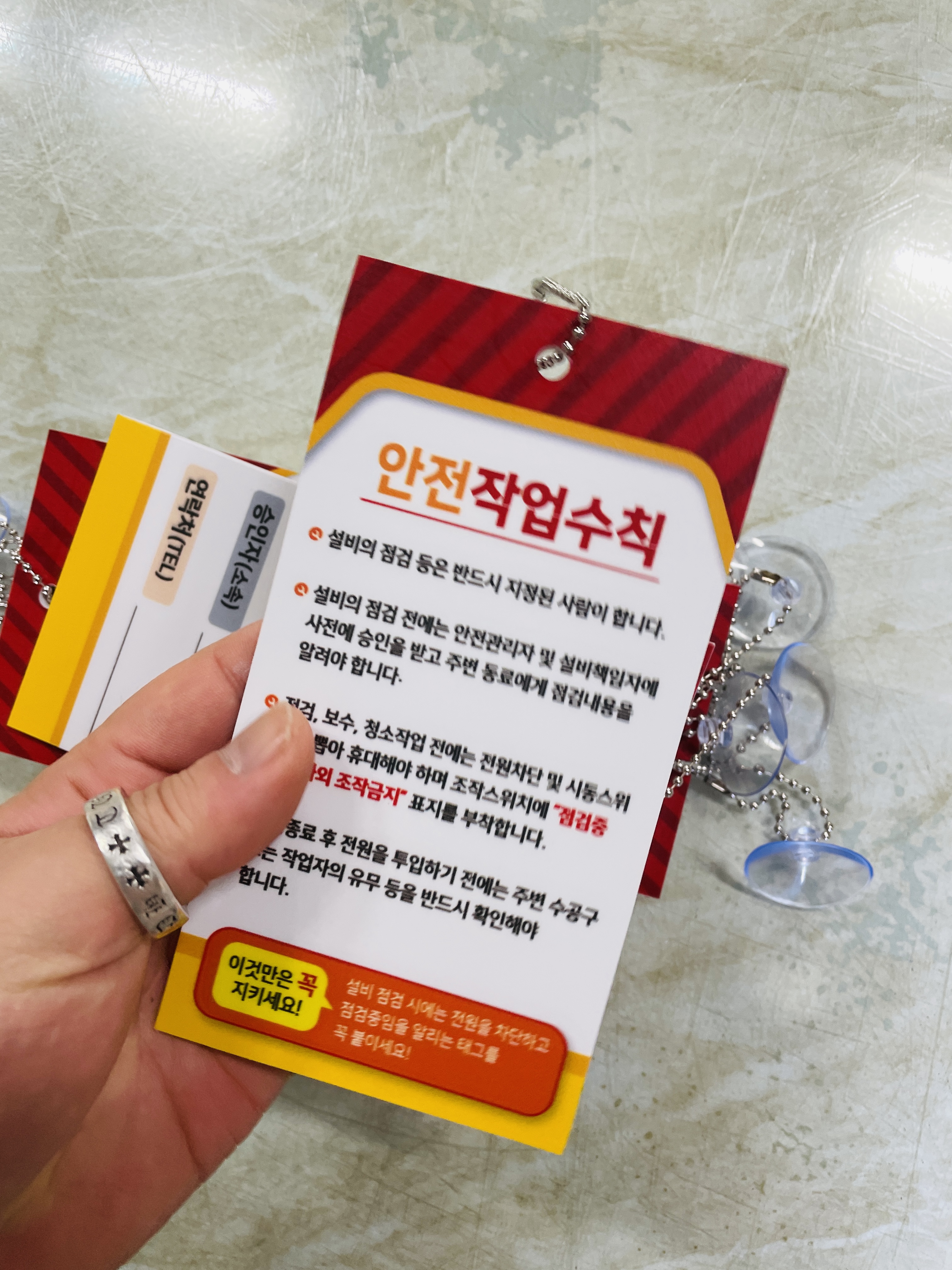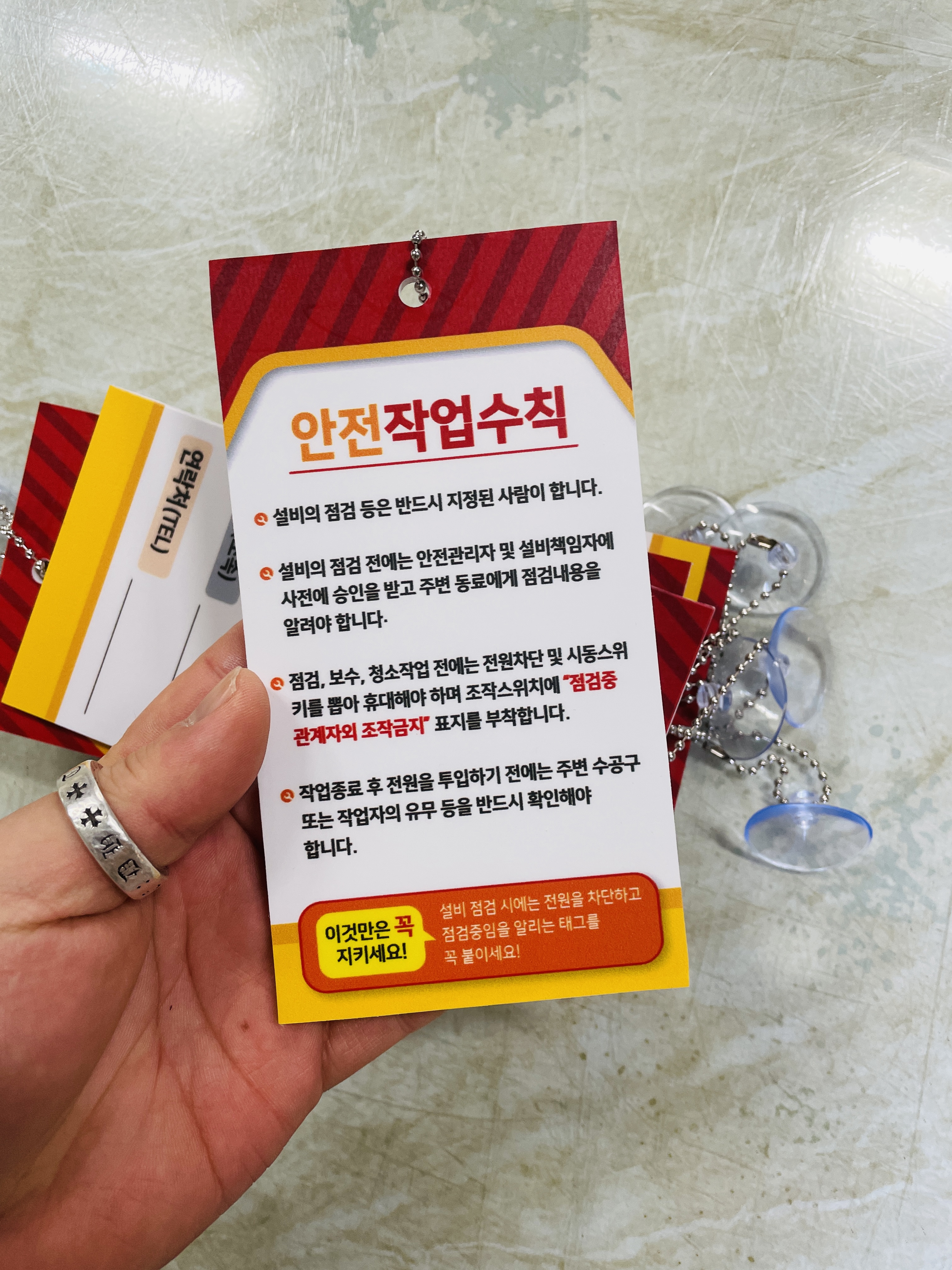 점검중 조작금지 안전작업수칙 관계자 담당자 연락처 승인자 연락처 표지판 걸이형 태그
