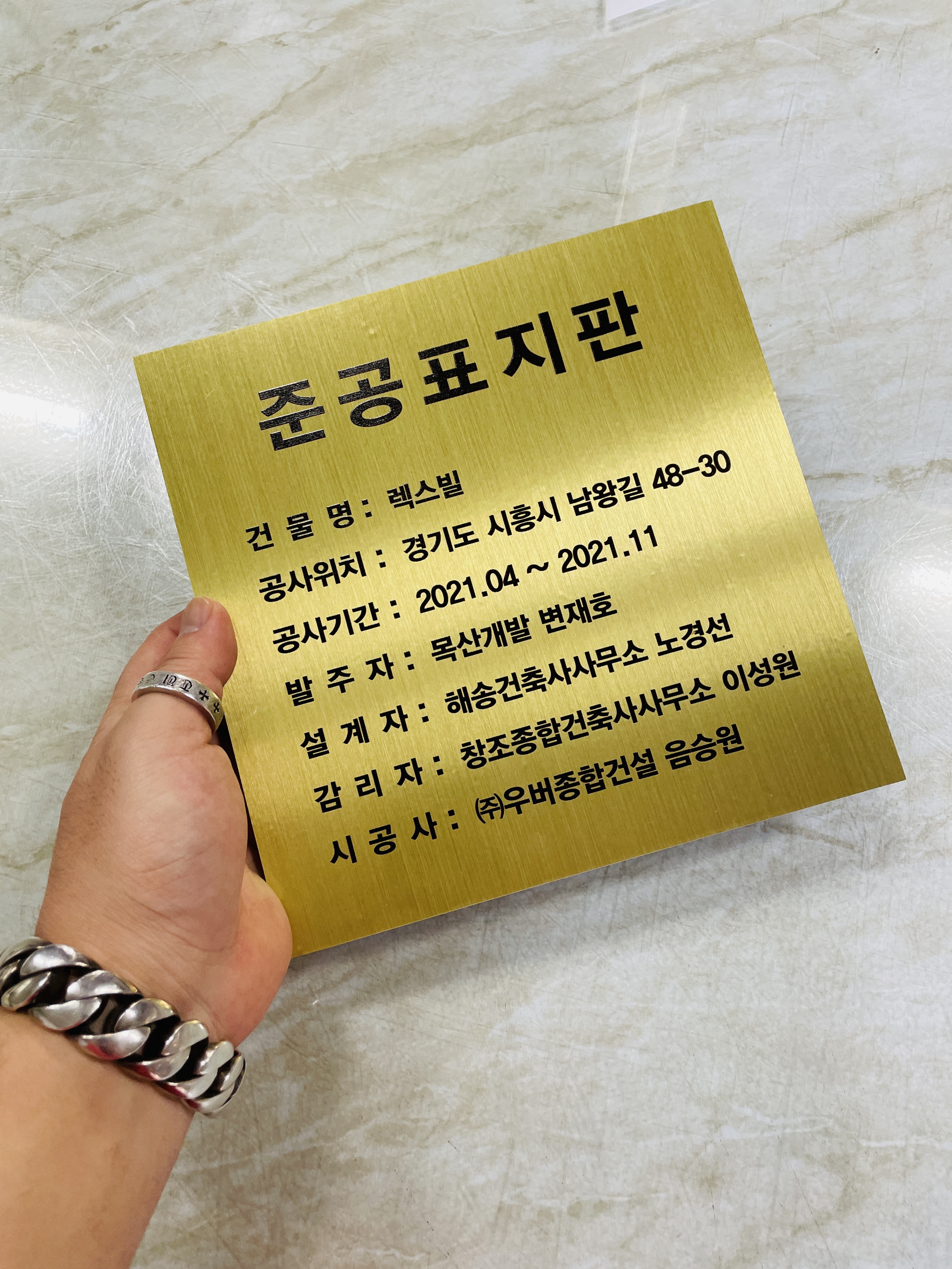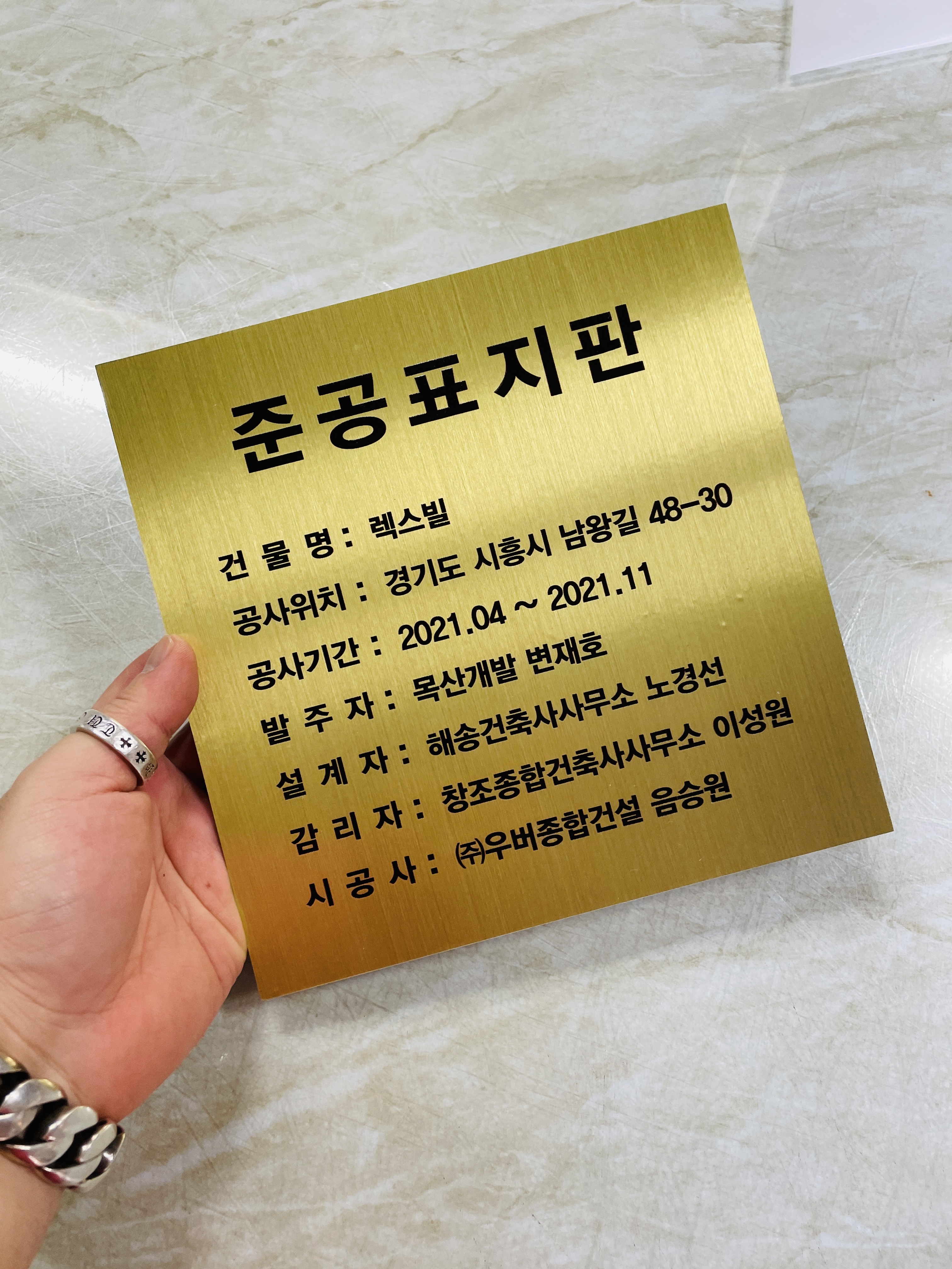 [골드시트지+uv인쇄] 준공표지판 신축 빌라 공사명
