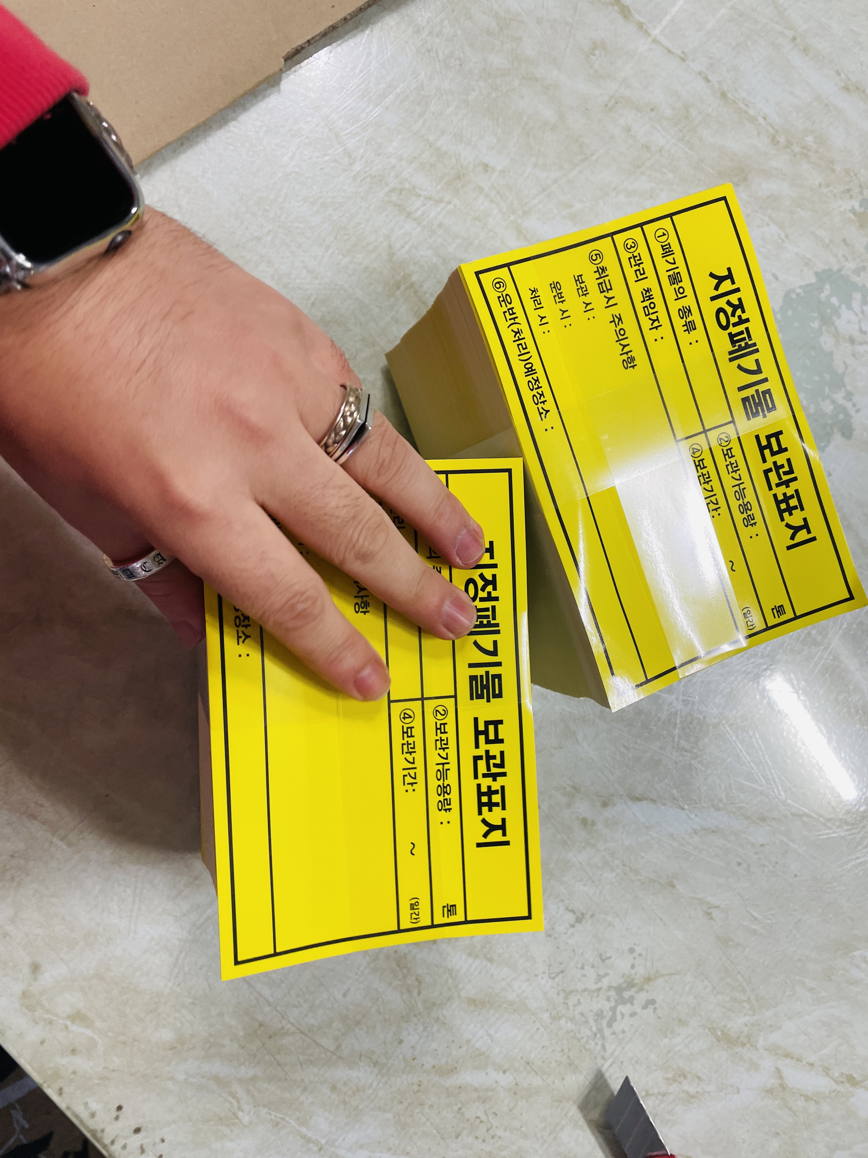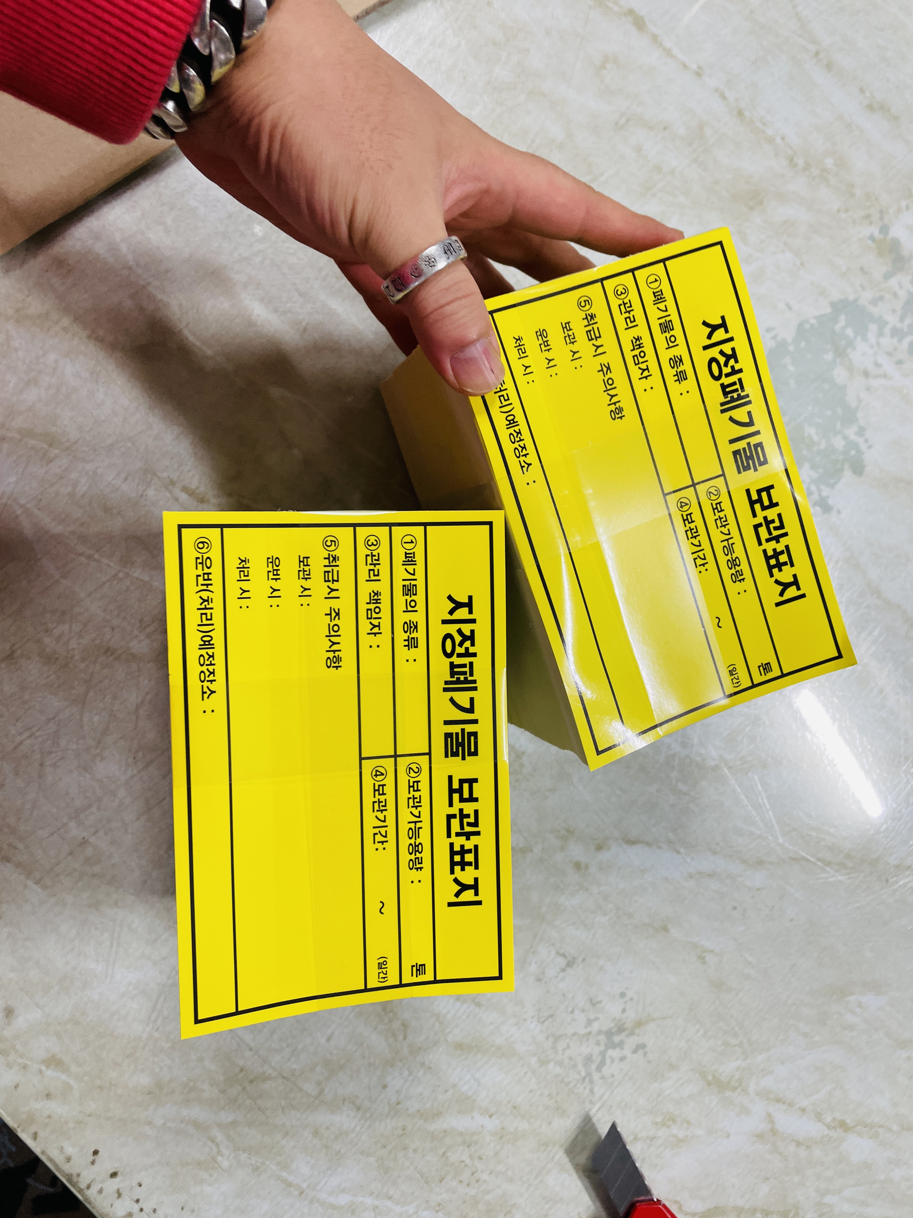 지정폐기물 보관표지 스티커 자석 표지판 : 베사메무쵸