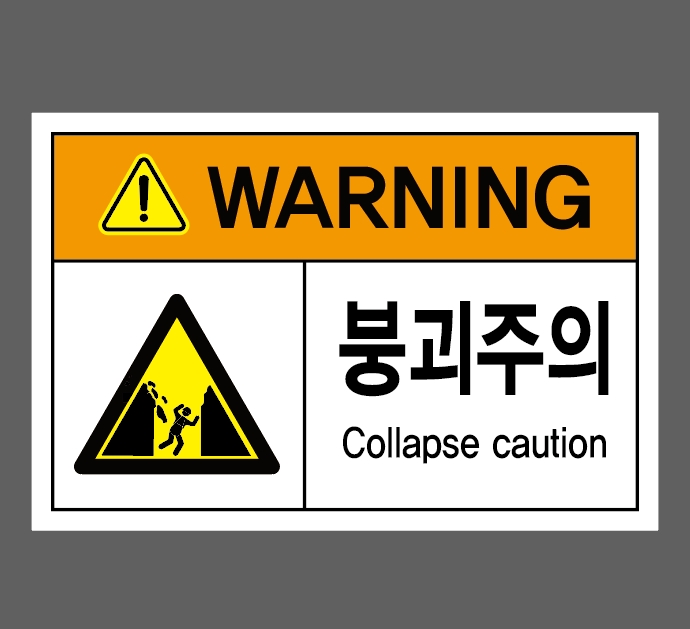 WARNING 붕괴주의 3020 스티커 표지판 자석 산업안전보건표지